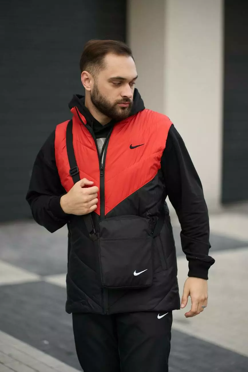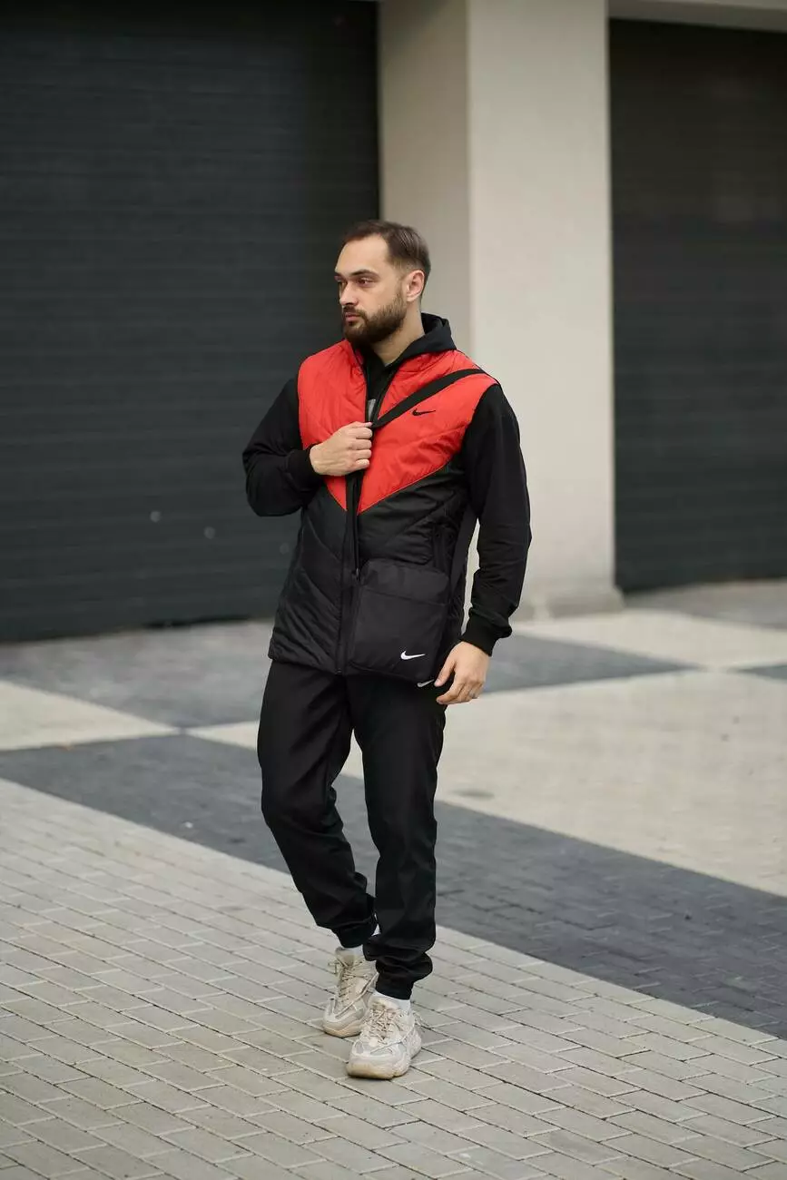 Комплект чоловічий "Clip" Nike: жилетка помаранчево-чорна + штани "President" чорні. БАРСЕТКА У ПОДАРУНОК!