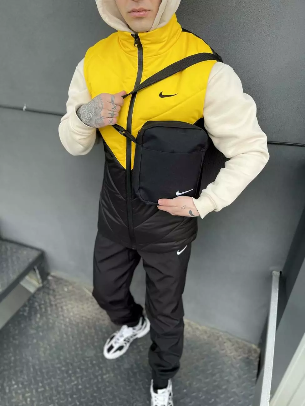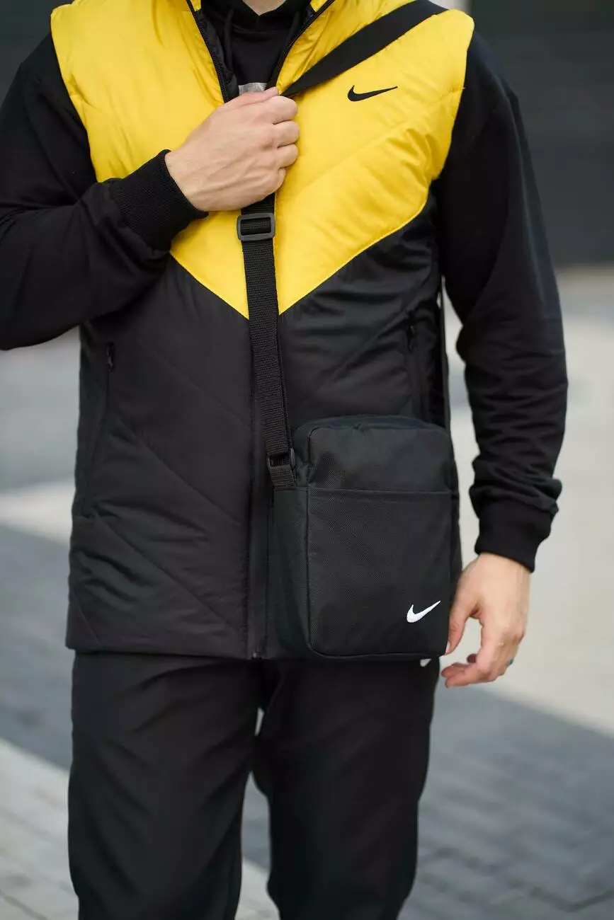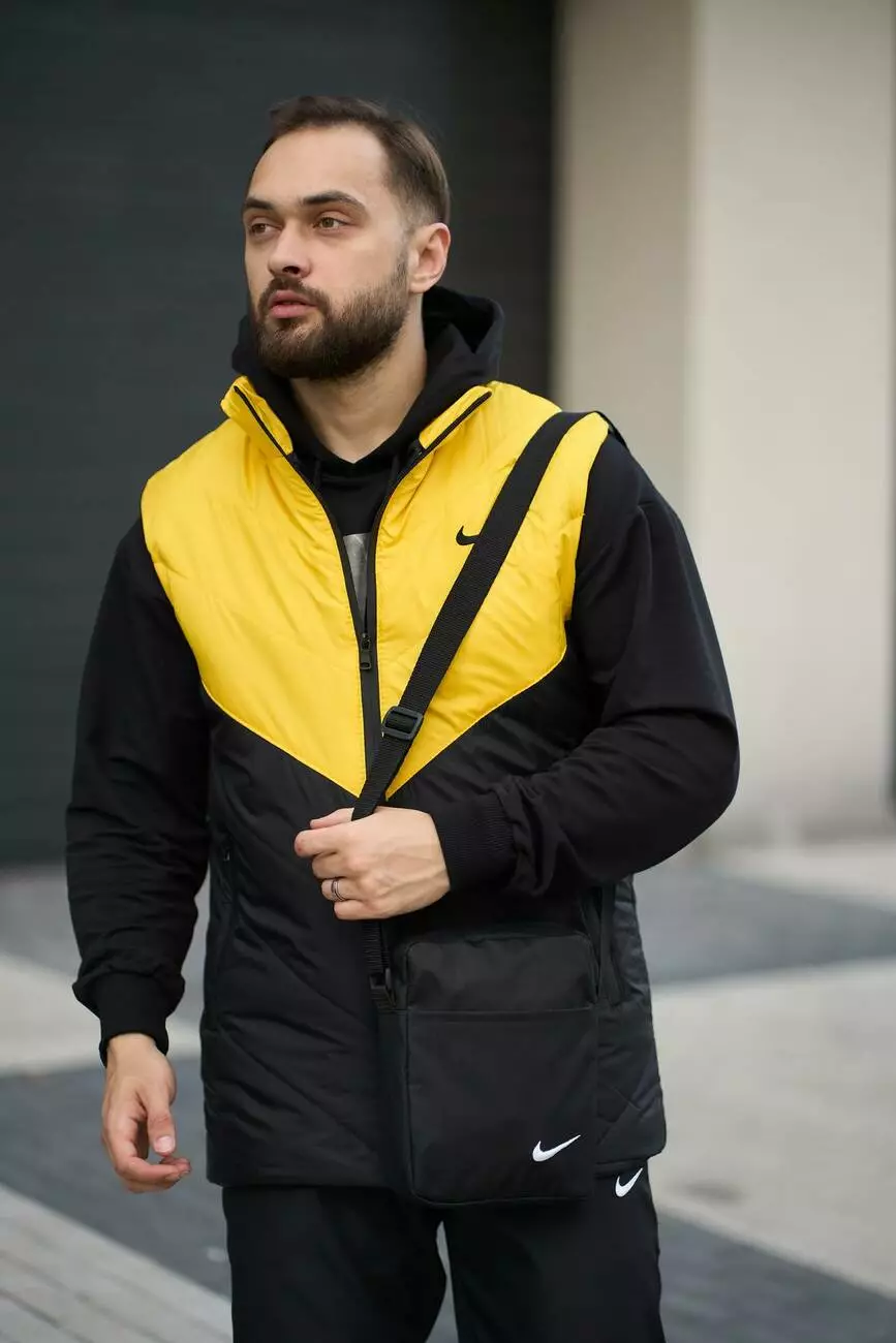 Комплект чоловічий "Clip" Nike: жилетка жовто-чорна + штани "President" чорні. БАРСЕТКА У ПОДАРУНОК!