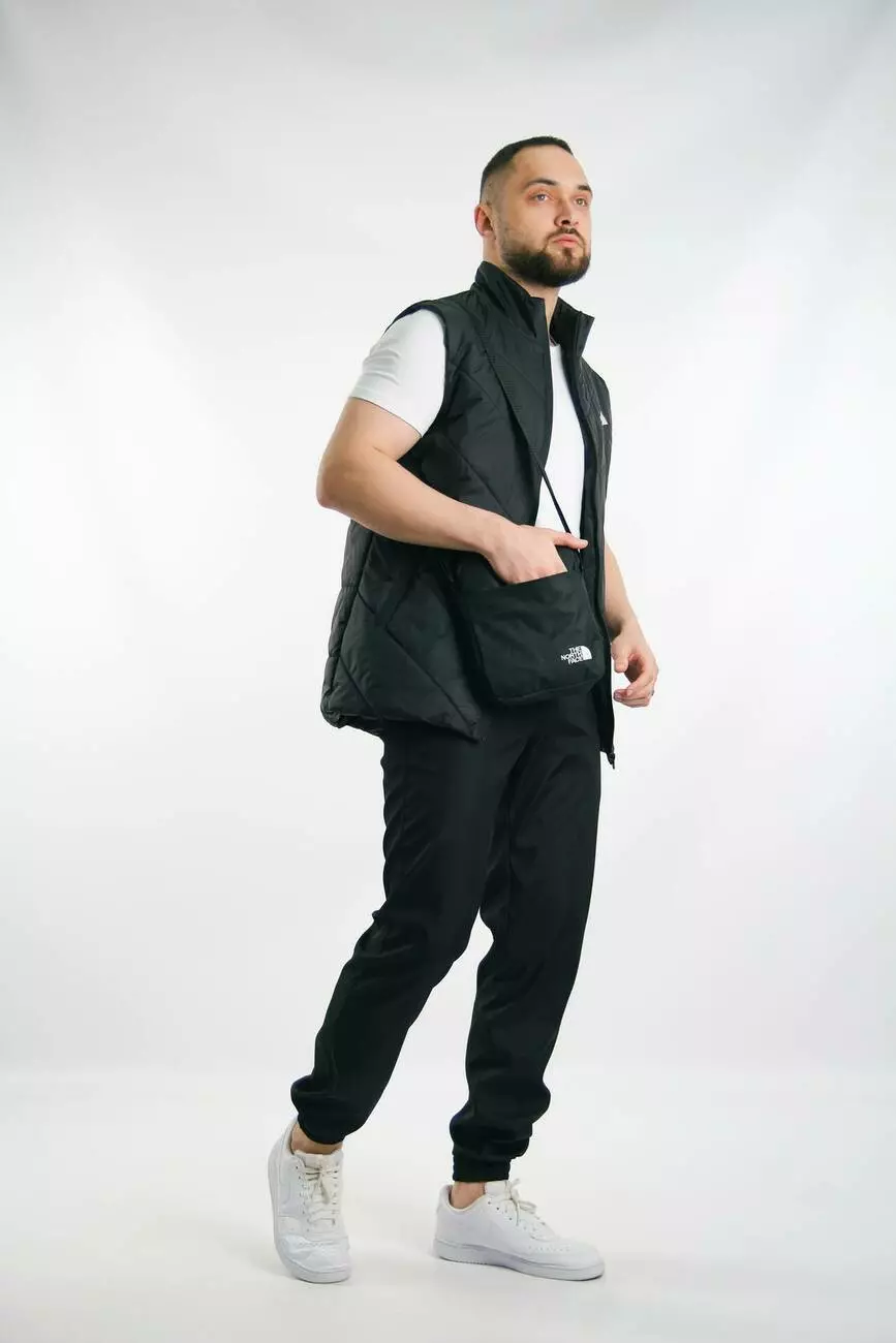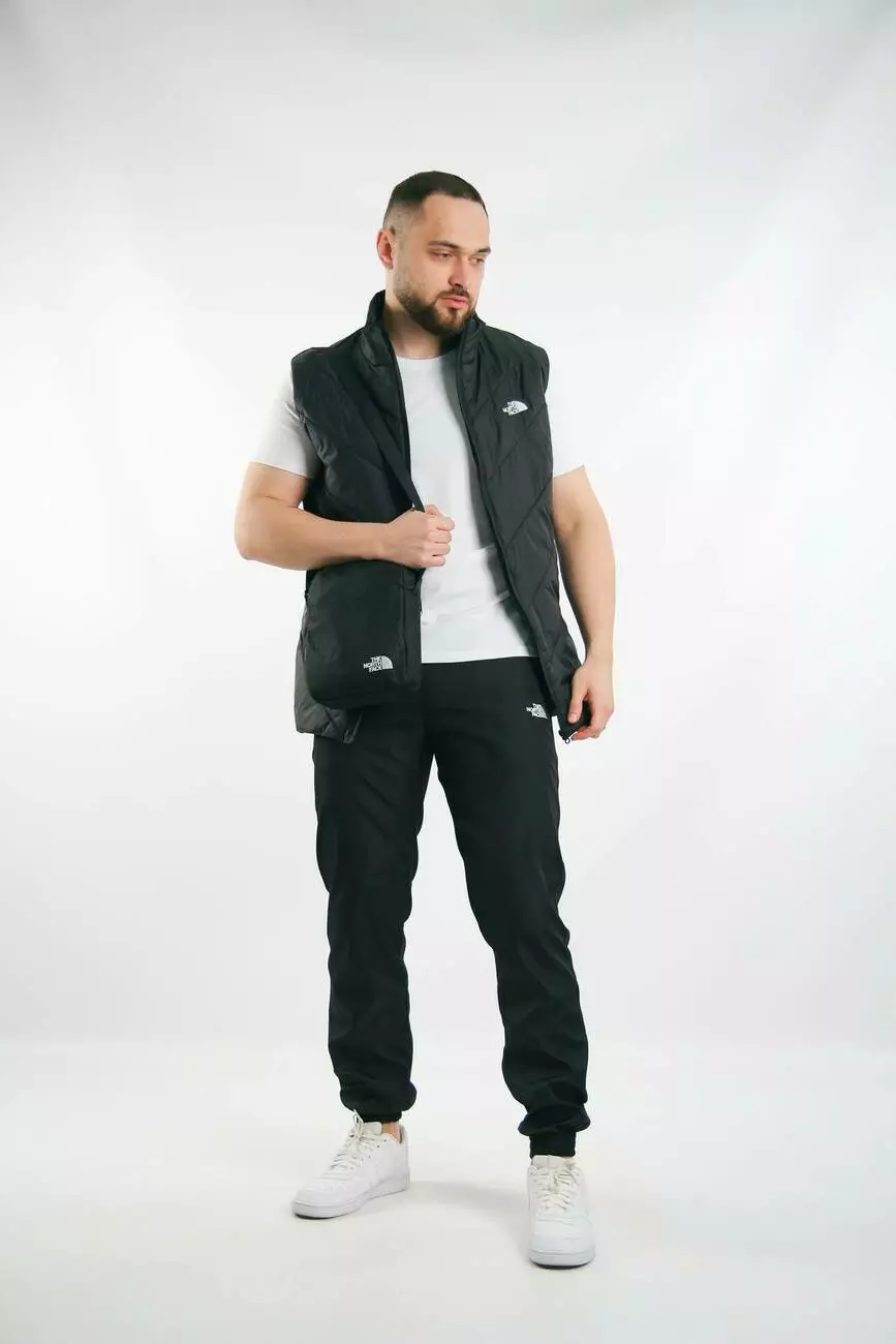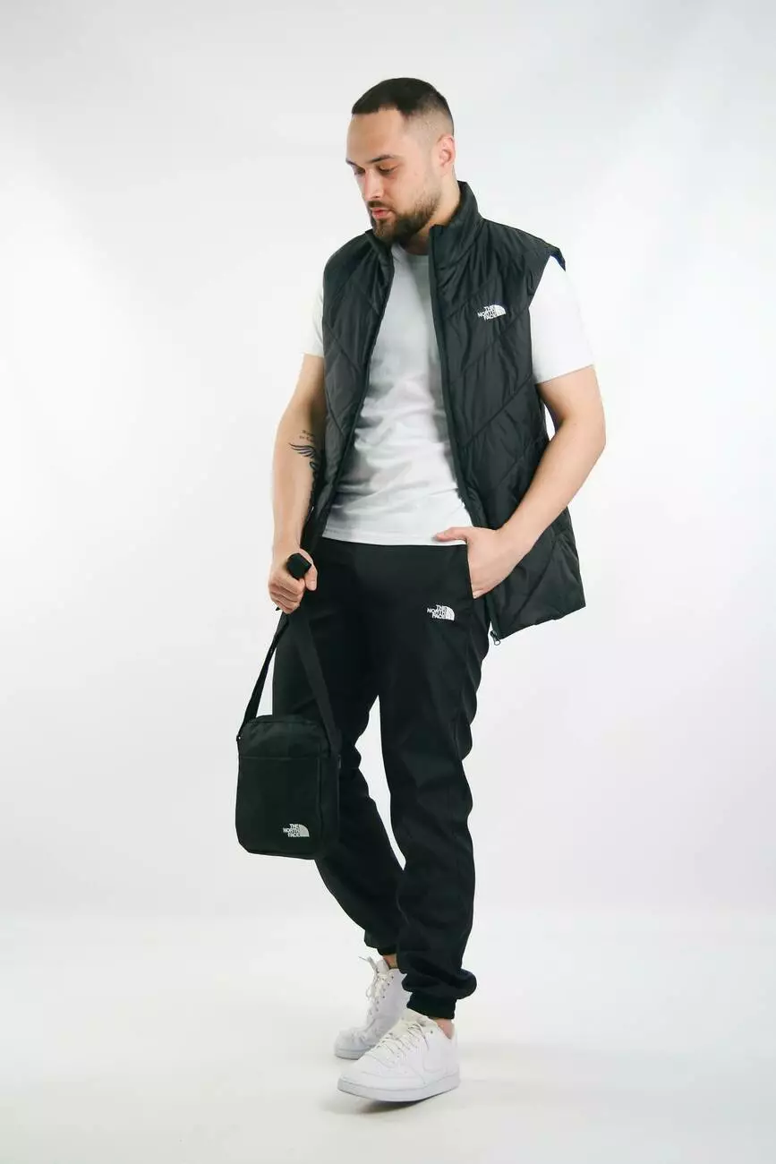 Комплект чоловічий "Clip" TNF: жилетка чорна + футболка біла + штани "President" чорні. БАРСЕТКА У ПОДАРУНОК!