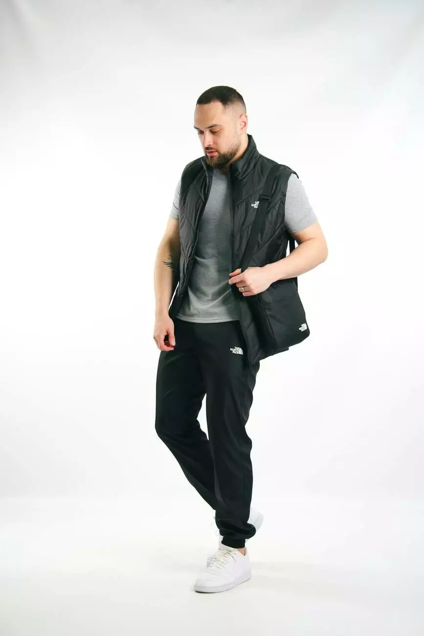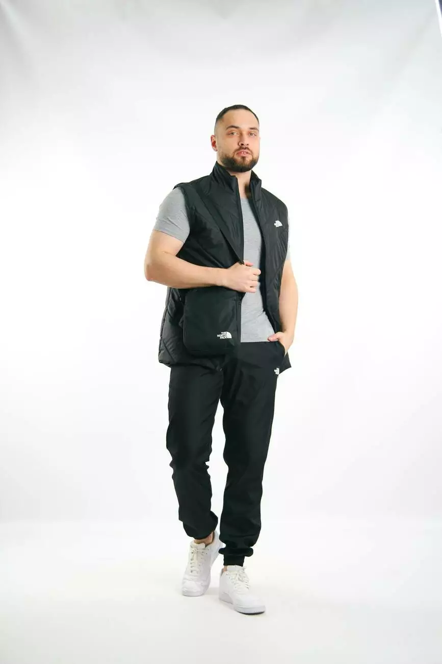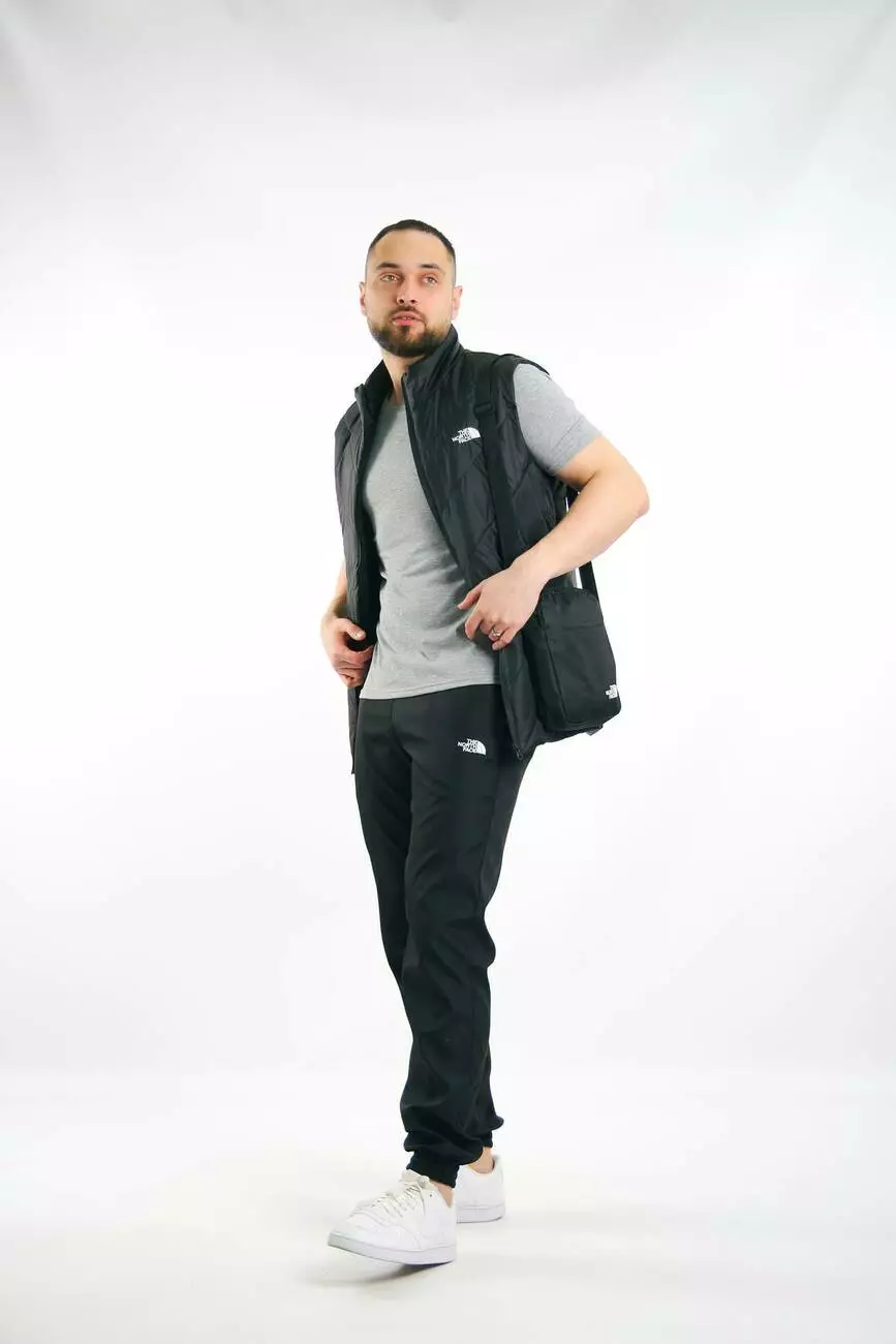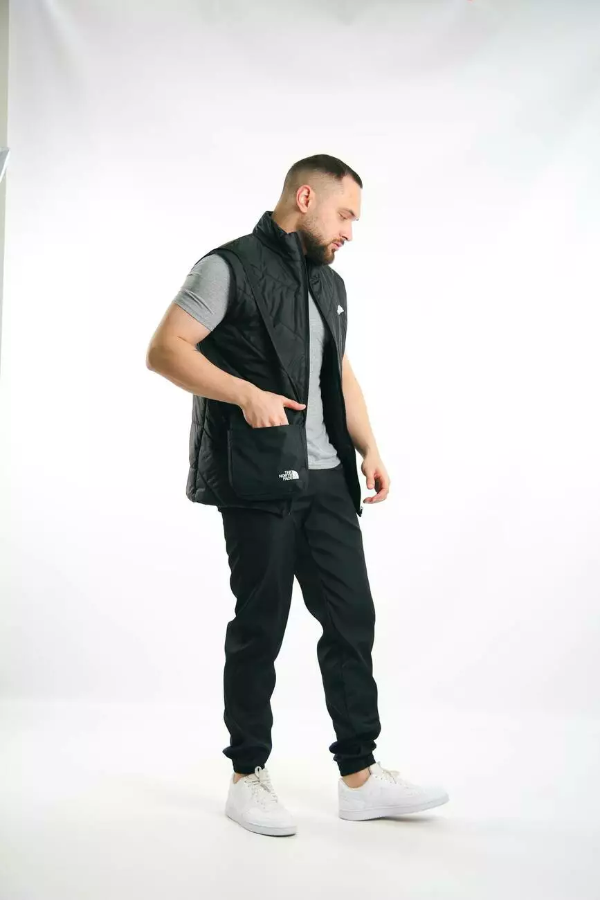 Комплект чоловічий "Clip" TNF: жилетка чорна + футболка сіра + штани "President" чорні. БАРСЕТКА У ПОДАРУНОК!