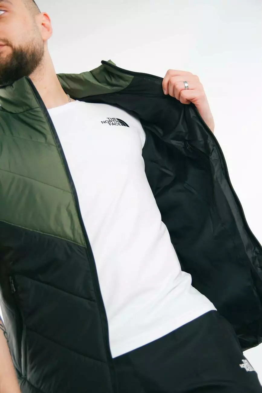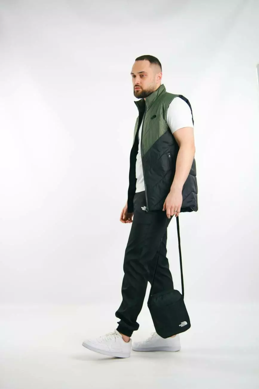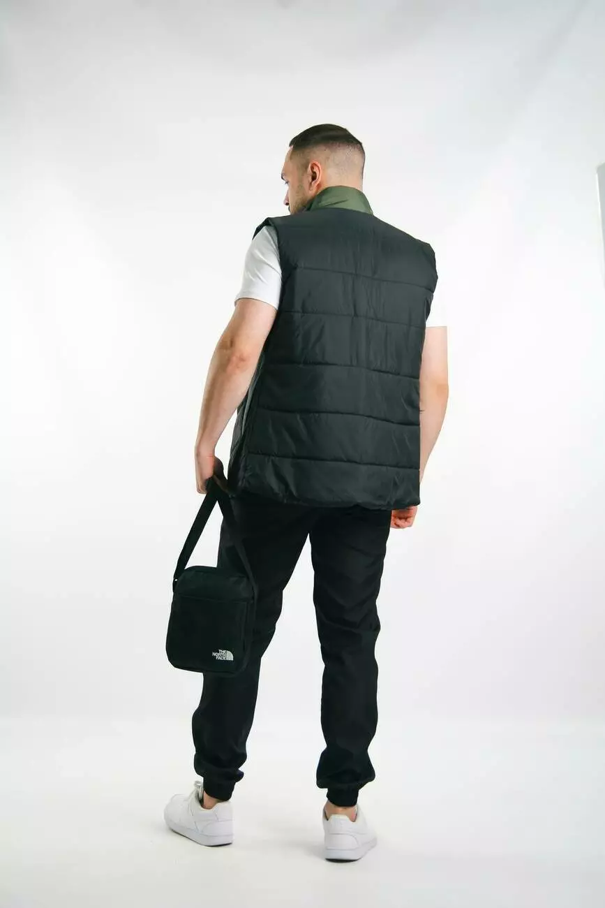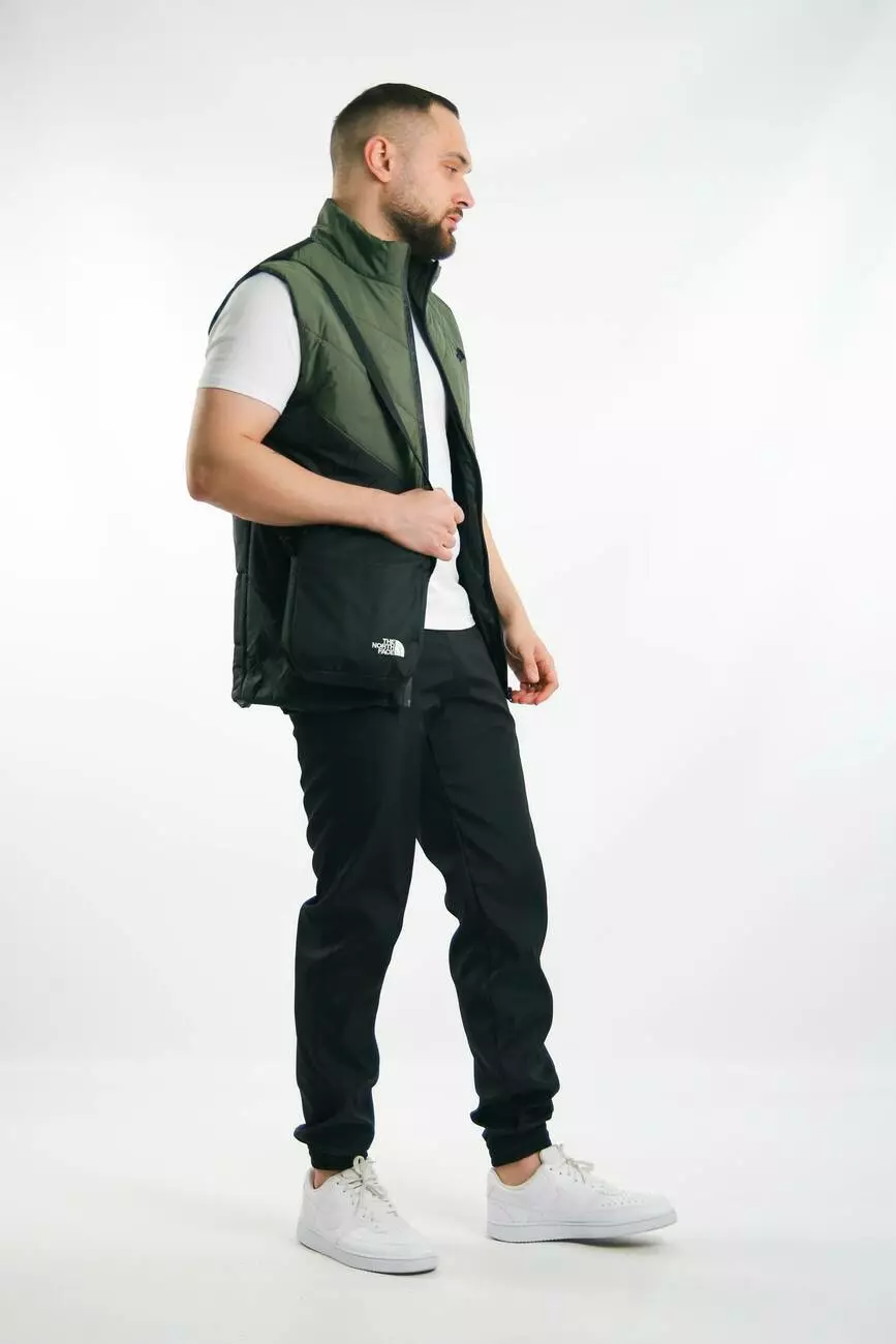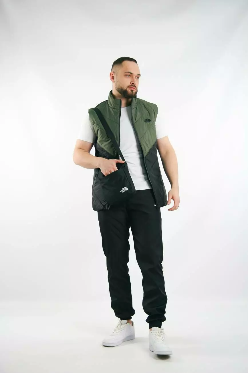 Комплект чоловічий "Clip" TNF: жилетка хакі-чорна + футболка біла + штани "President" чорні. БАРСЕТКА У ПОДАРУНОК!