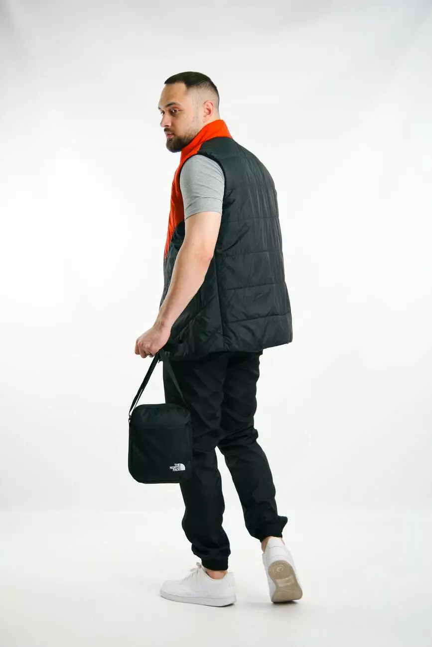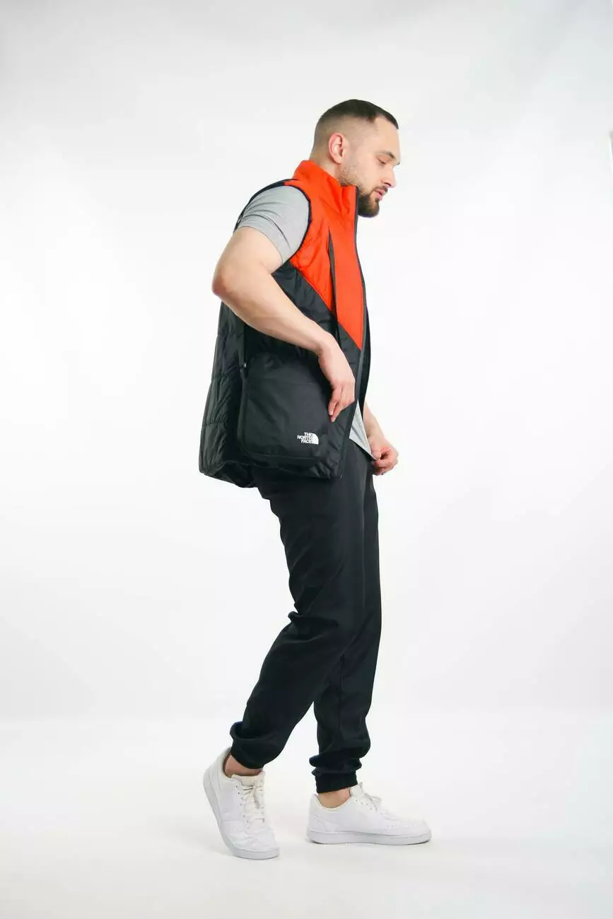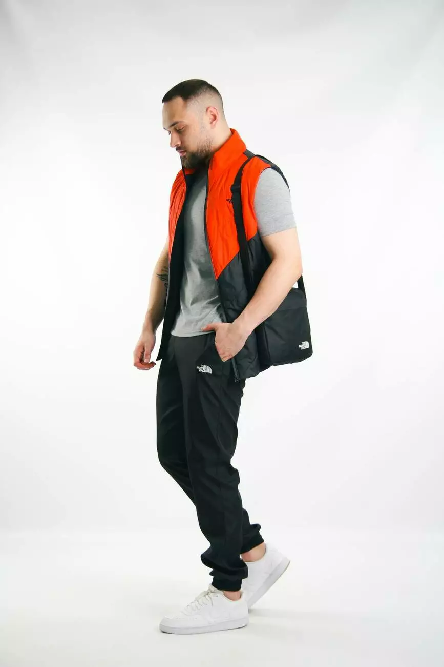 Комплект чоловічий "Clip" TNF: жилетка помаранчево-чорна + футболка сіра + штани "President" чорні. БАРСЕТКА У ПОДАРУНОК!