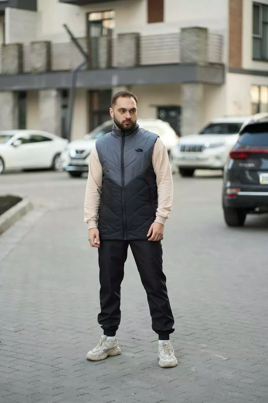Комплект чоловічий "Clip" TNF: жилетка сіро-чорна + штани "President" чорні. БАРСЕТКА У ПОДАРУНОК!
