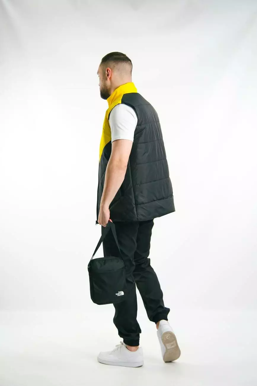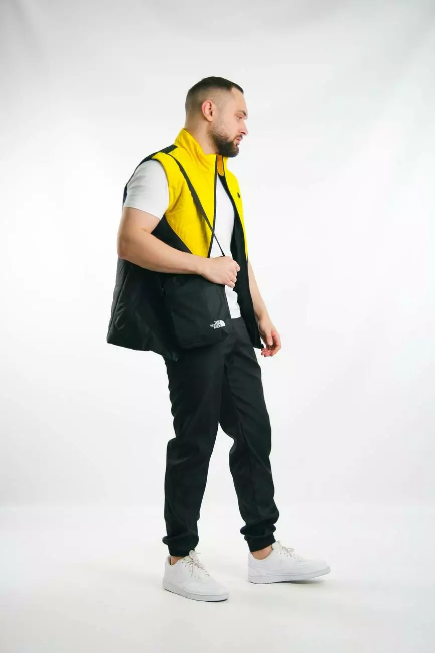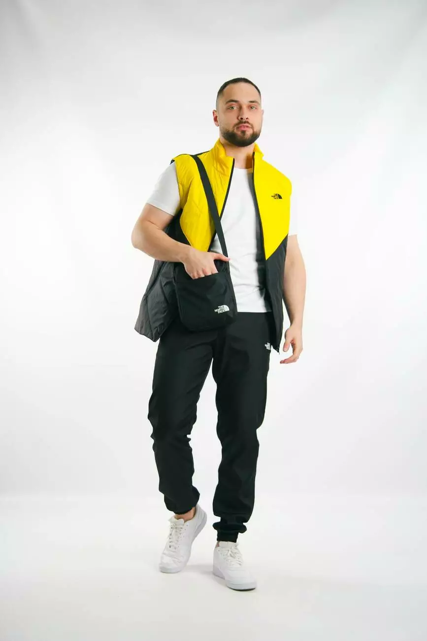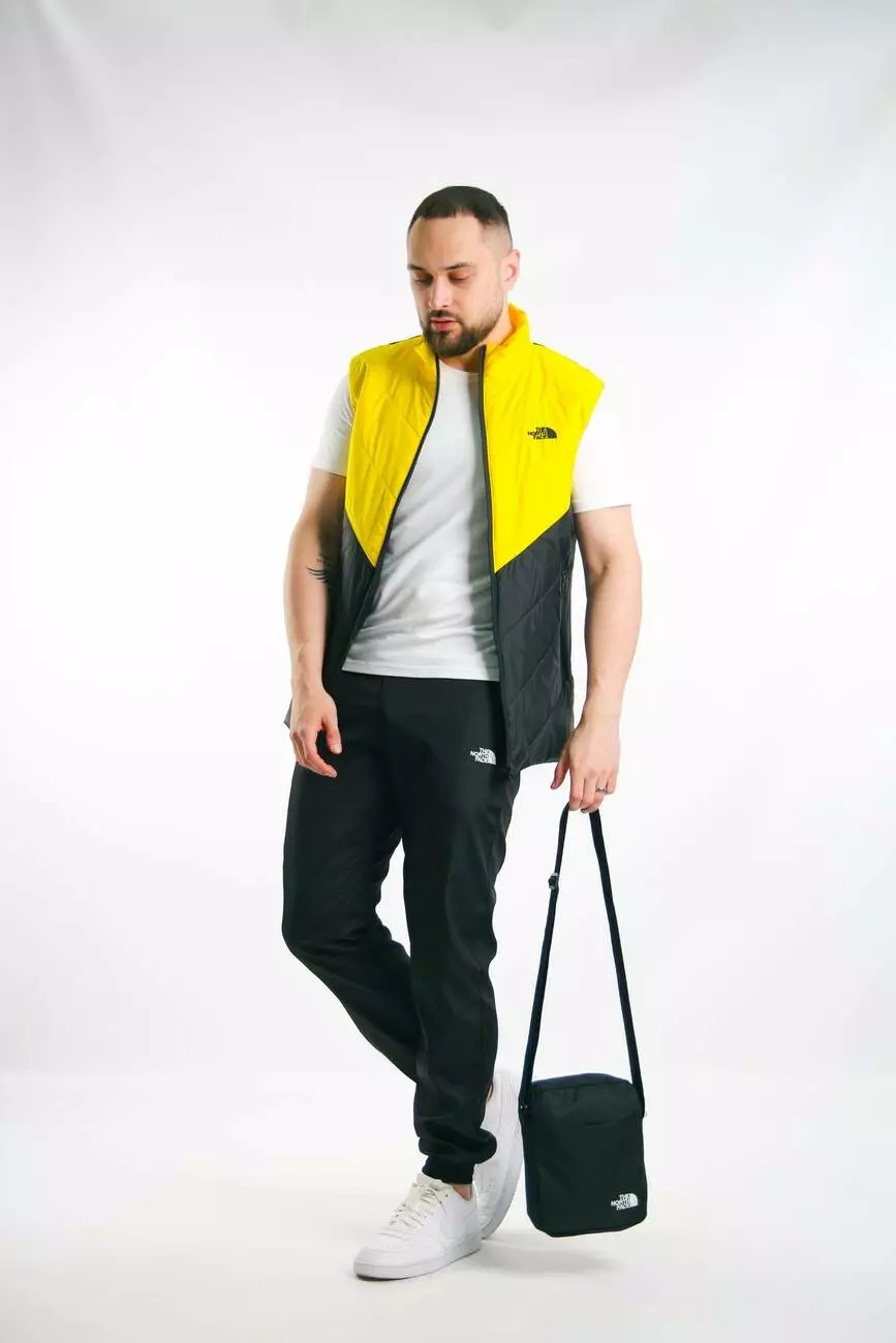 Комплект чоловічий "Clip" TNF: жилетка жовто-чорна + футболка біла + штани "President" чорні. БАРСЕТКА У ПОДАРУНОК!