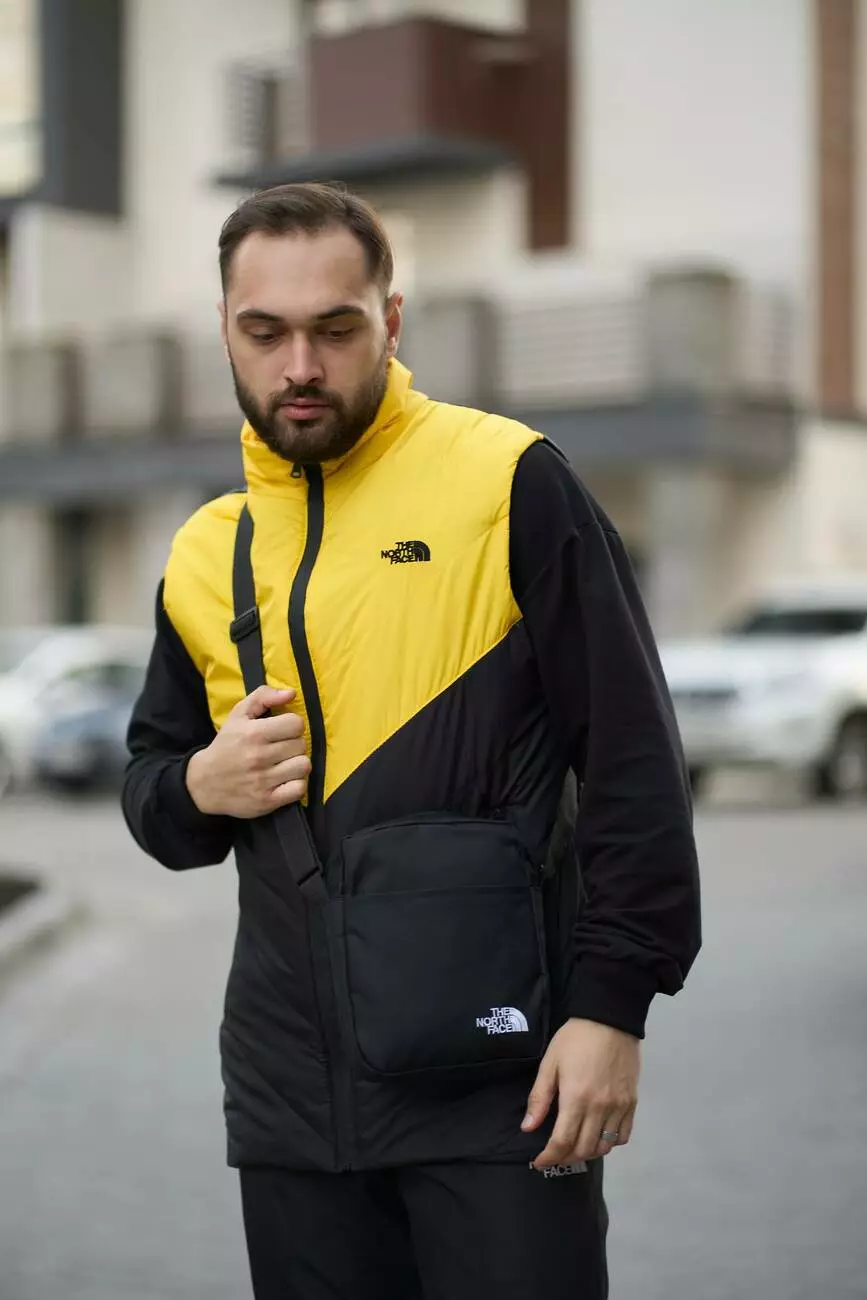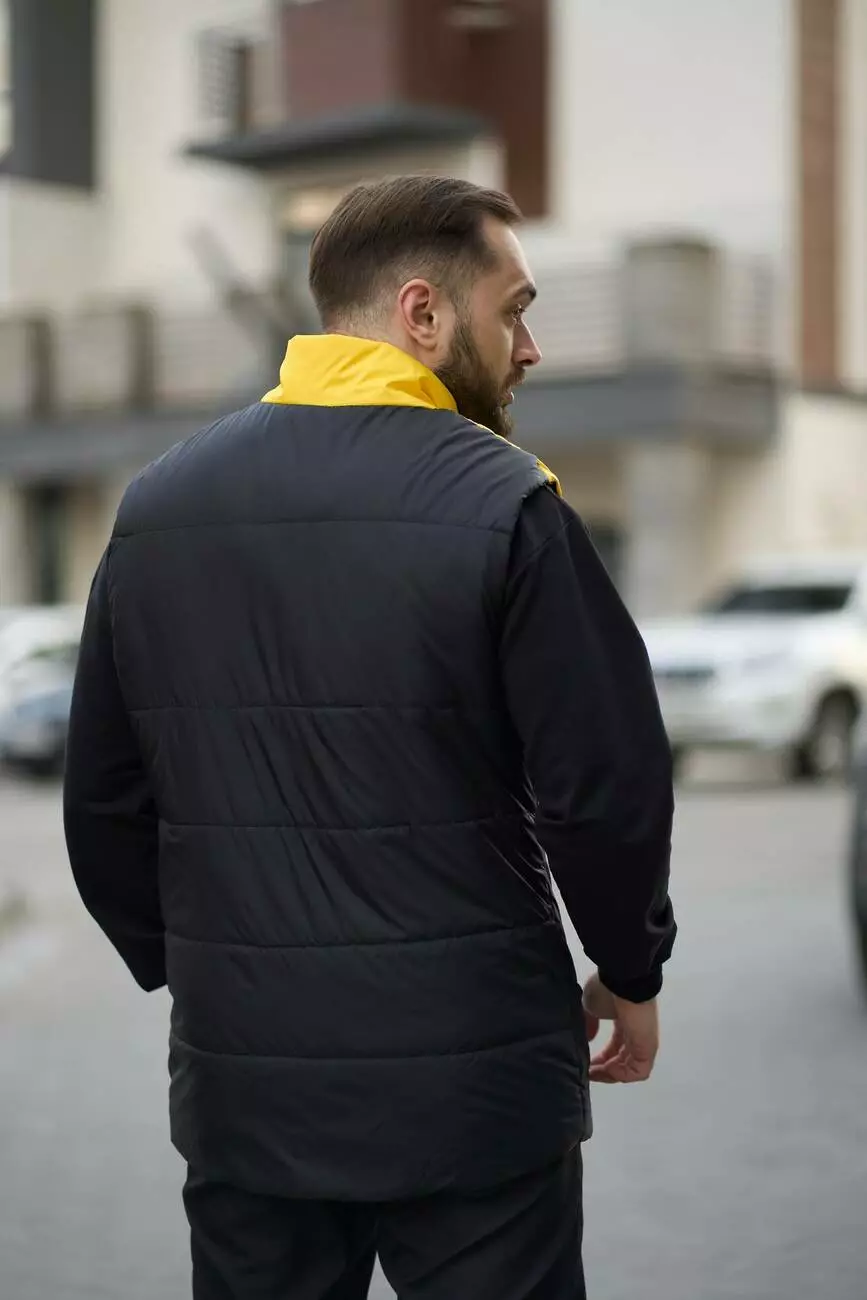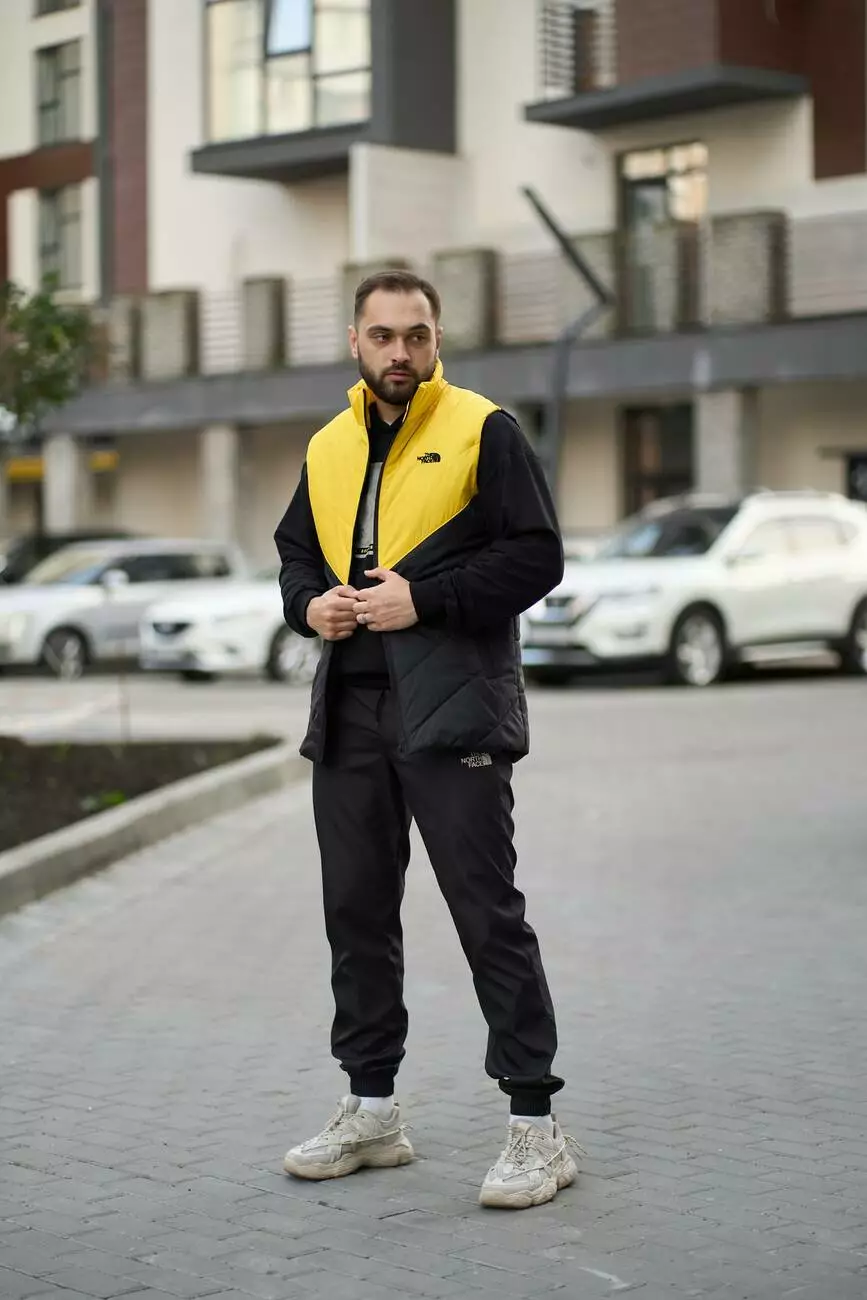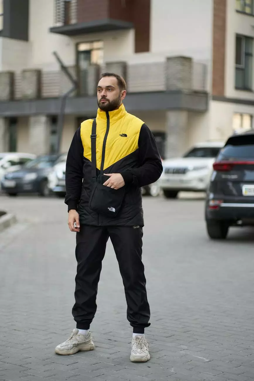 Комплект чоловічий "Clip" TNF: жилетка жовто-чорна + штани "President" чорні. БАРСЕТКА У ПОДАРУНОК!