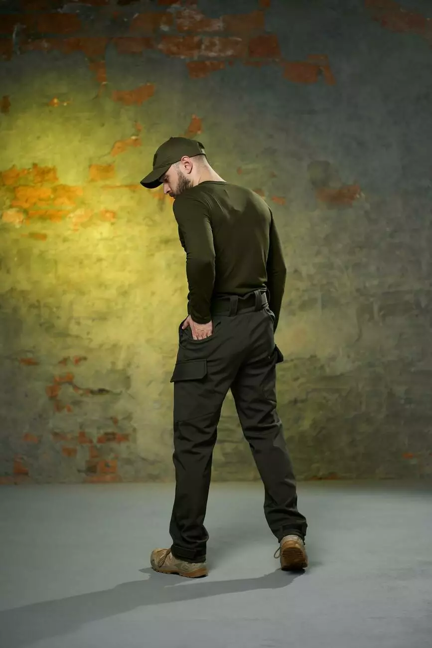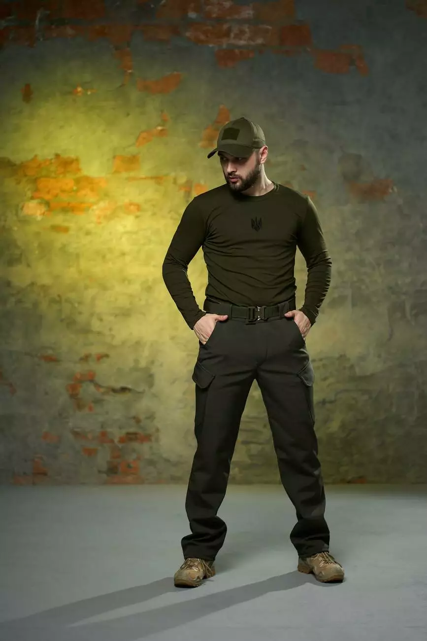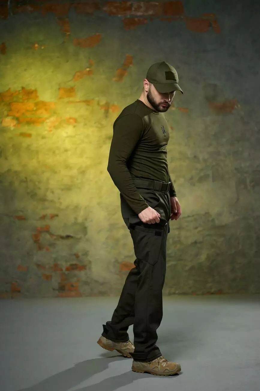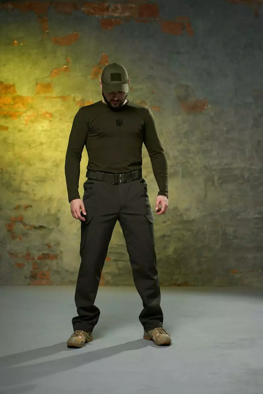 Комплект чоловічий хакі: штани soft shell на флісі "Peak" + лонгслів "Pulse" Intruder з тризубом