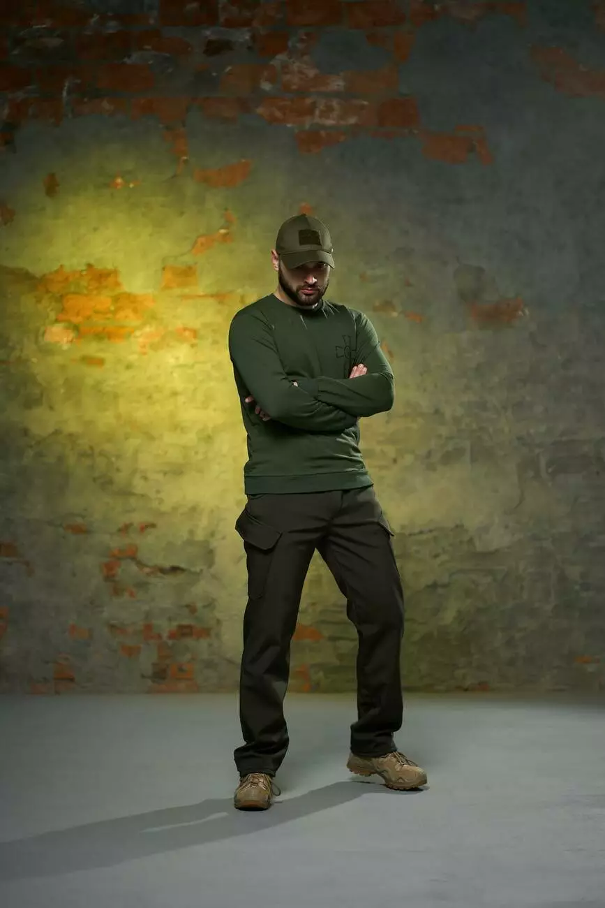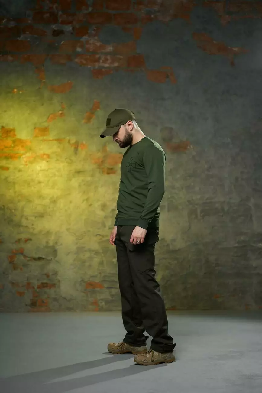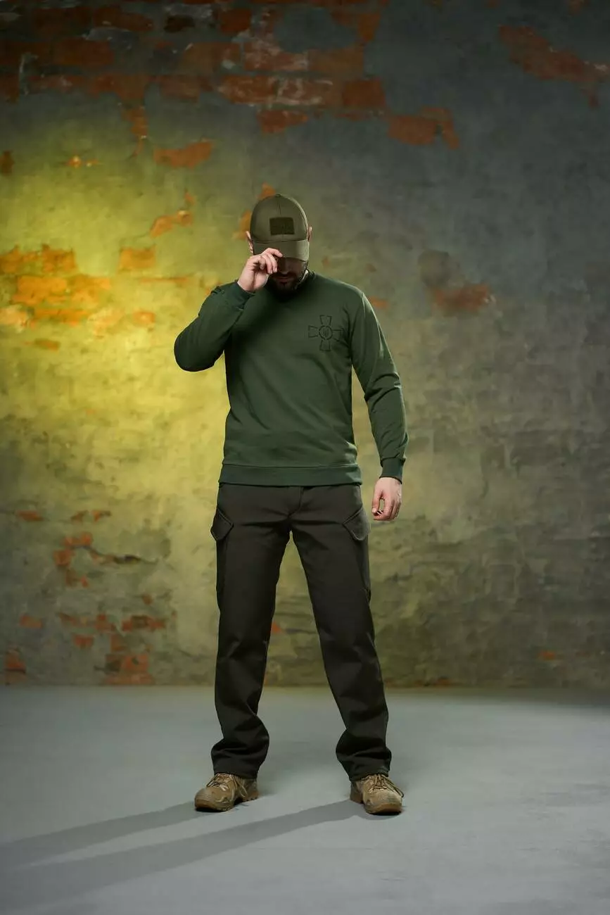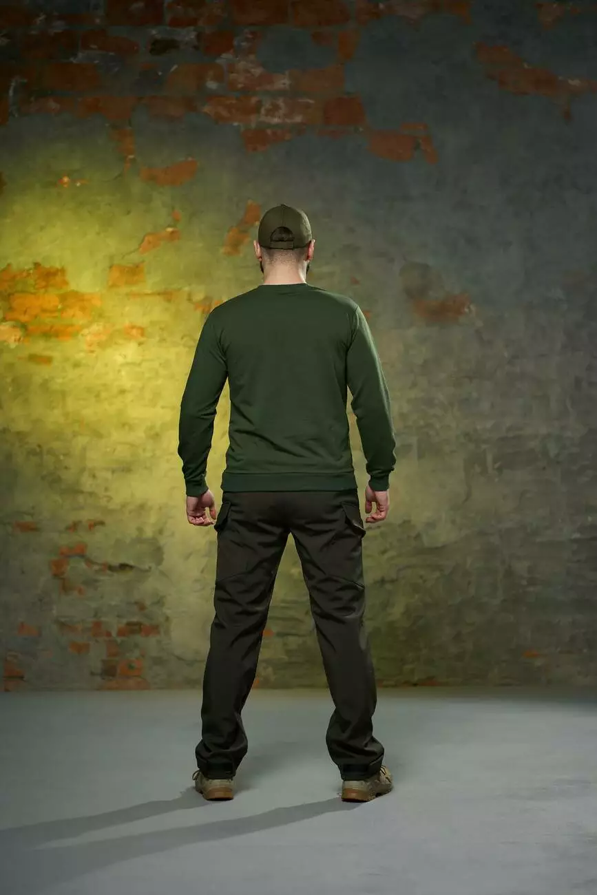 Комплект чоловічий хакі: штани soft shell на флісі "Peak" + світшот з емблемою ЗСУ