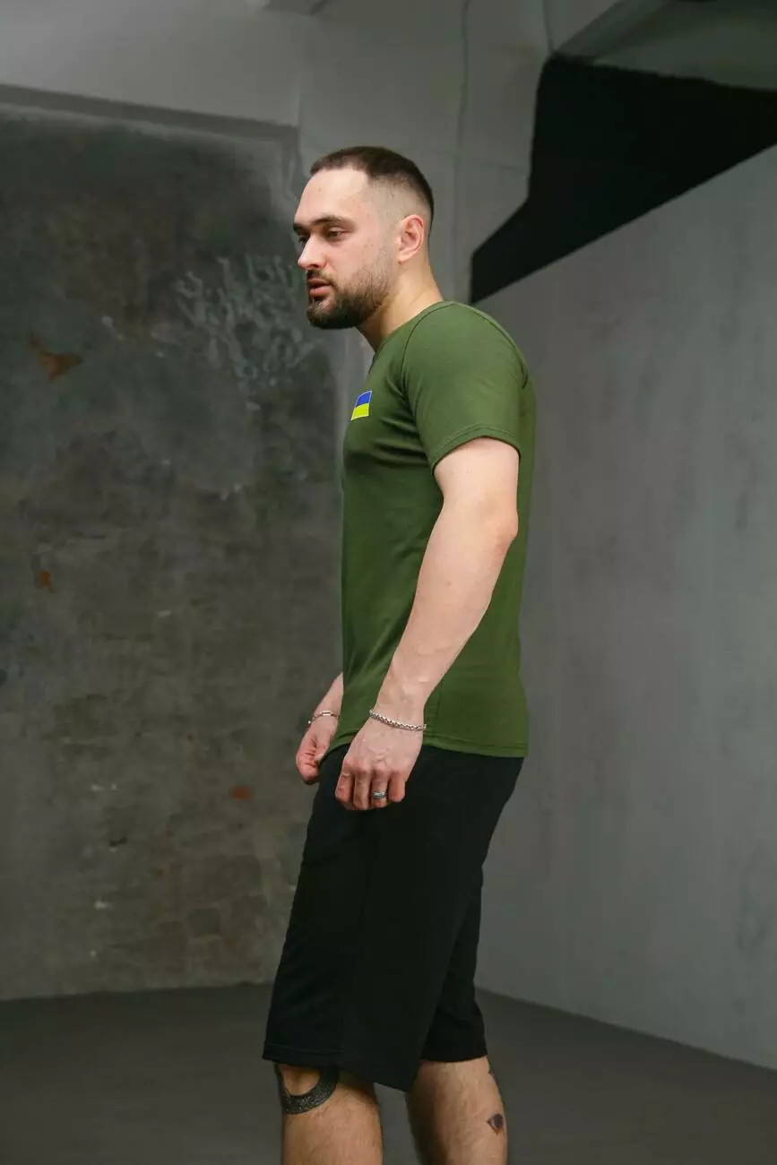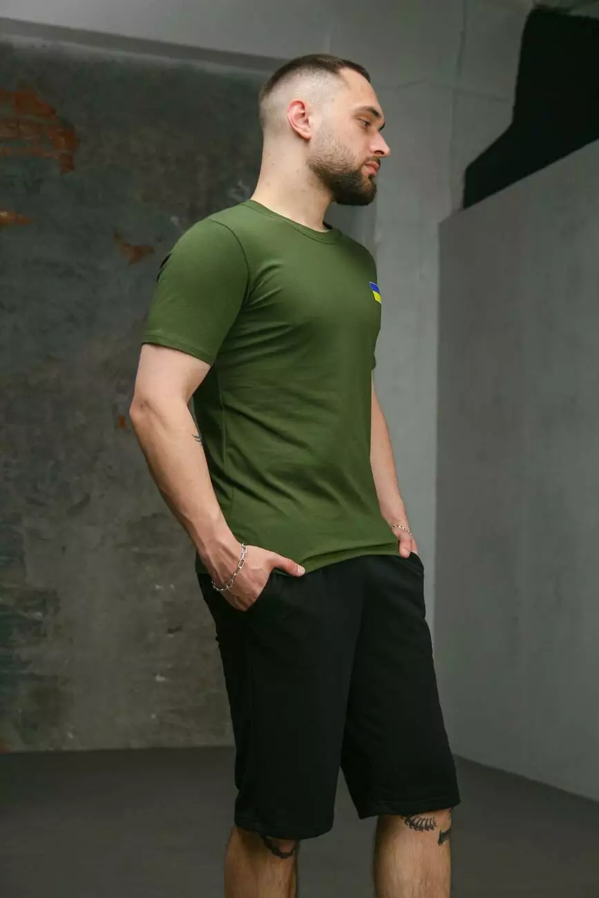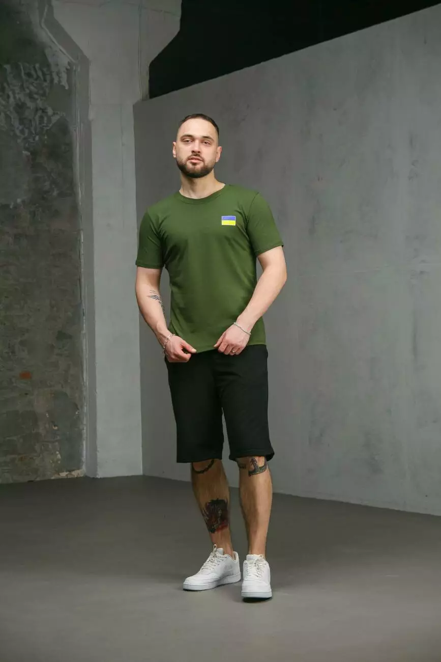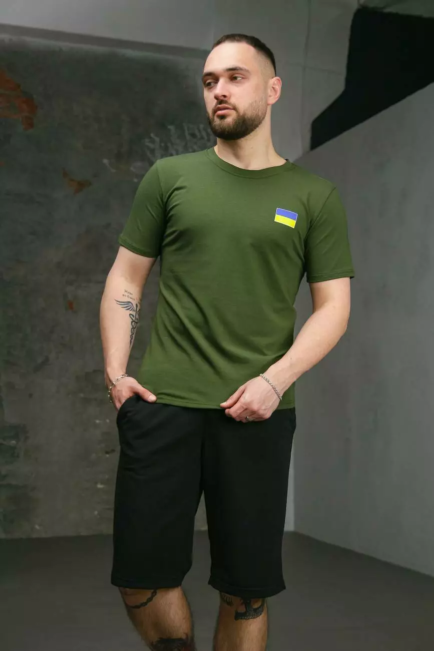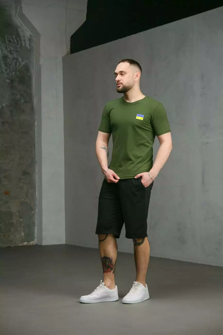 Комплект чоловічий Intruder: футболка з прапором на грудях хакі + шорти трикотажні чорні