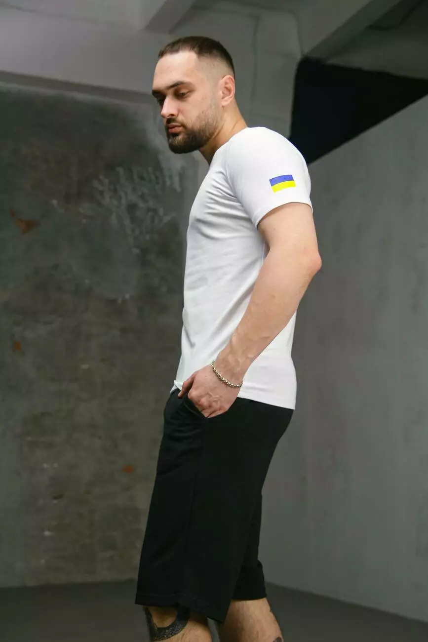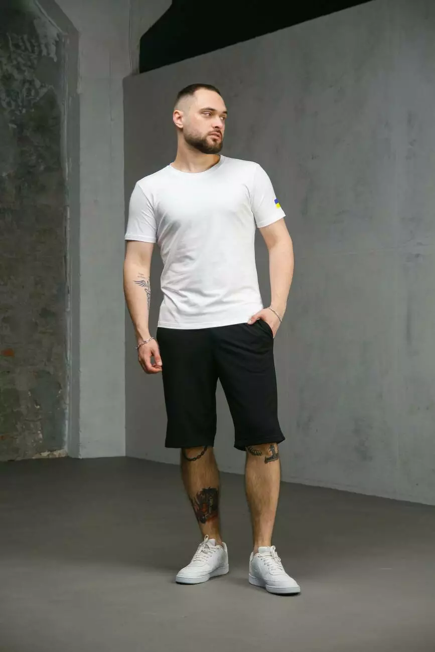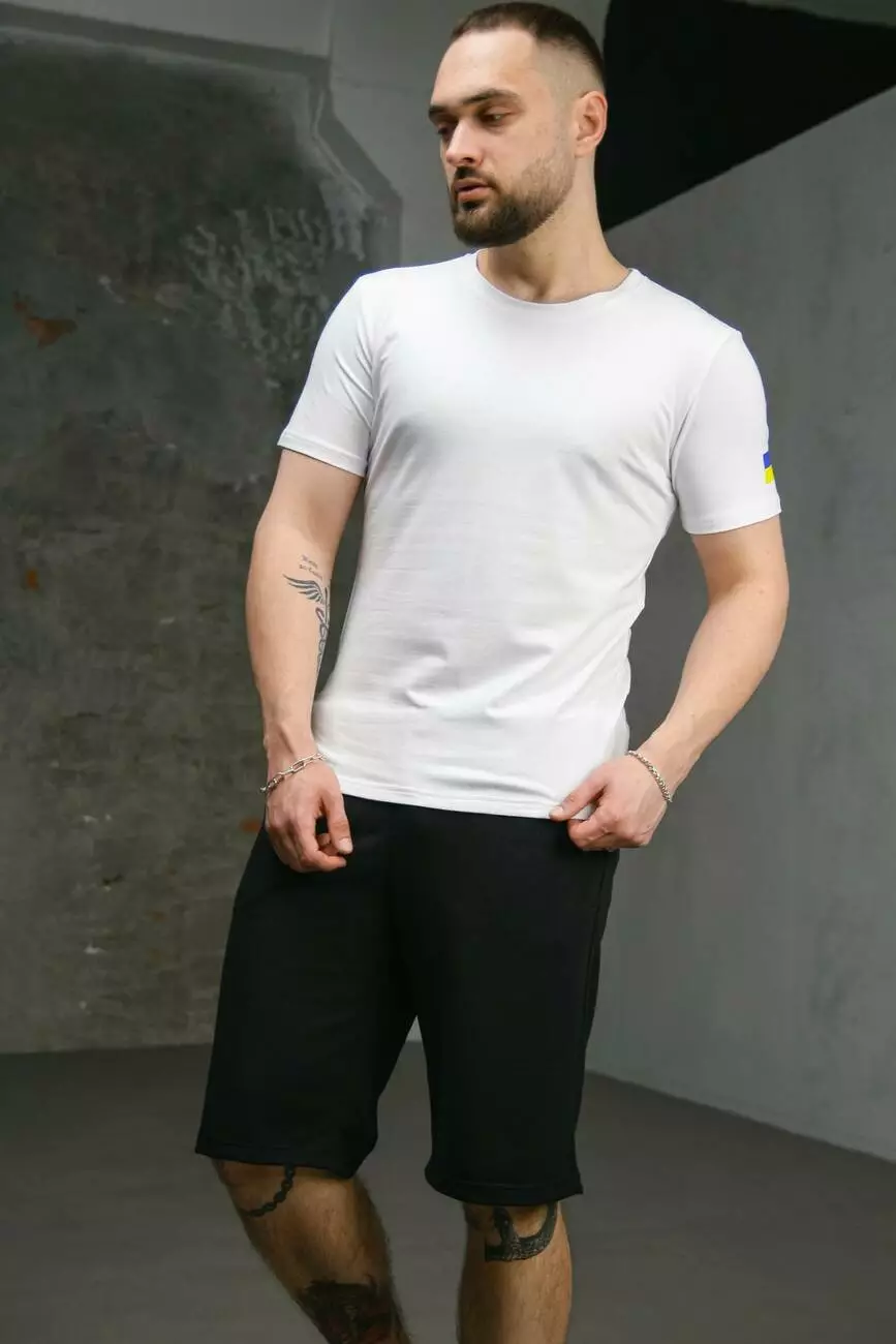 Комплект чоловічий Intruder: футболка з прапором на плечі біла + шорти трикотажні чорні