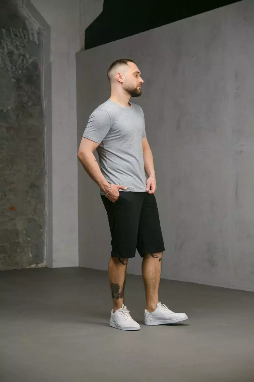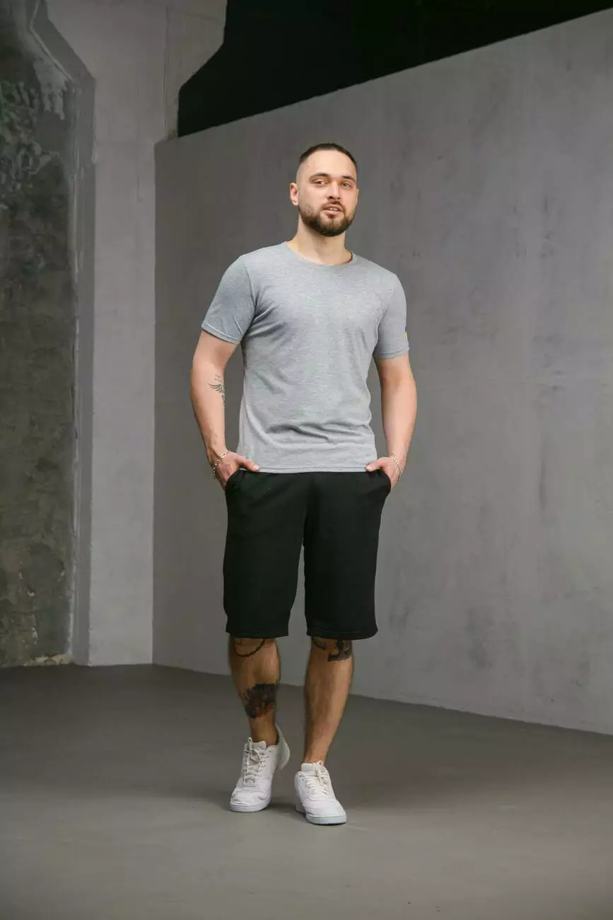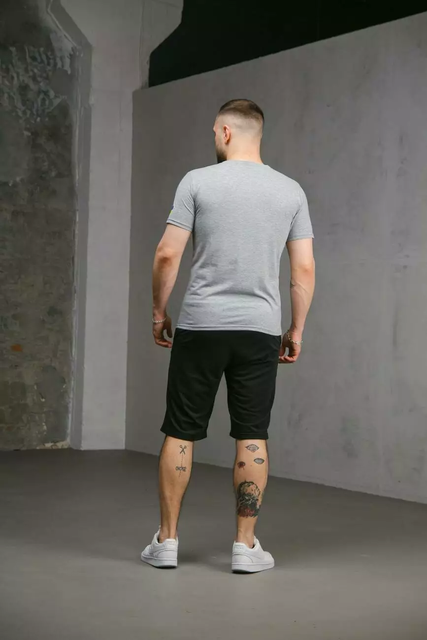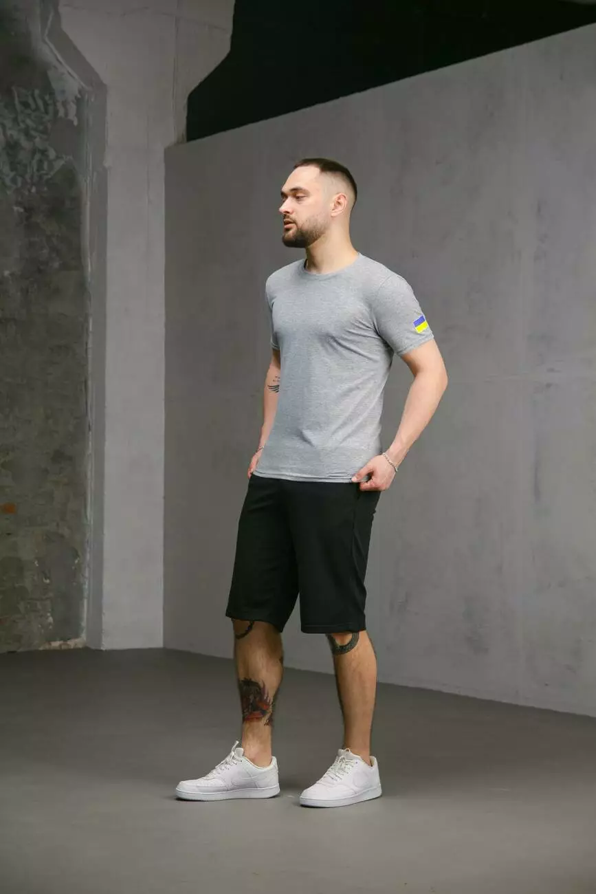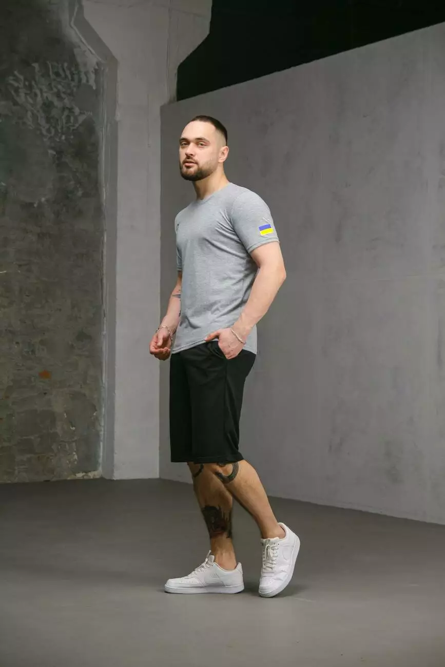 Комплект чоловічий Intruder: футболка з прапором на плечі сіра + шорти трикотажні чорні