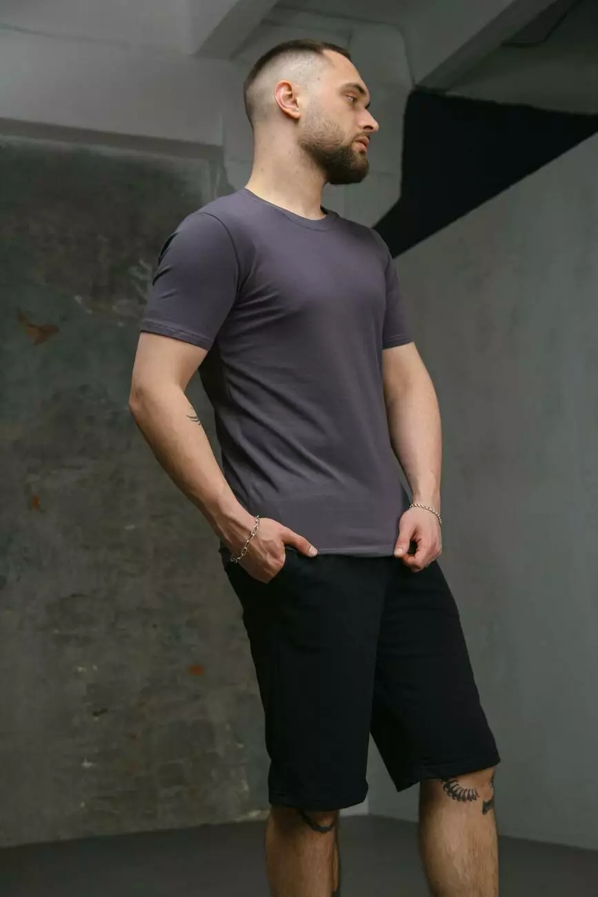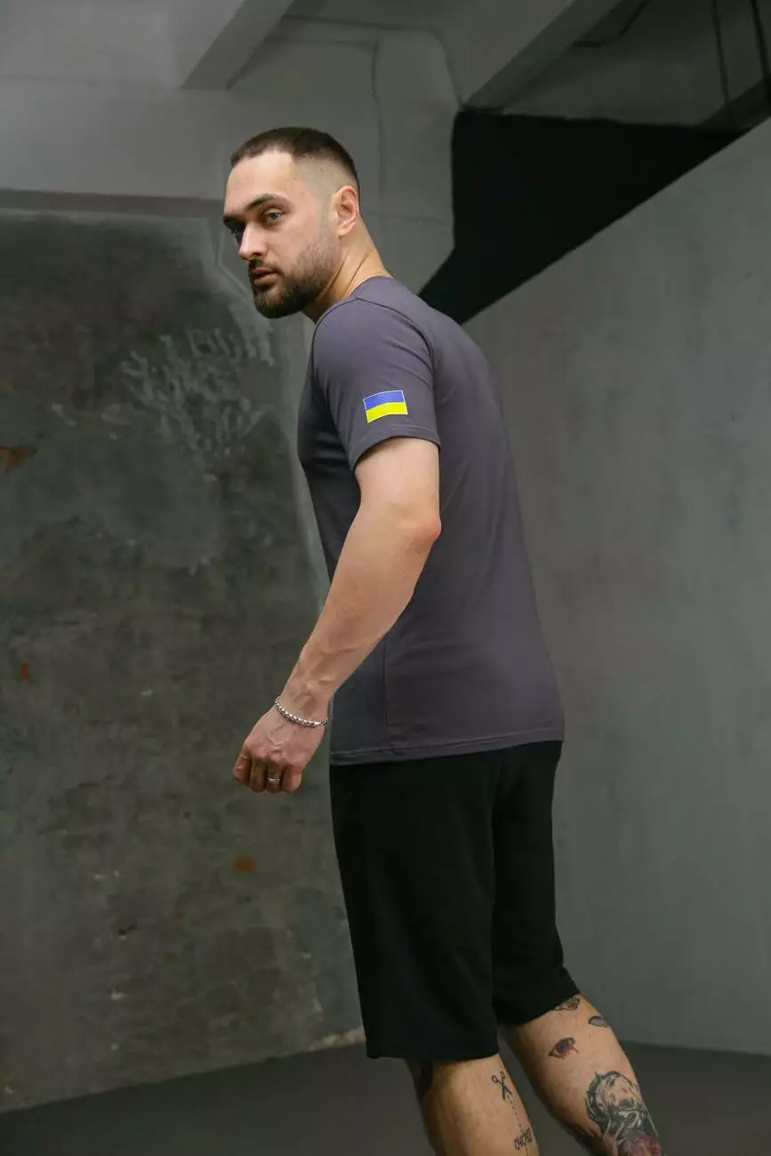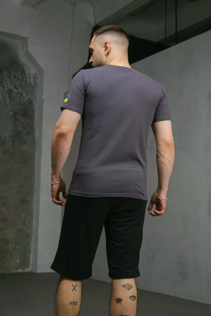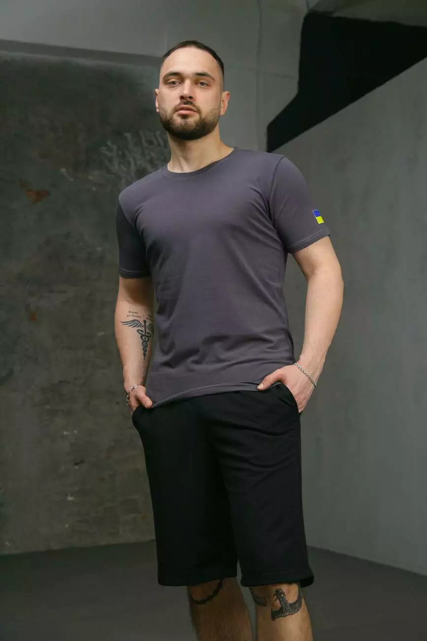 Комплект чоловічий Intruder: футболка з прапором на плечі темно-сіра + шорти трикотажні чорні
