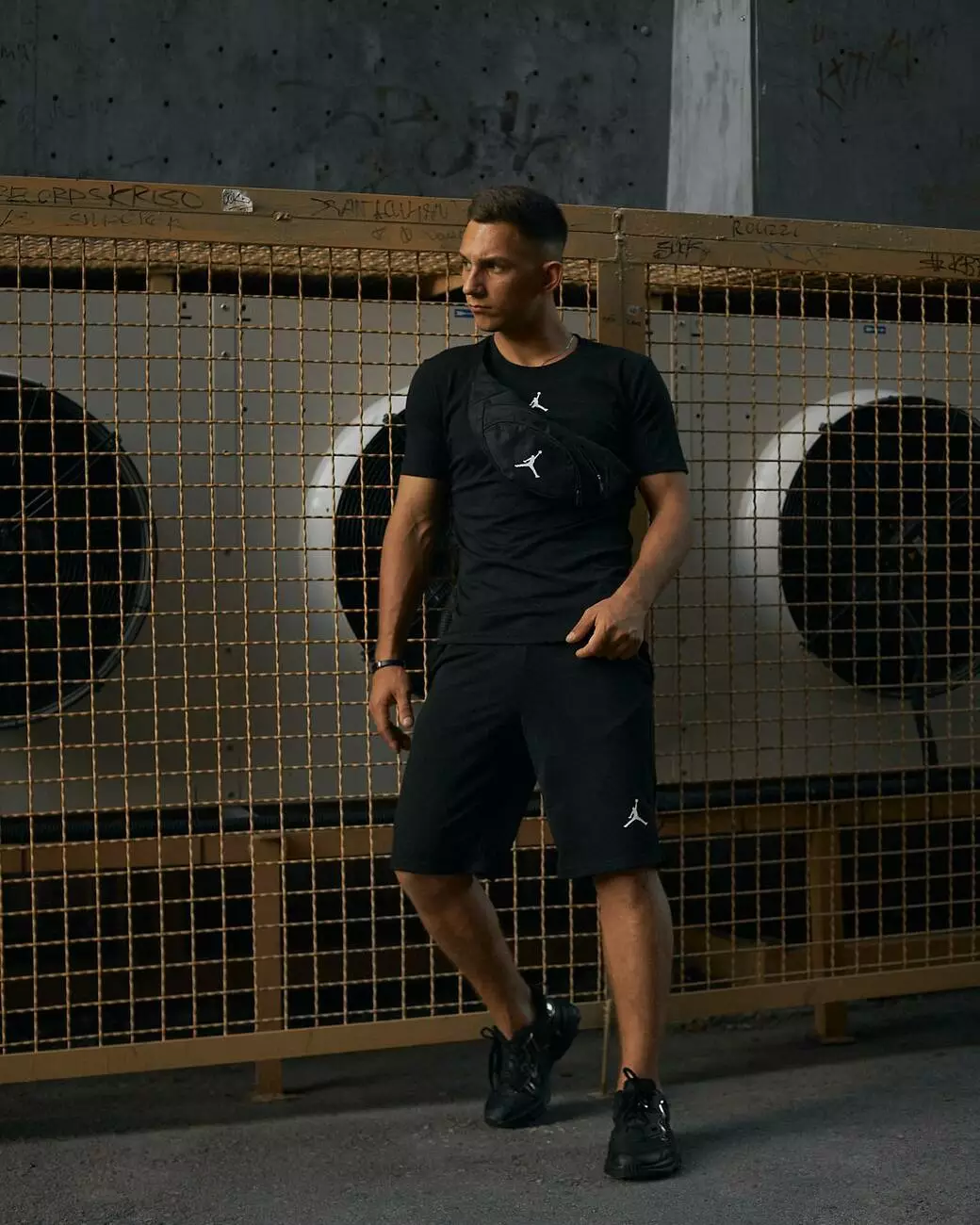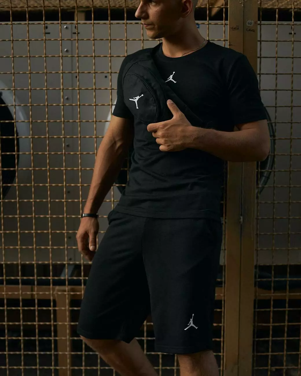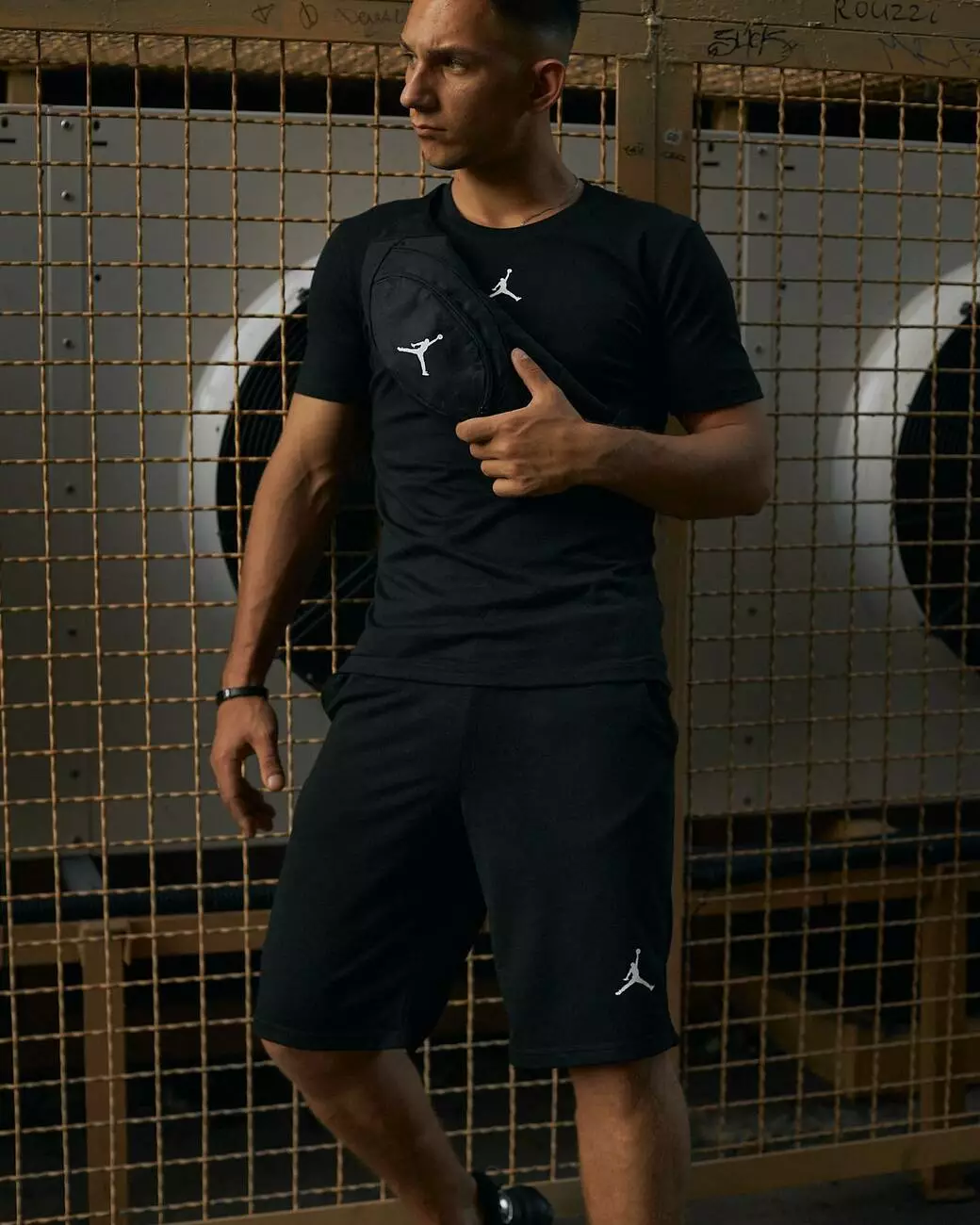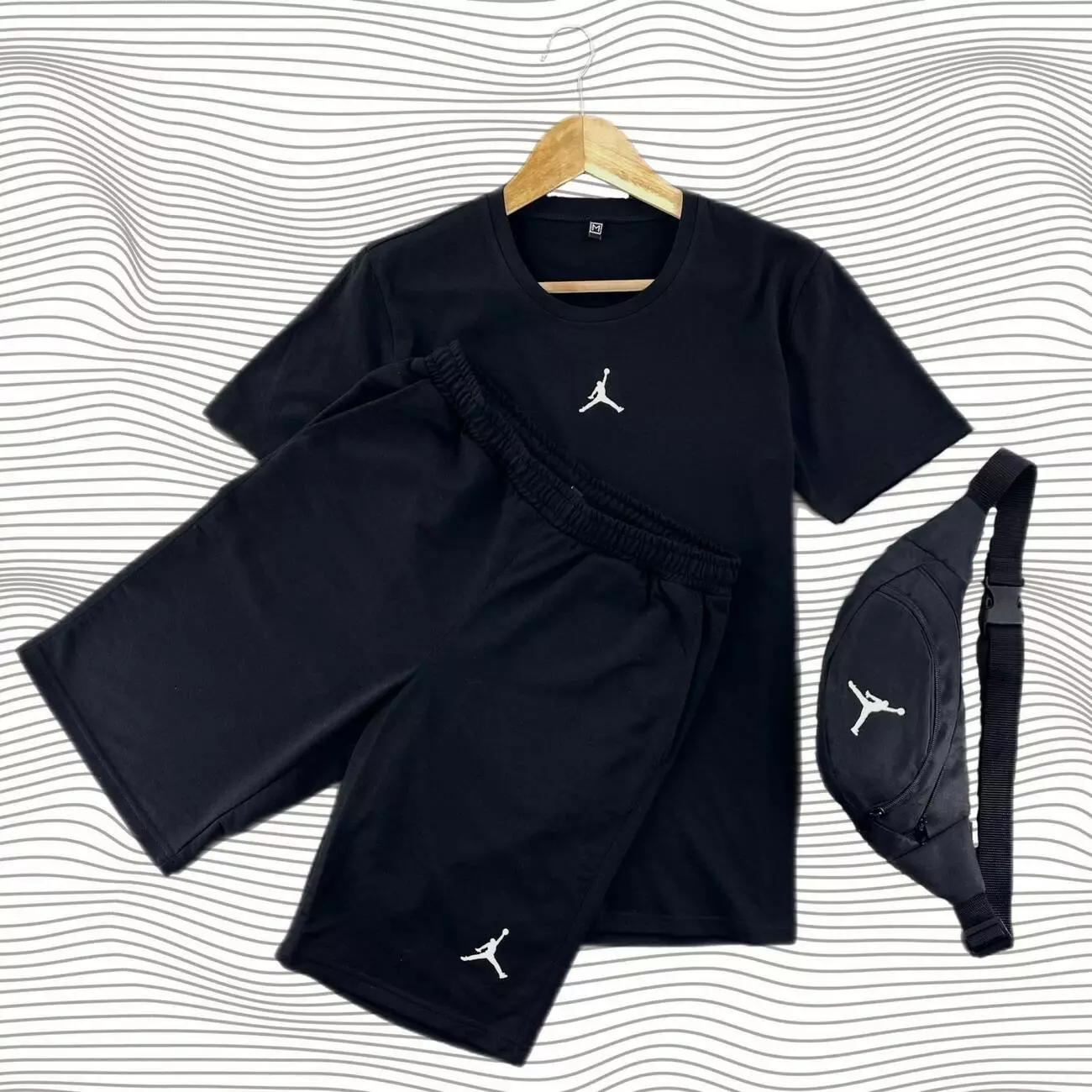 Комплект чоловічий Jordan чорний: футболка + шорти + бананка