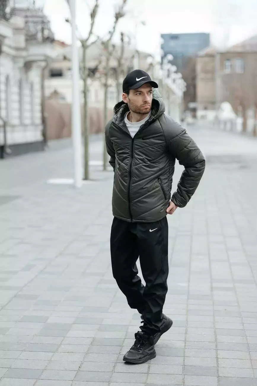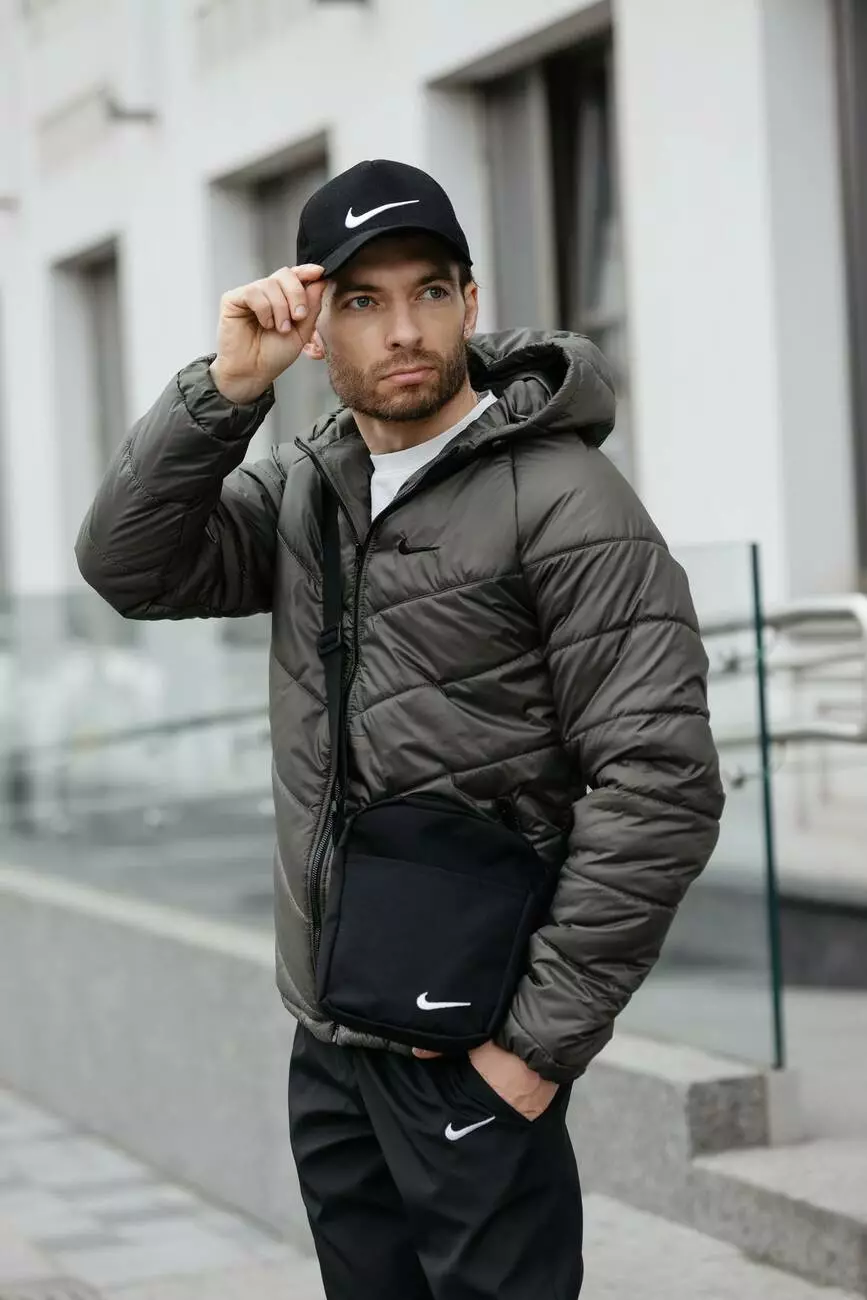 Комплект чоловічий: куртка MOTION Nike хакі + штани "President" чорні. Барсетка у подарунок!