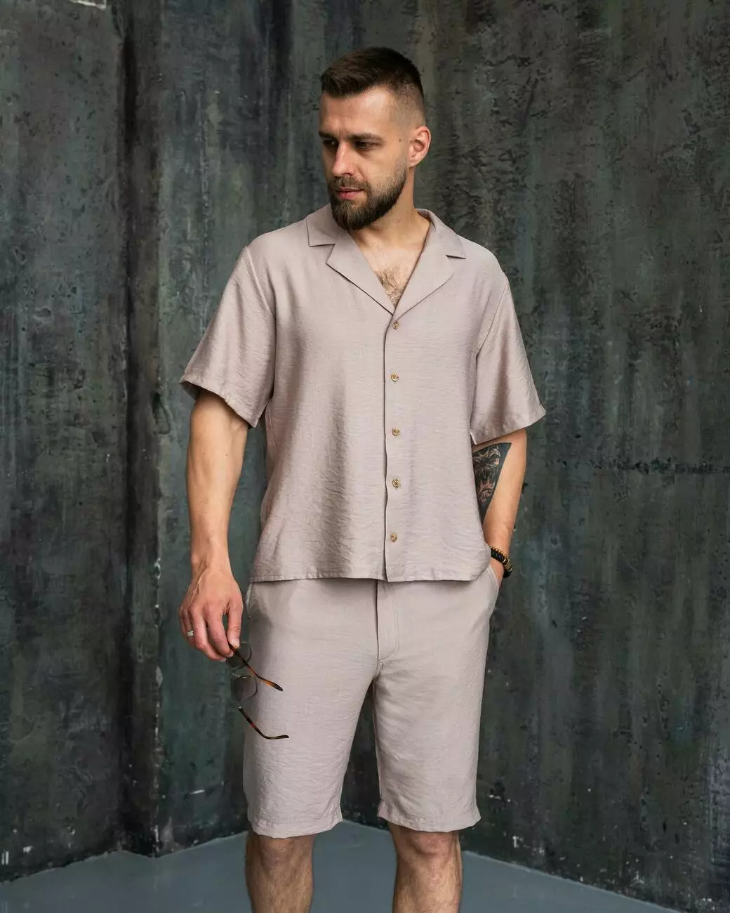 Комплект чоловічий лляний "Aero" сорочка + шорти мокко