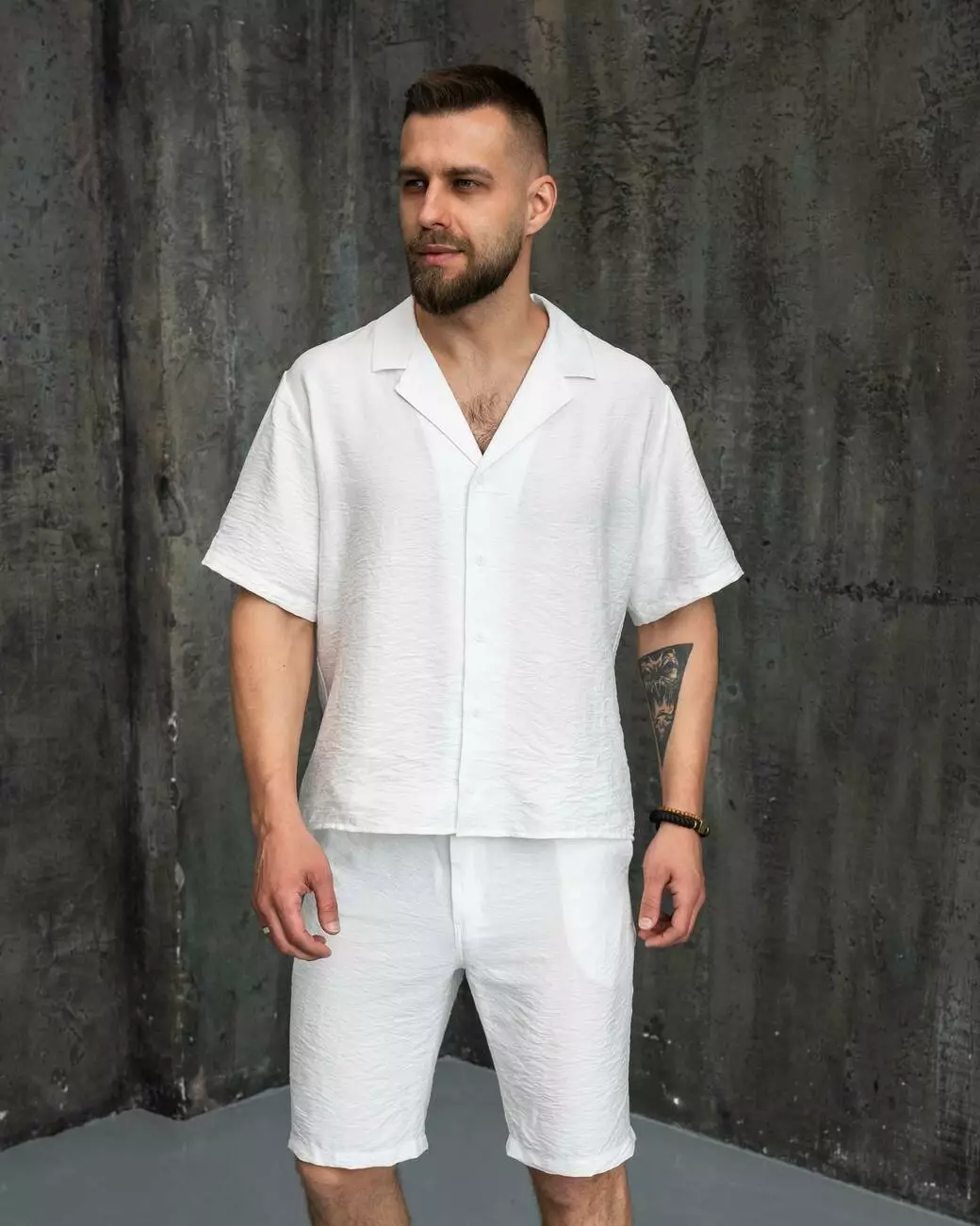 Комплект чоловічий лляний "Aero" сорочка + шорти молочні