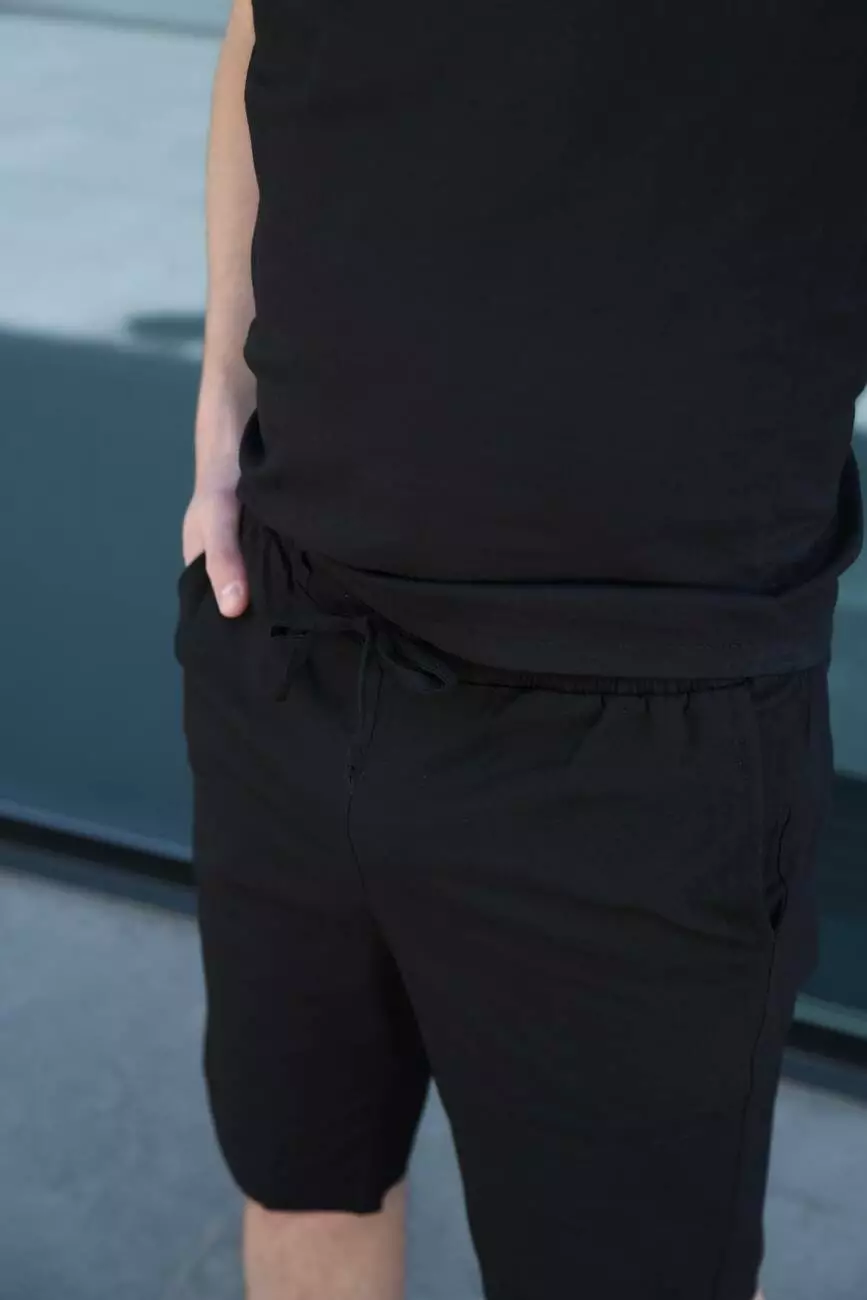 Комплект чоловічий лляний базовий "Flax" Intruder чорний: поло + шорти