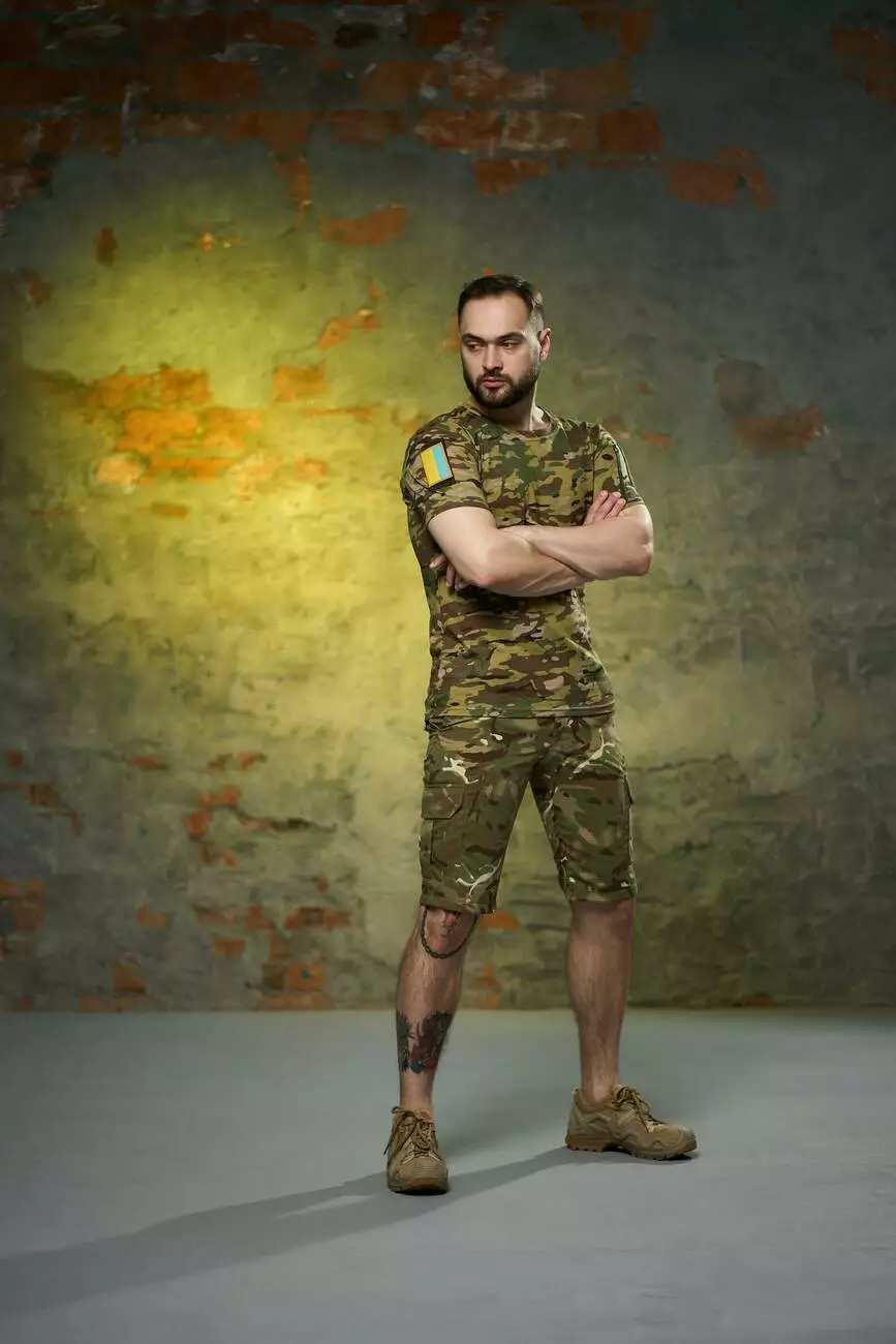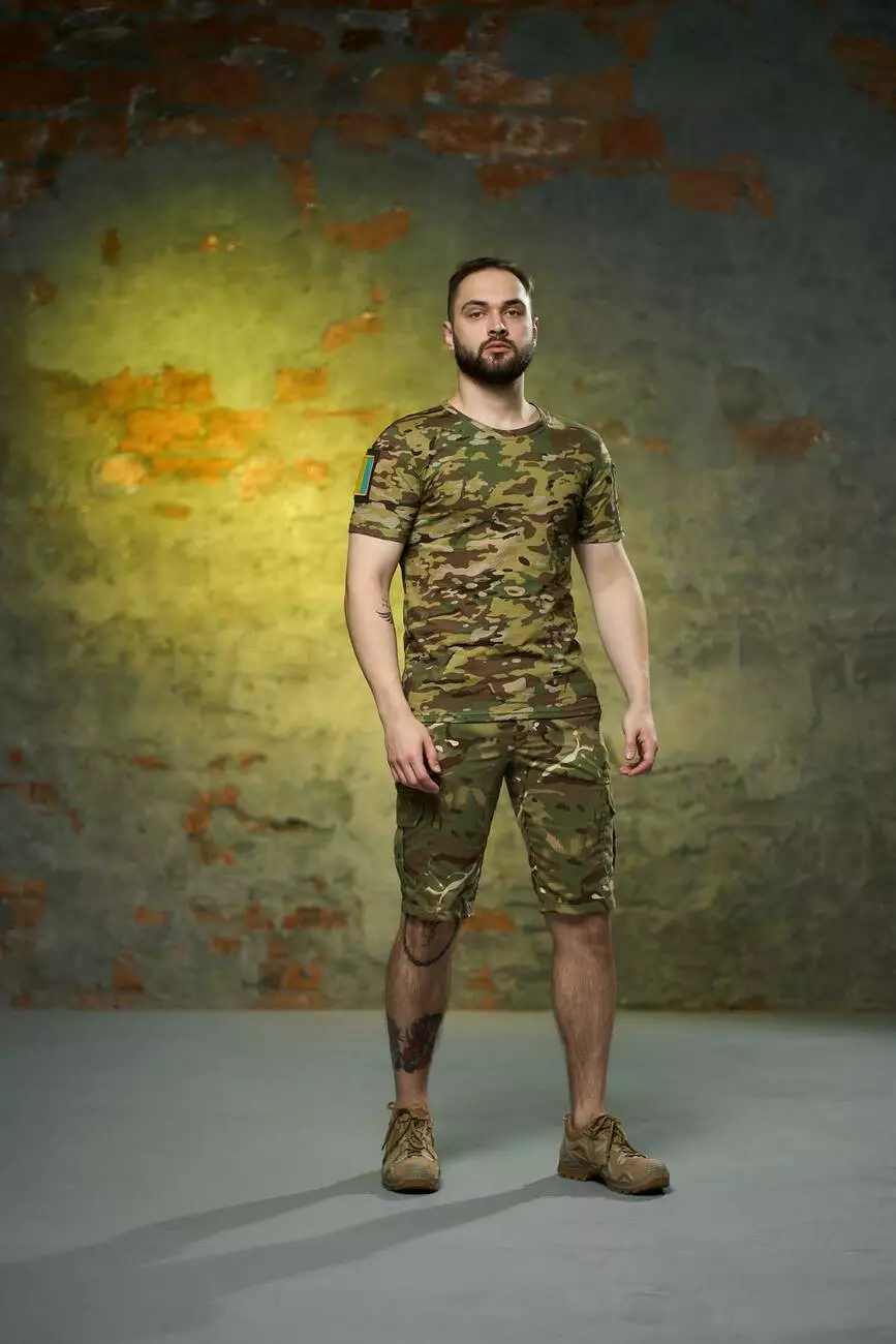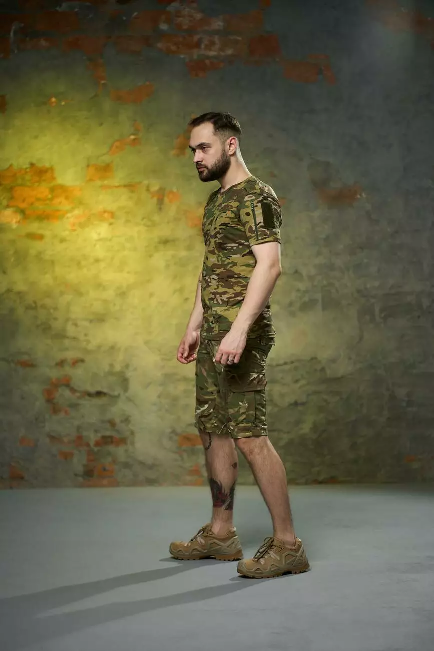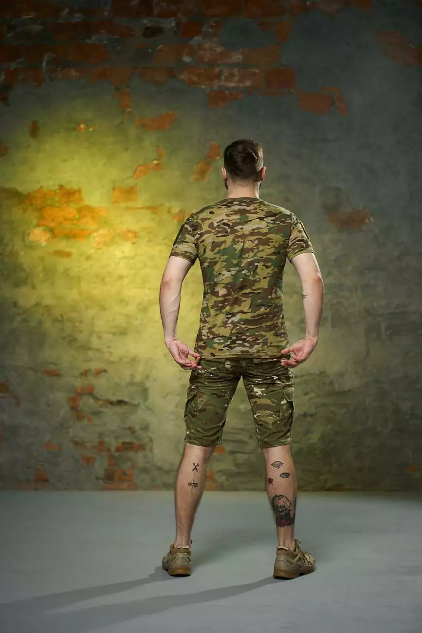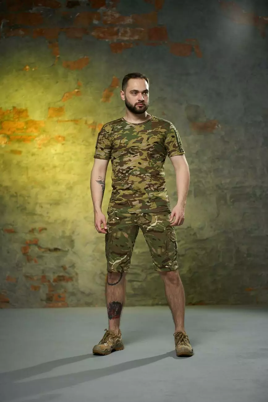 Комплект чоловічий мультикам: шорти "Aim" + футболка з липучками на плечах та кишенею на блискавці