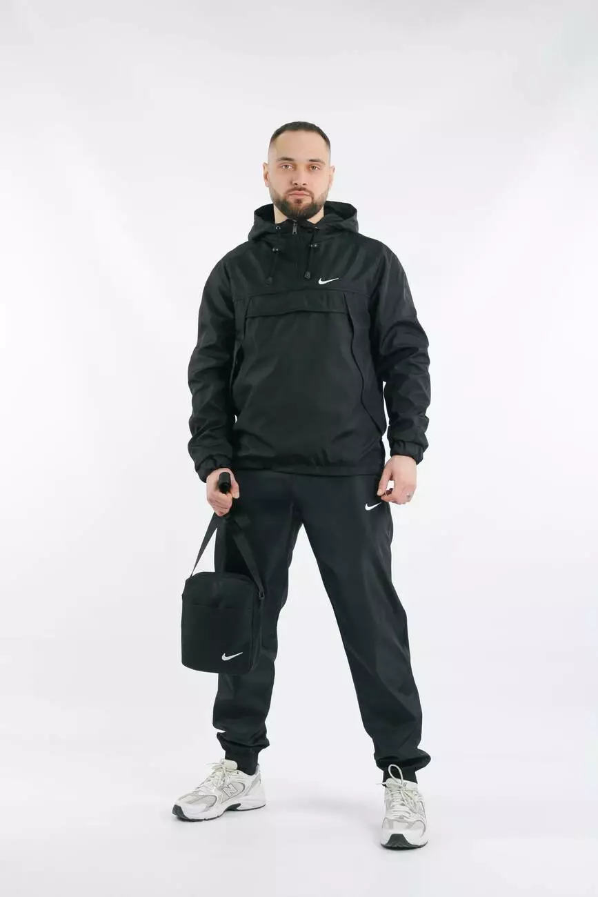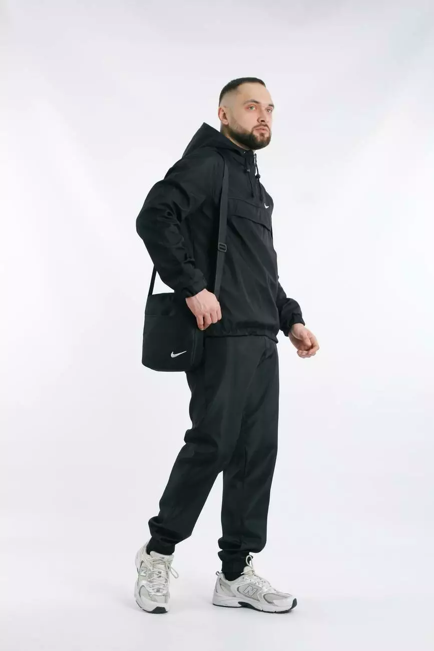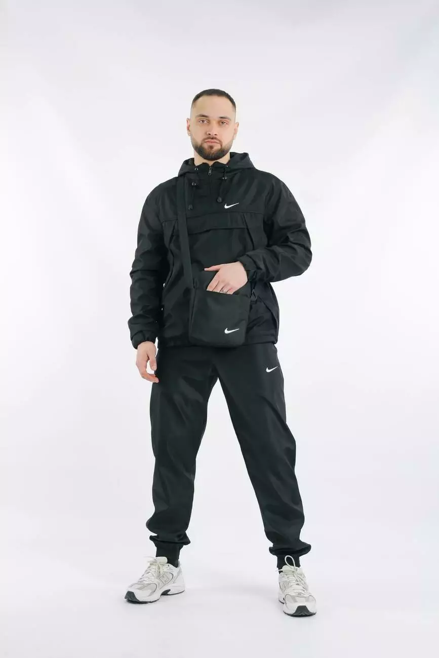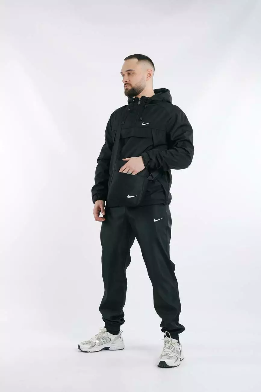 Комплект чоловічий Nike: анорак "House" чорний + штани "President" чорні + барсетка