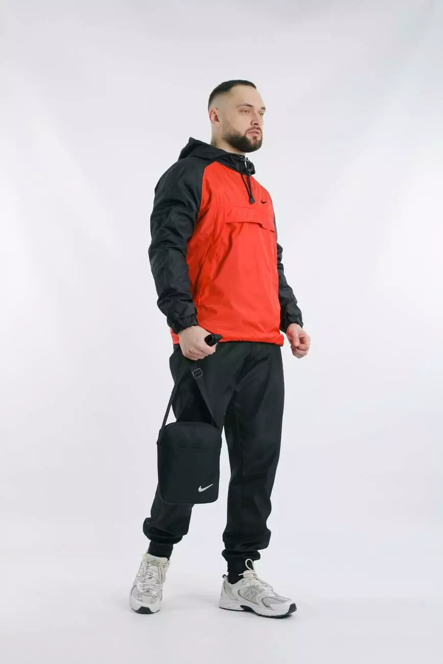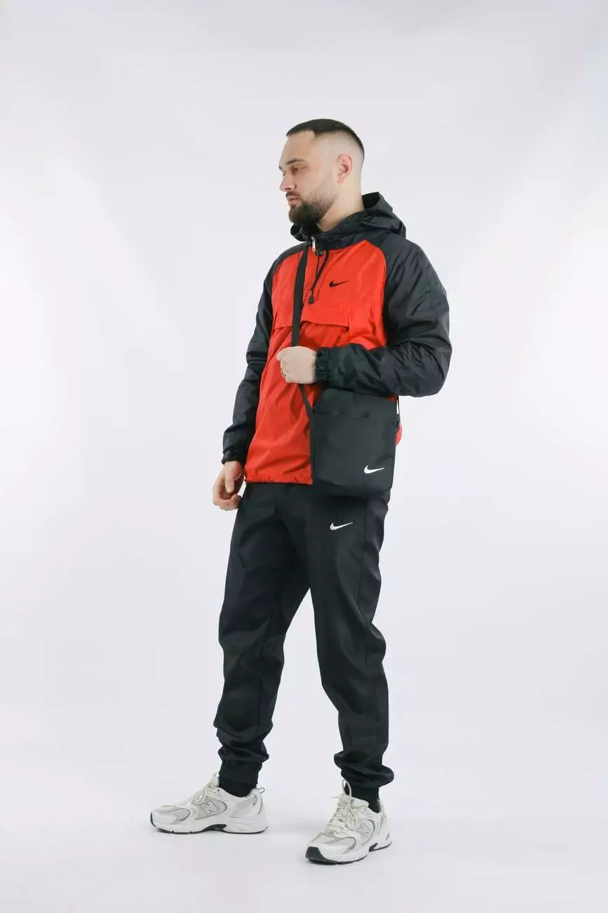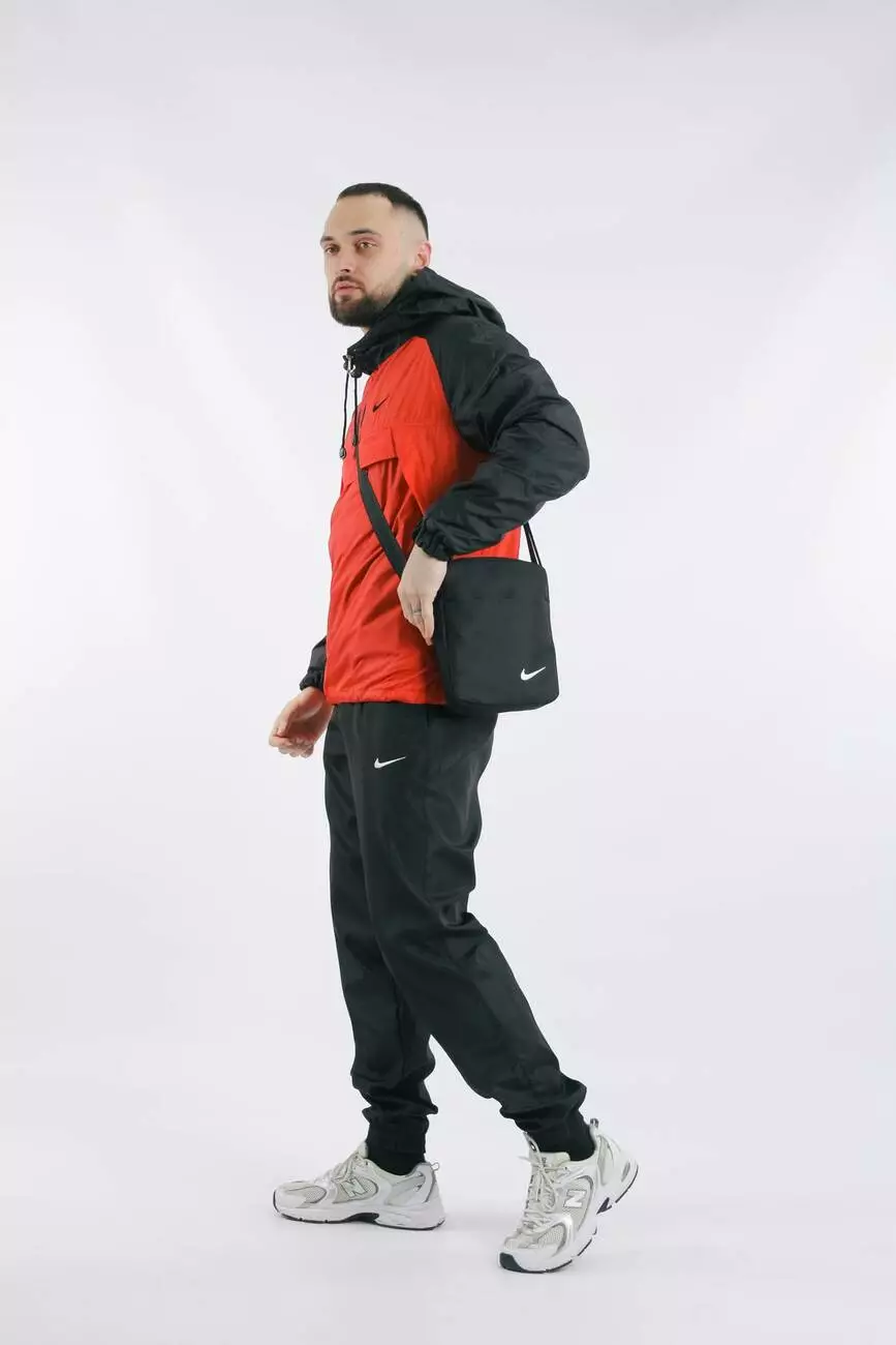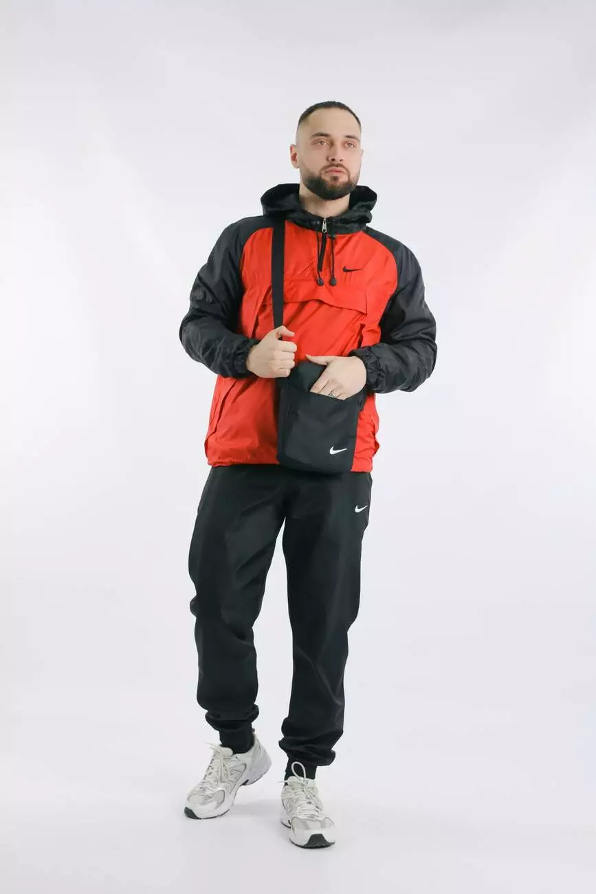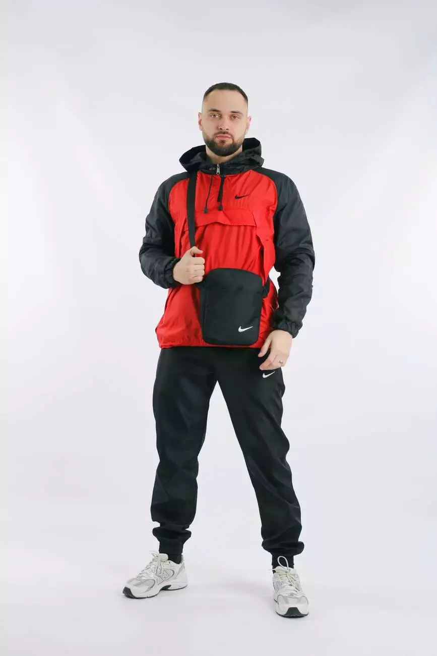 Комплект чоловічий Nike: анорак "House" чорно-червоний + штани "President" + барсетка