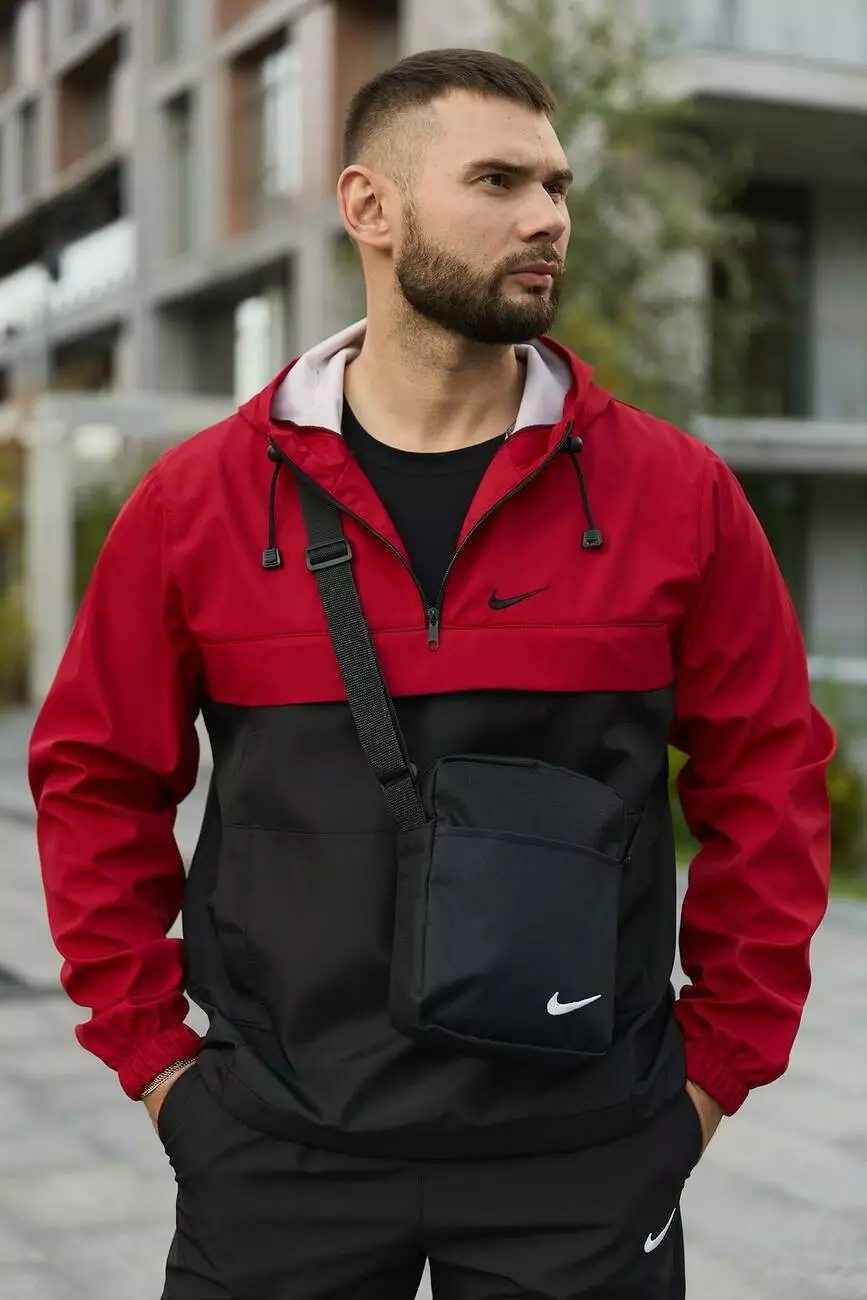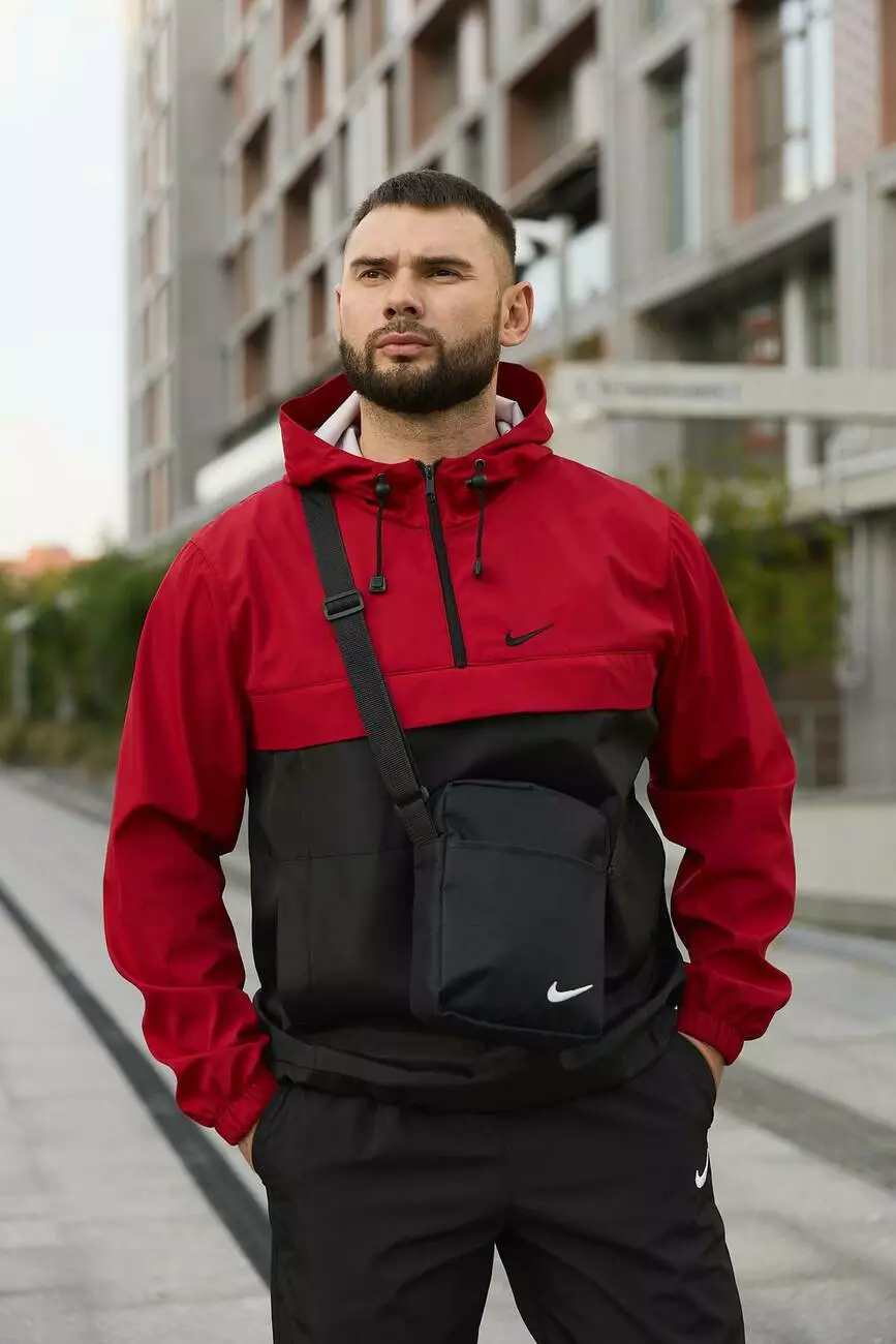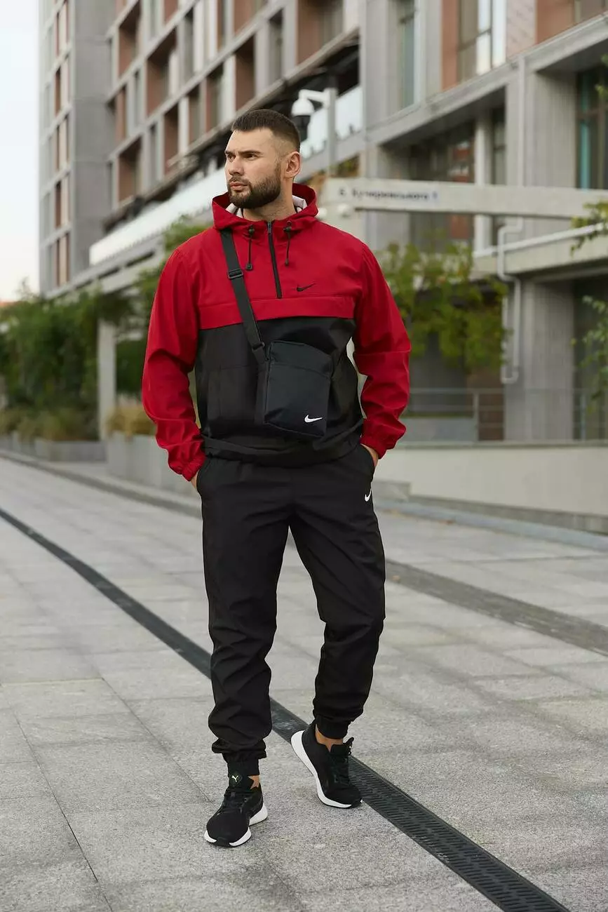 Комплект чоловічий Nike: анорак "President" червоно-чорний + штани "President" чорні. БАРСЕТКА У ПОДАРУНОК!