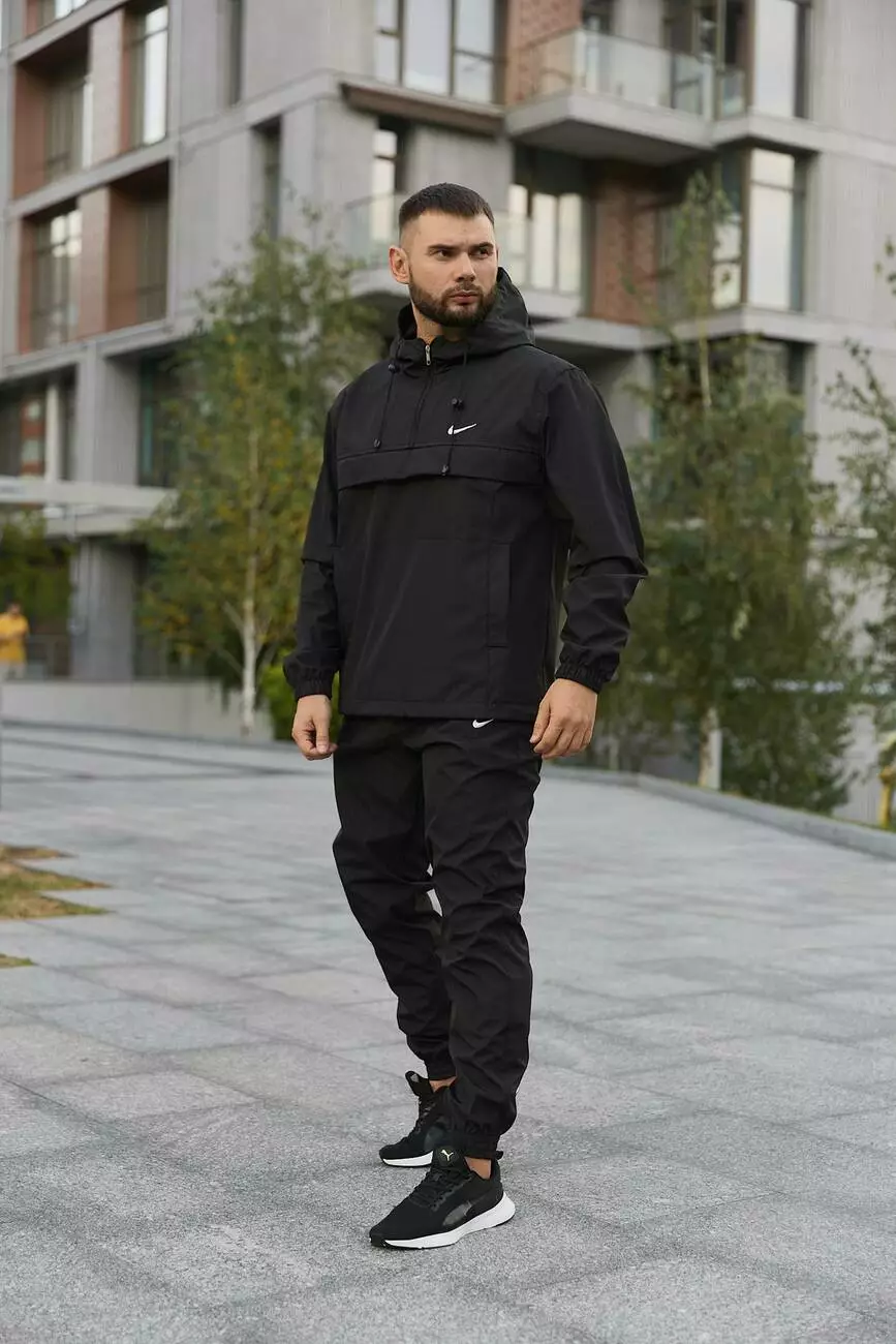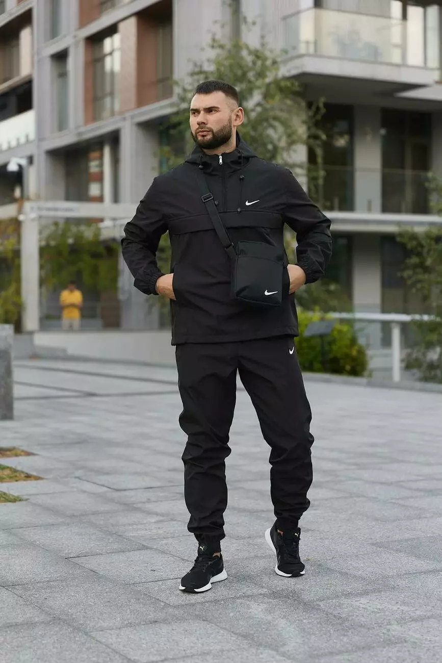 Комплект чоловічий Nike: анорак "President" чорний + штани "President" чорні. БАРСЕТКА У ПОДАРУНОК!