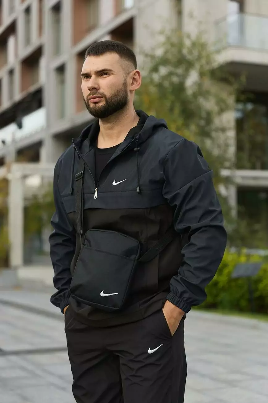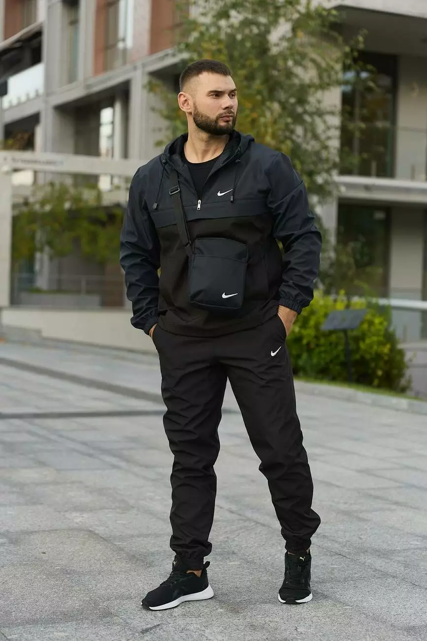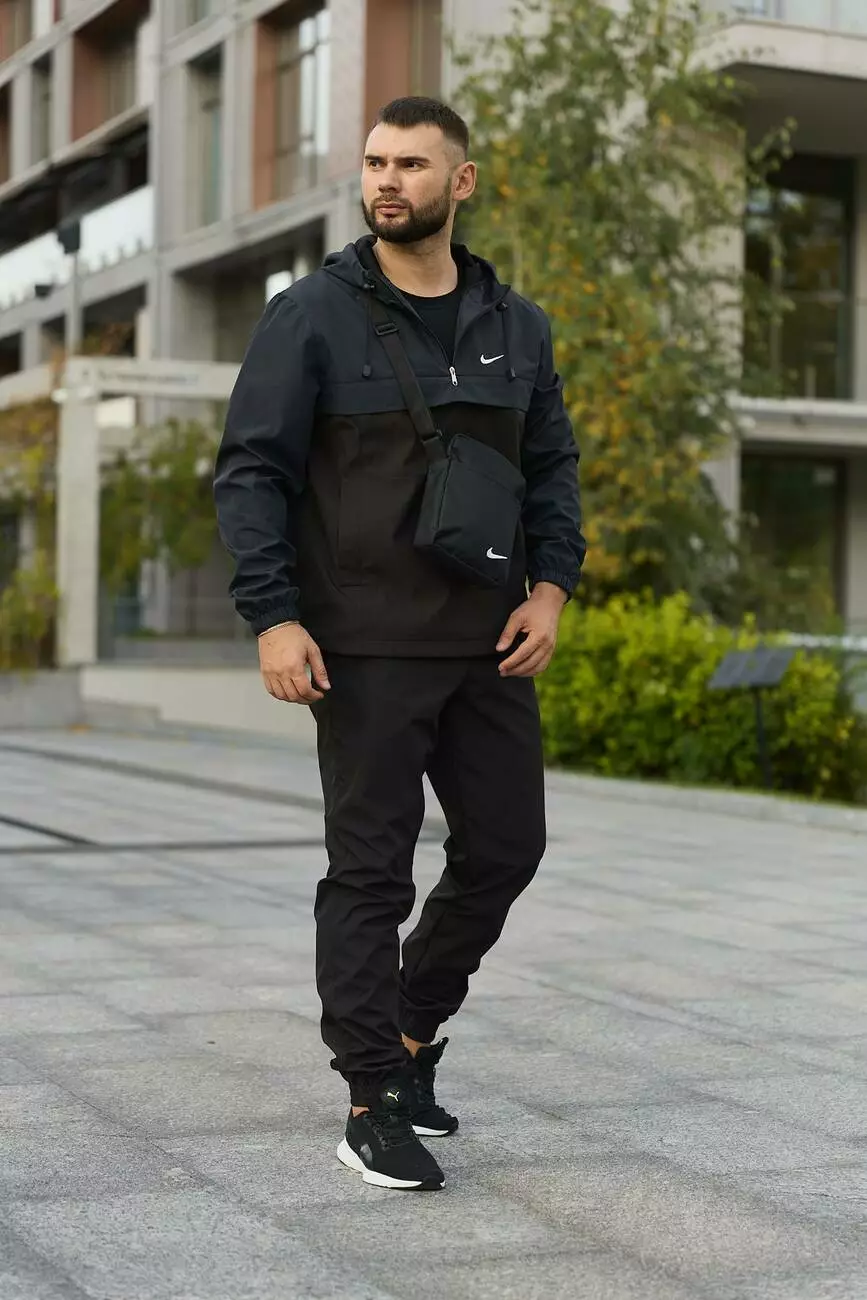 Комплект чоловічий Nike: анорак "President" синьо-чорний + штани "President" чорні. БАРСЕТКА У ПОДАРУНОК!