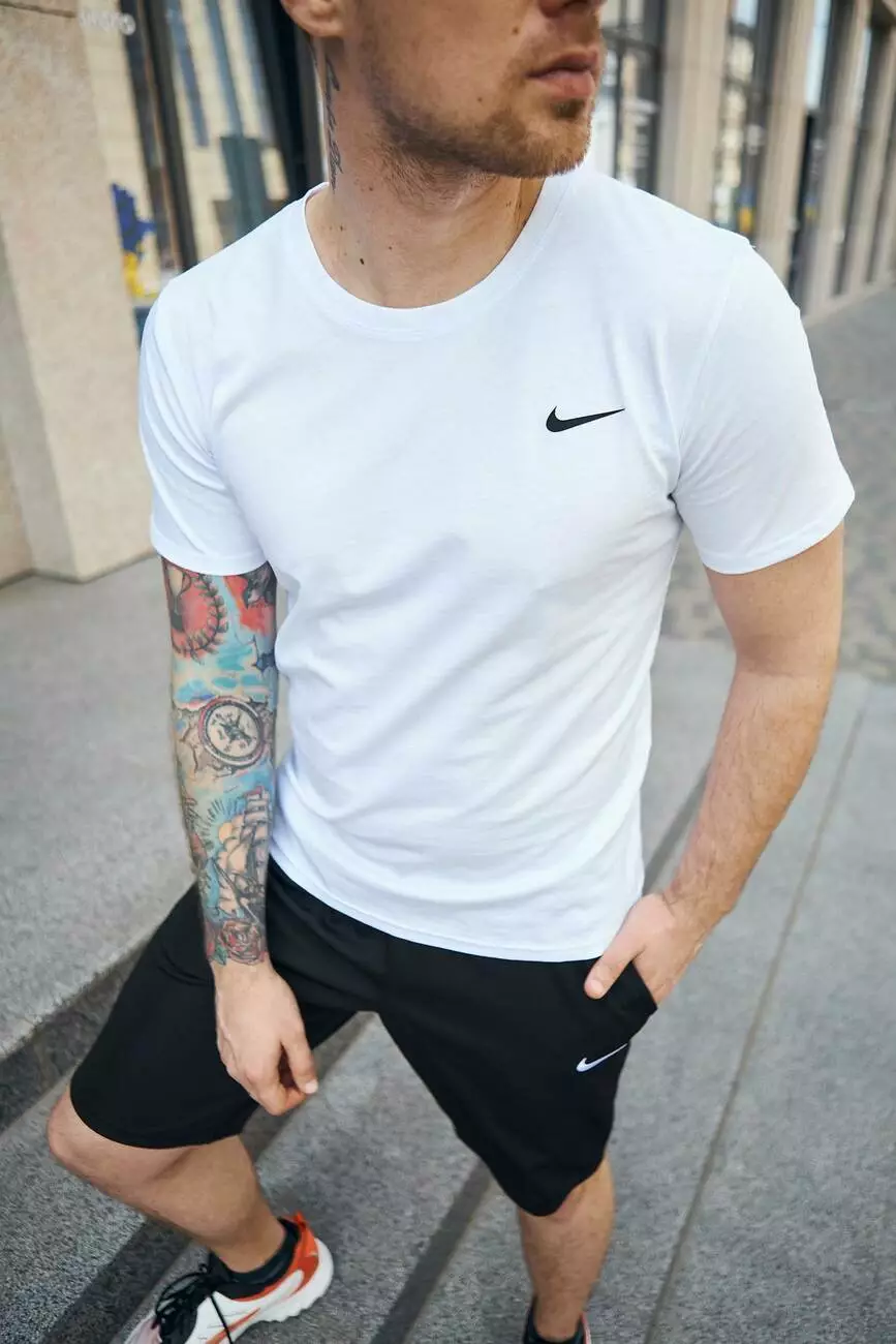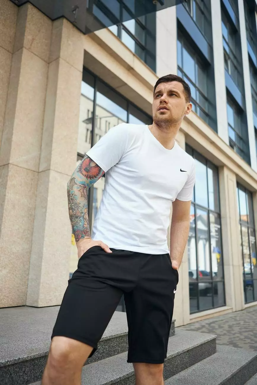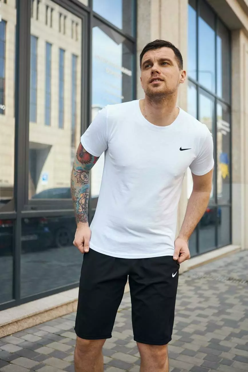 Комплект чоловічий Nike: футболка біла + шорти чорні