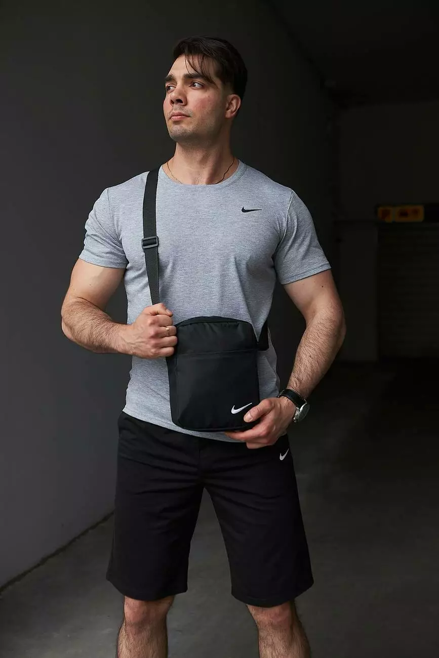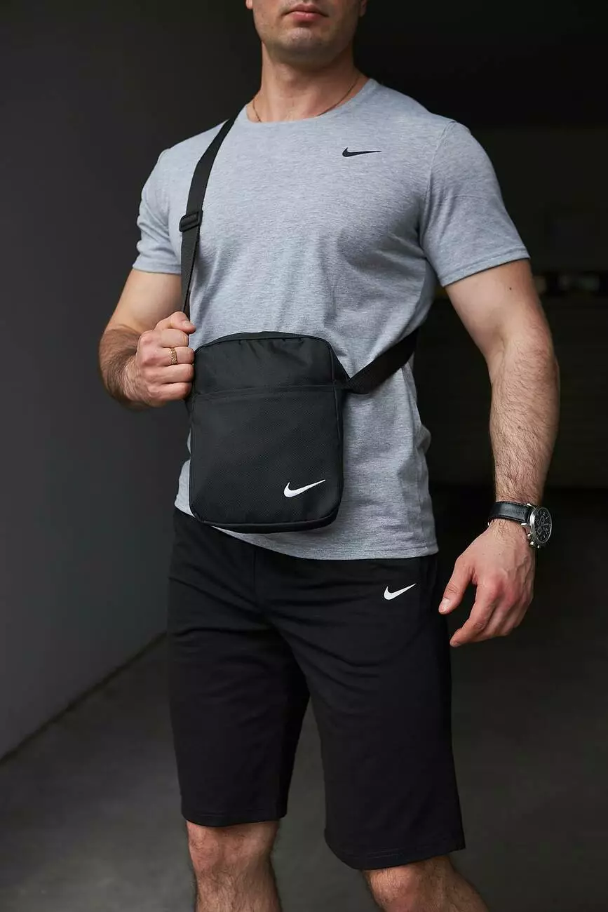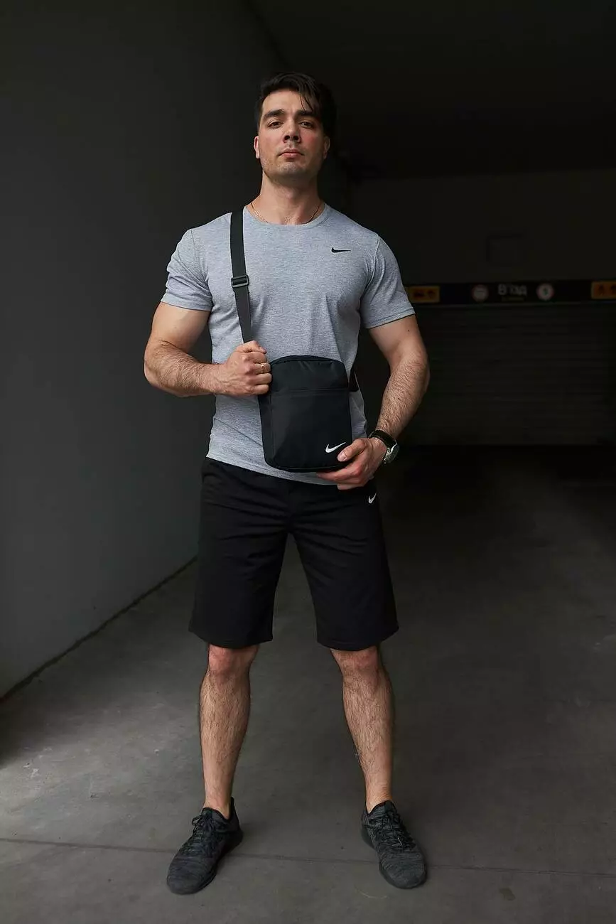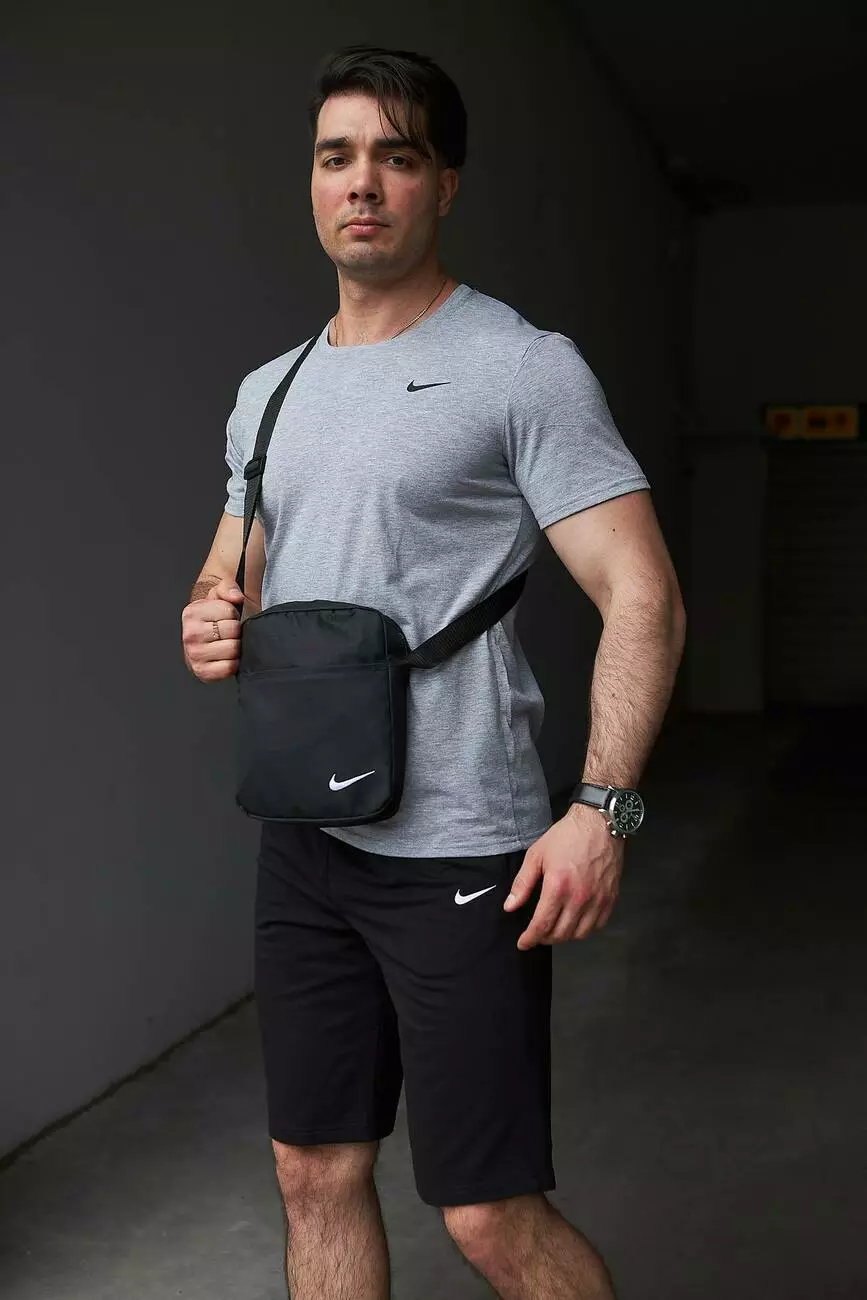Комплект чоловічий Nike: футболка сіра + шорти чорні + барсетка чорна