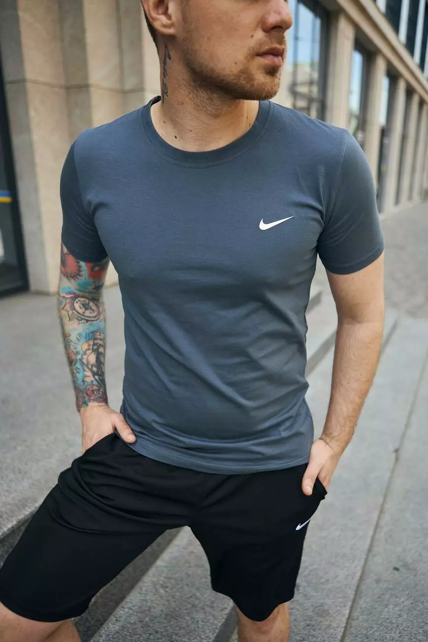 Комплект чоловічий Nike: футболка темно-сіра + шорти чорні