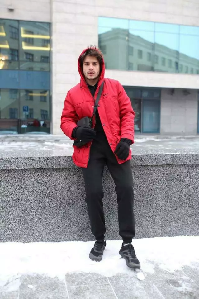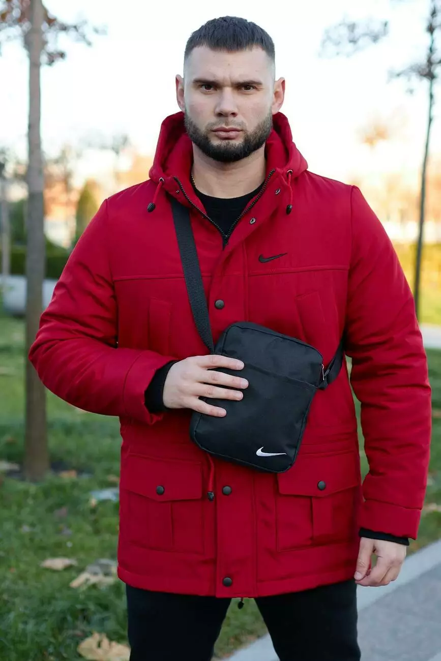 Комплект чоловічий Nike: парка зимова червона + штани з тринитки утеплені чорні. Барсетка та рукавички У ПОДАРУНОК!