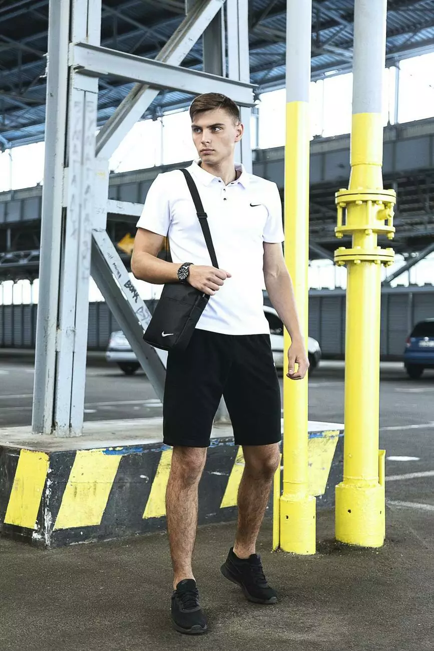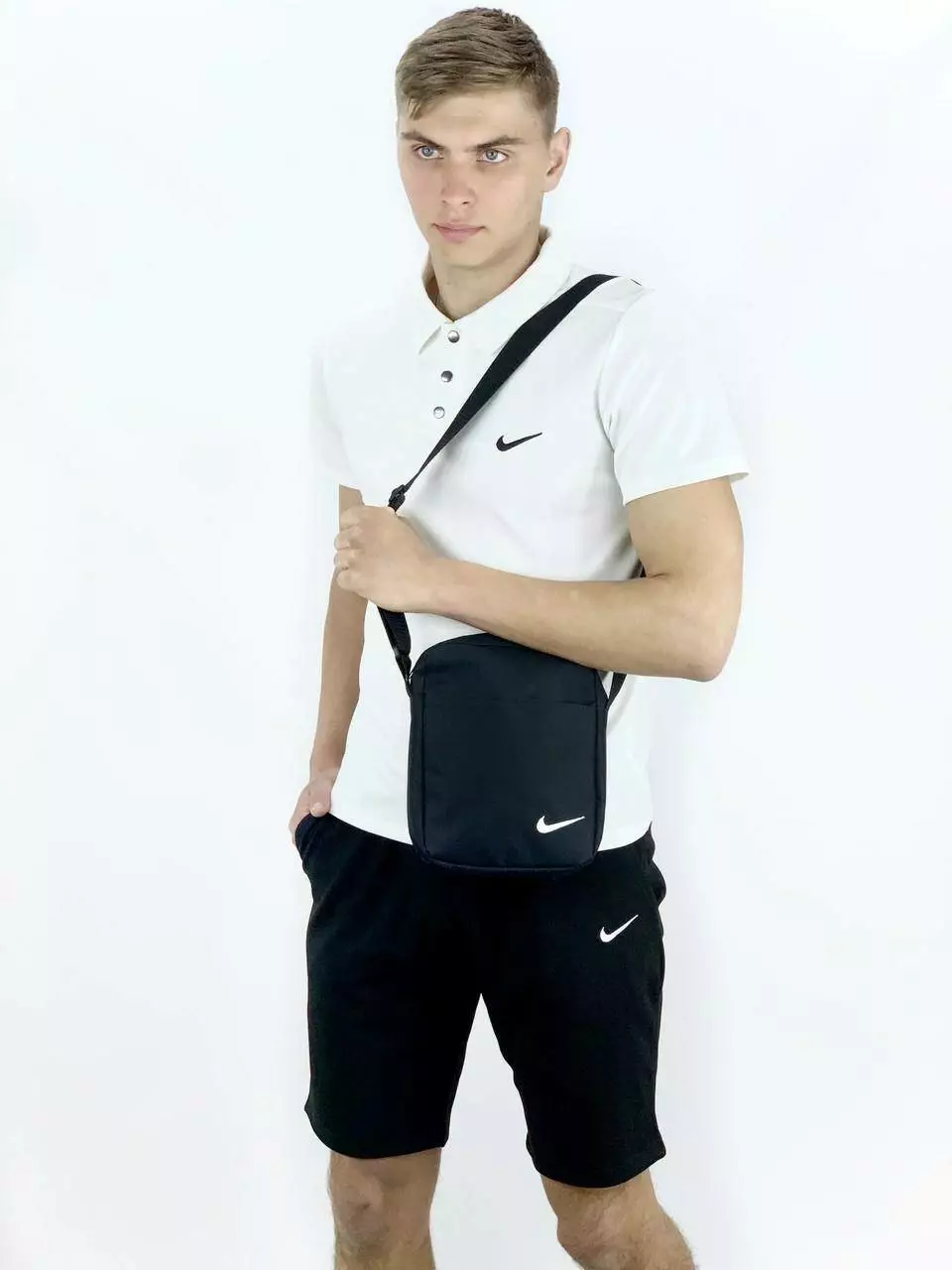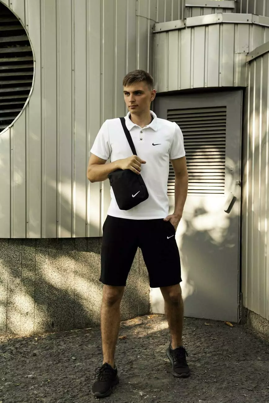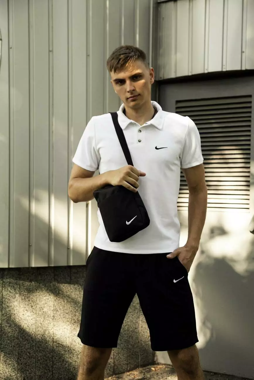 Комплект чоловічий Nike: поло біле + шорти чорні + барсетка чорна