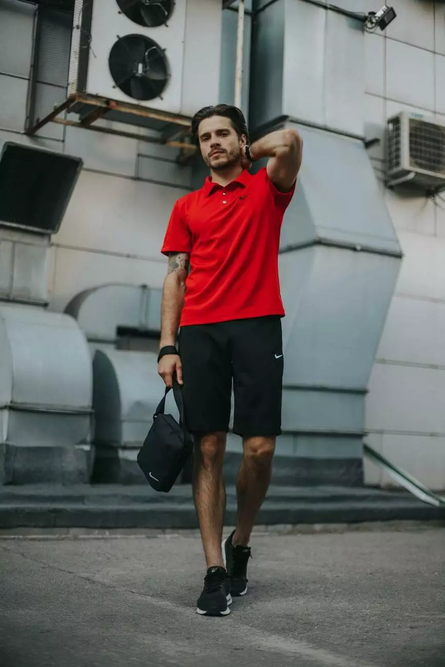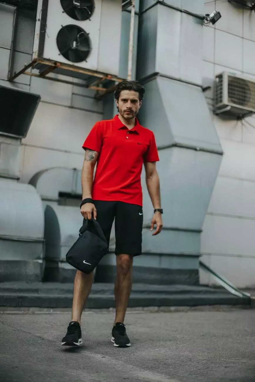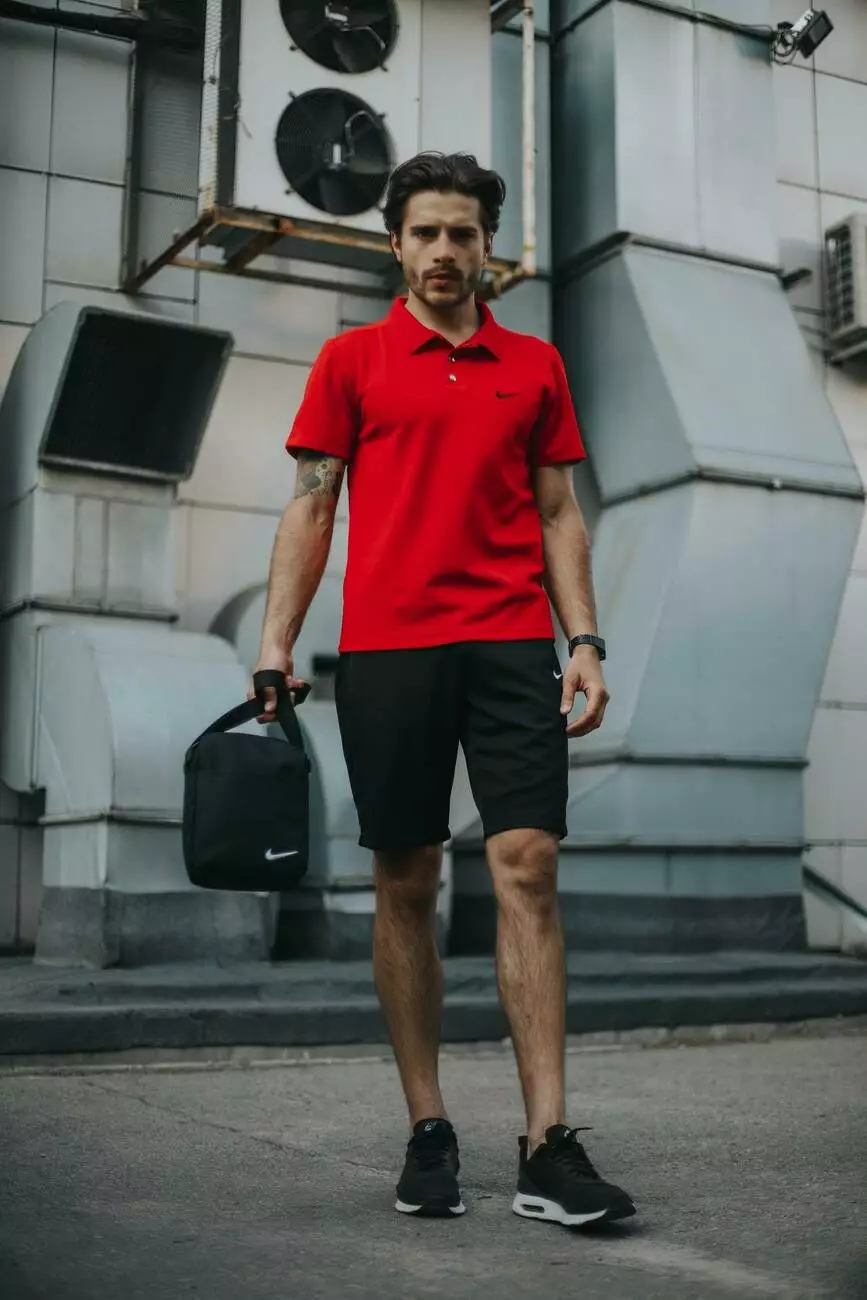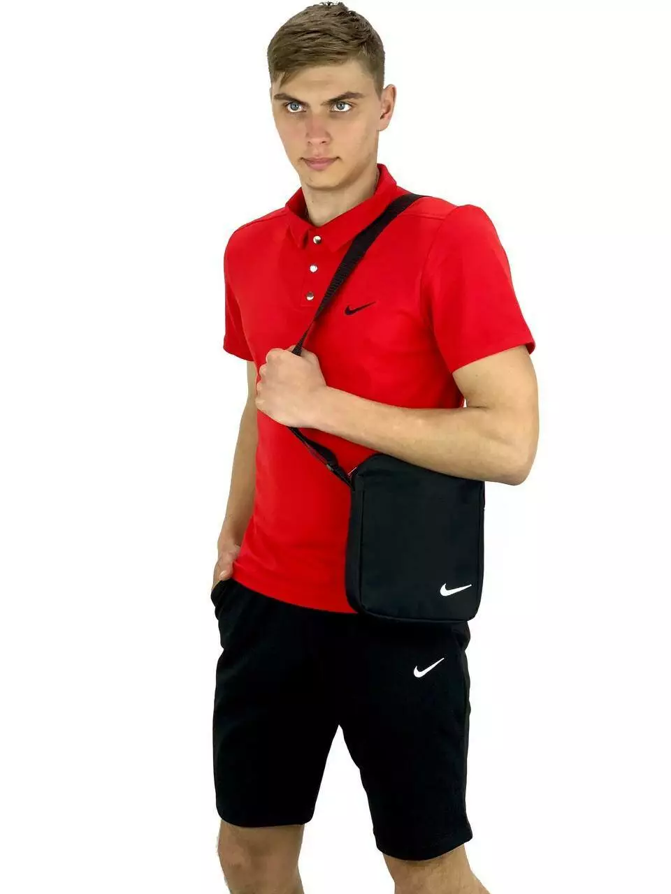 Комплект чоловічий Nike: поло червоне + шорти чорні + барсетка чорна