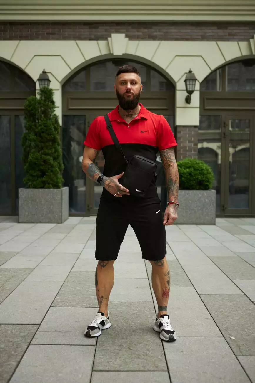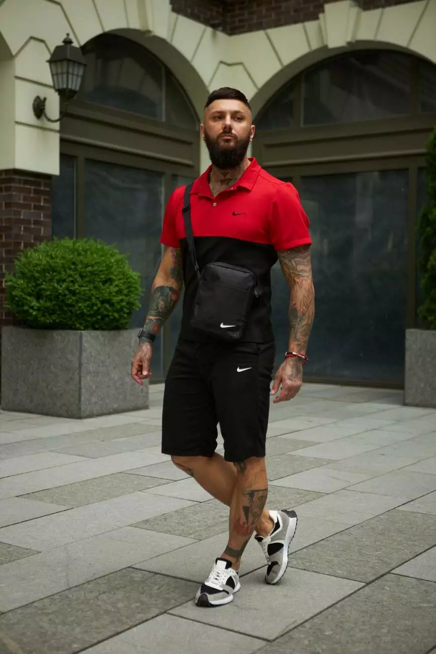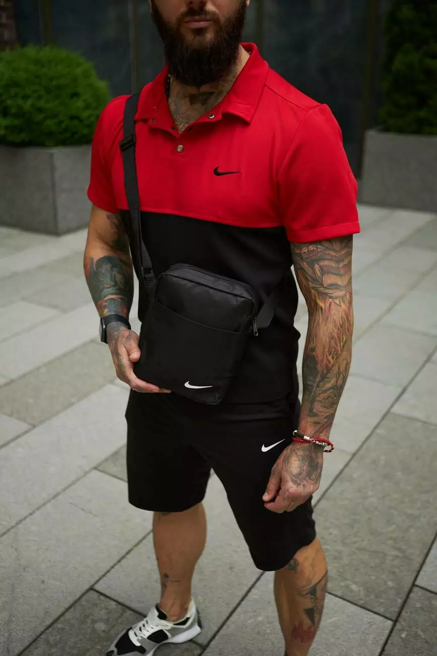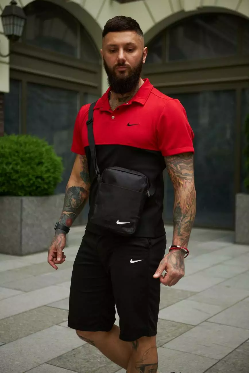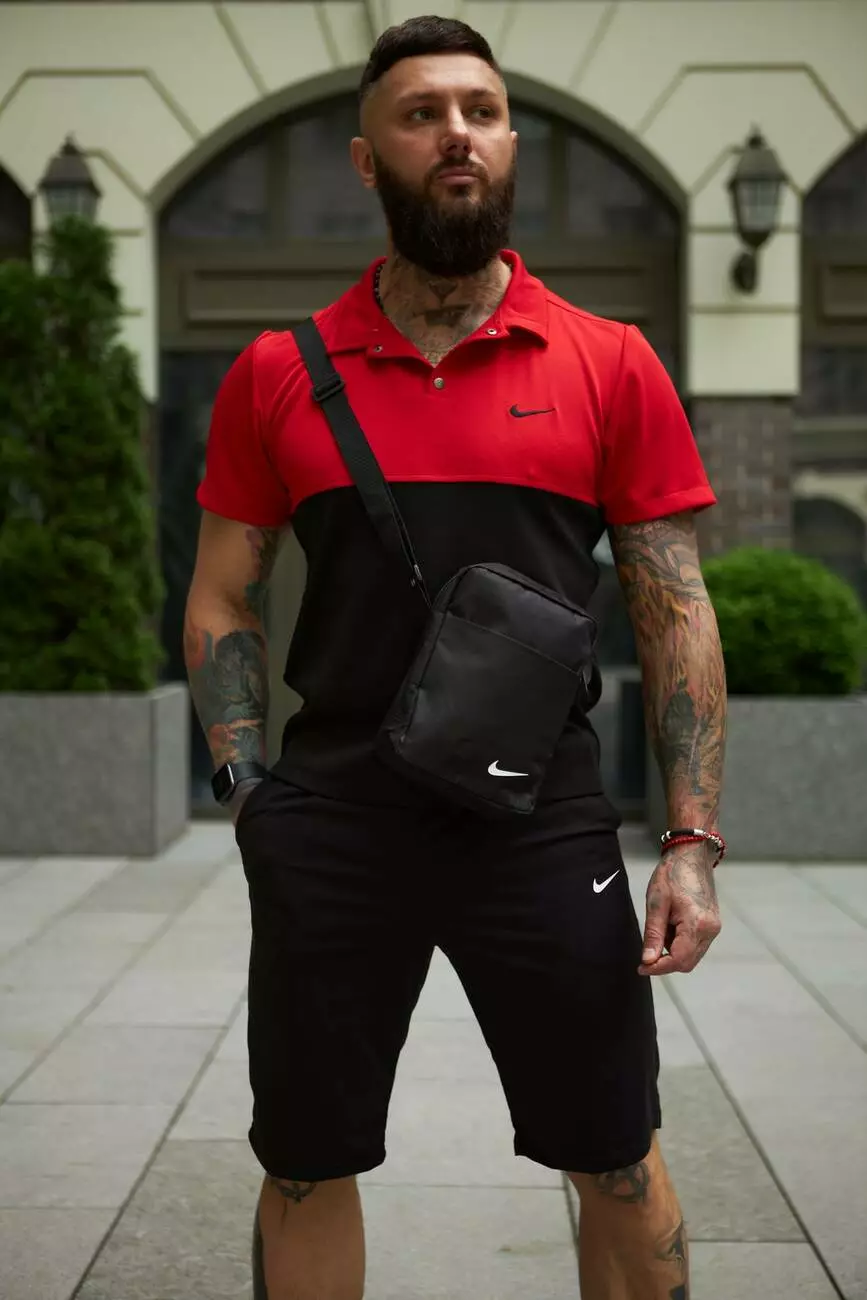 Комплект чоловічий Nike: поло червоно-чорне + шорти чорні + барсетка чорна
