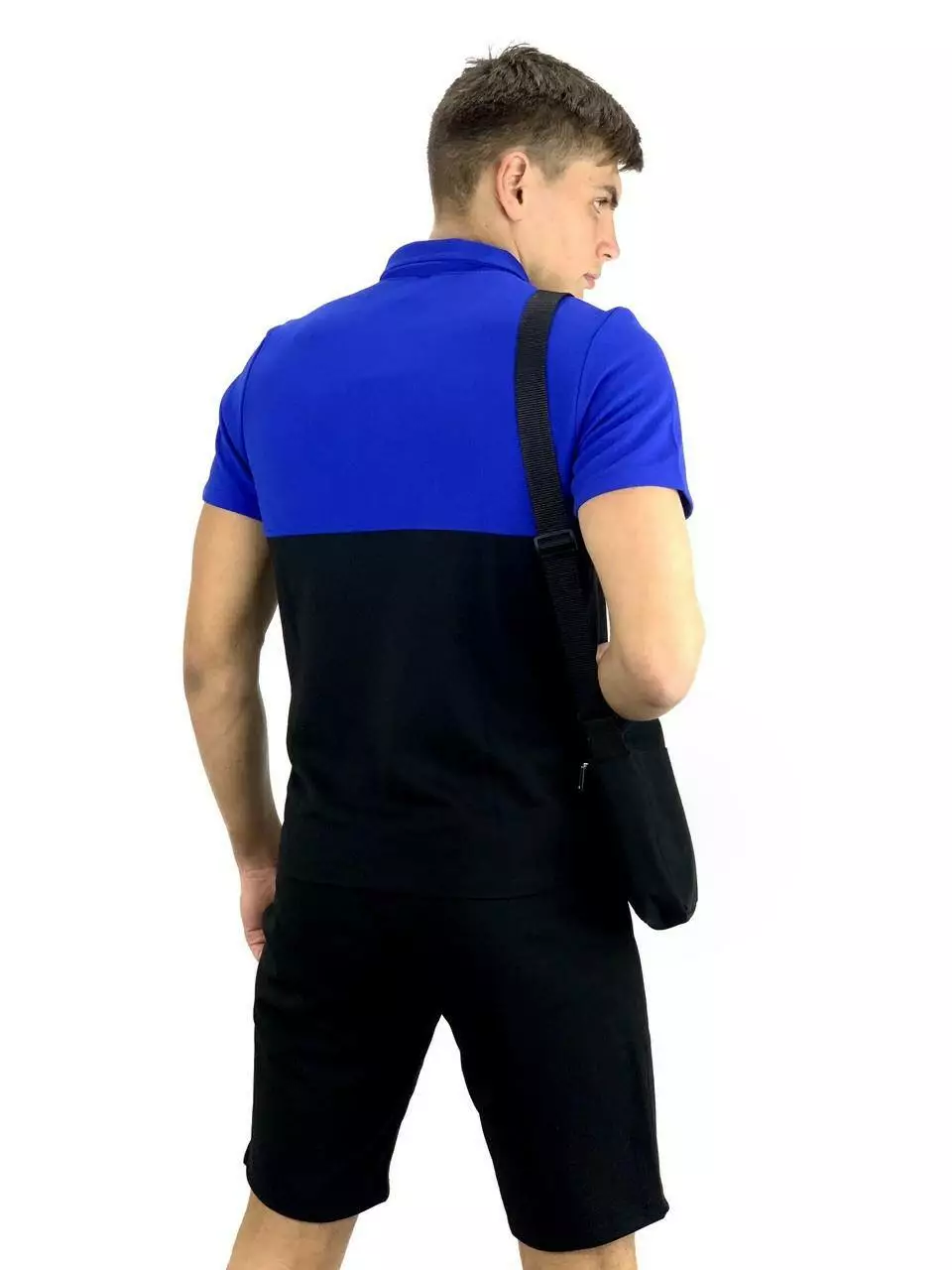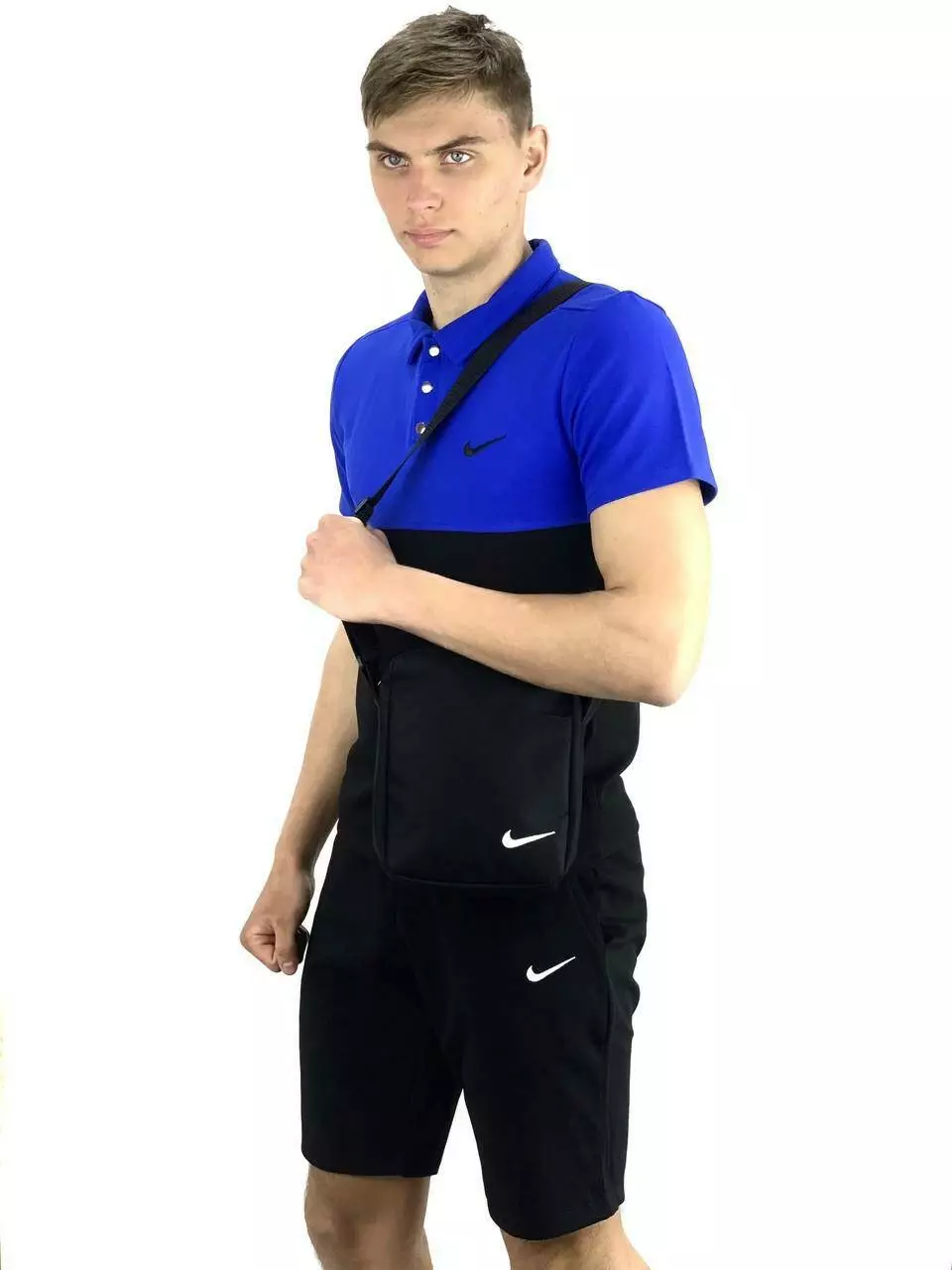 Комплект чоловічий Nike: поло електрик-чорне + шорти чорні + барсетка чорна