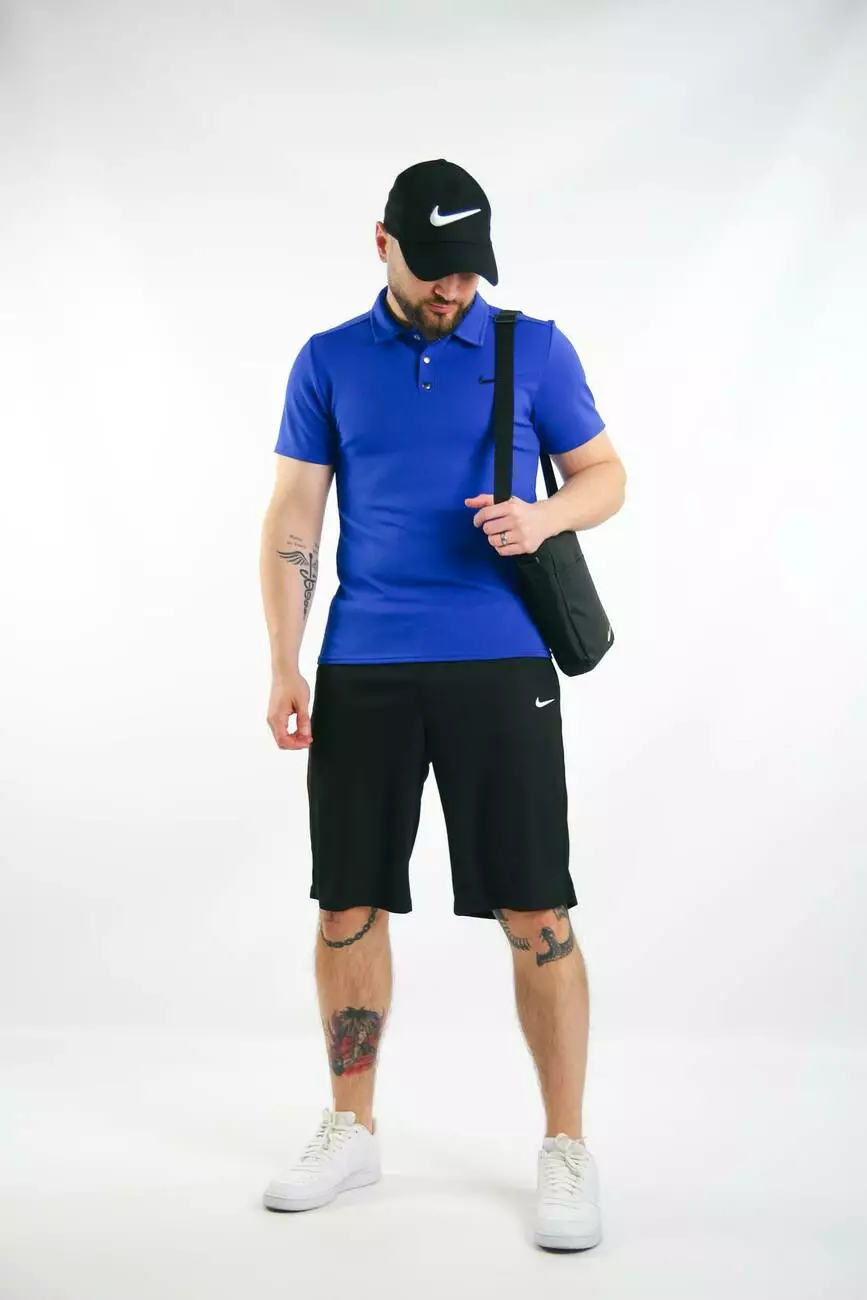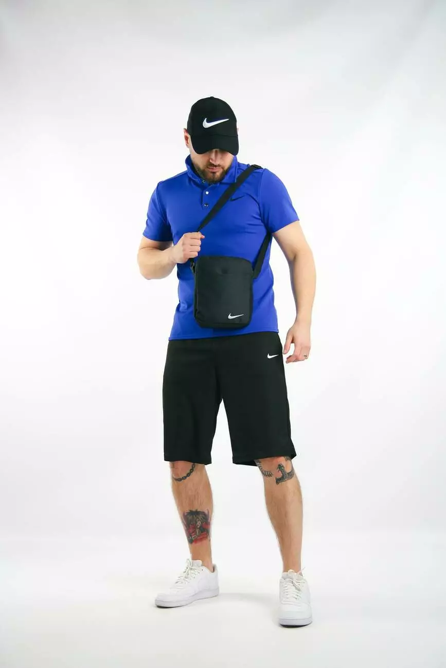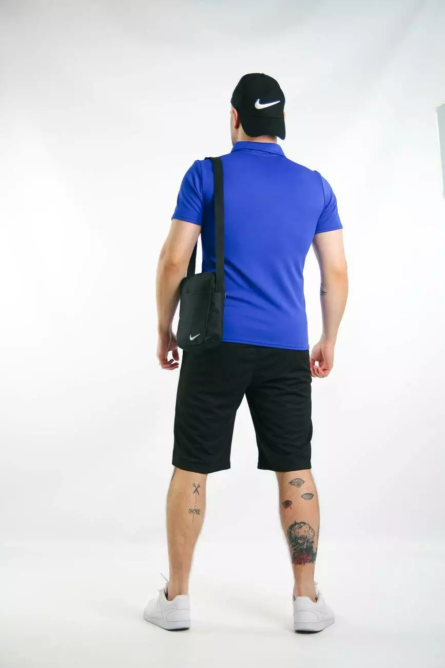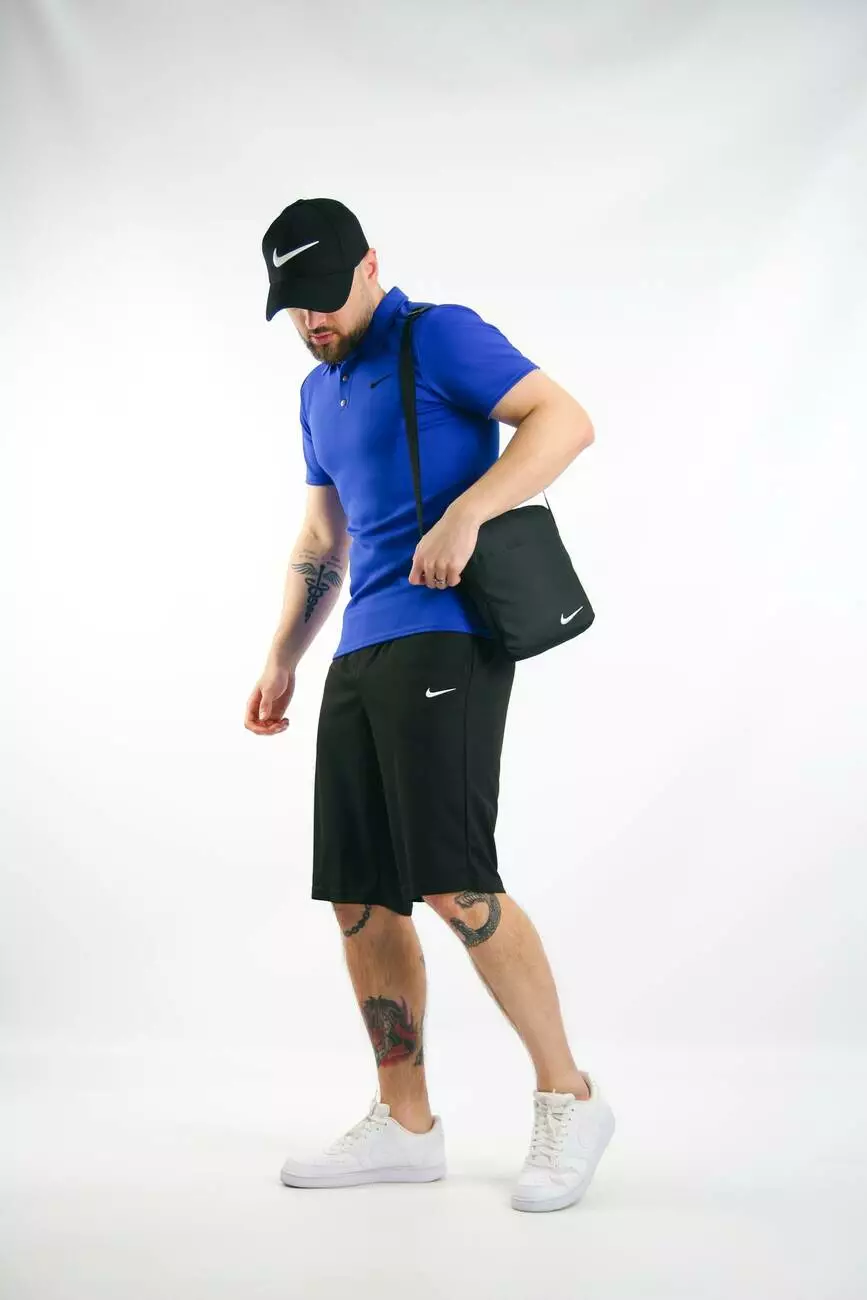 Комплект чоловічий Nike: поло електрик + шорти чорні + барсетка чорна + кепка чорна