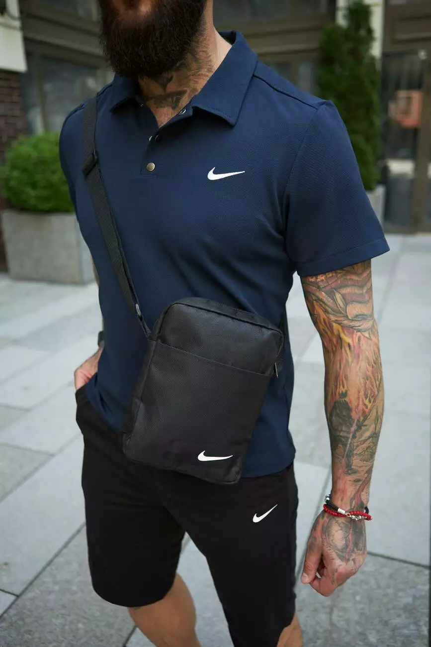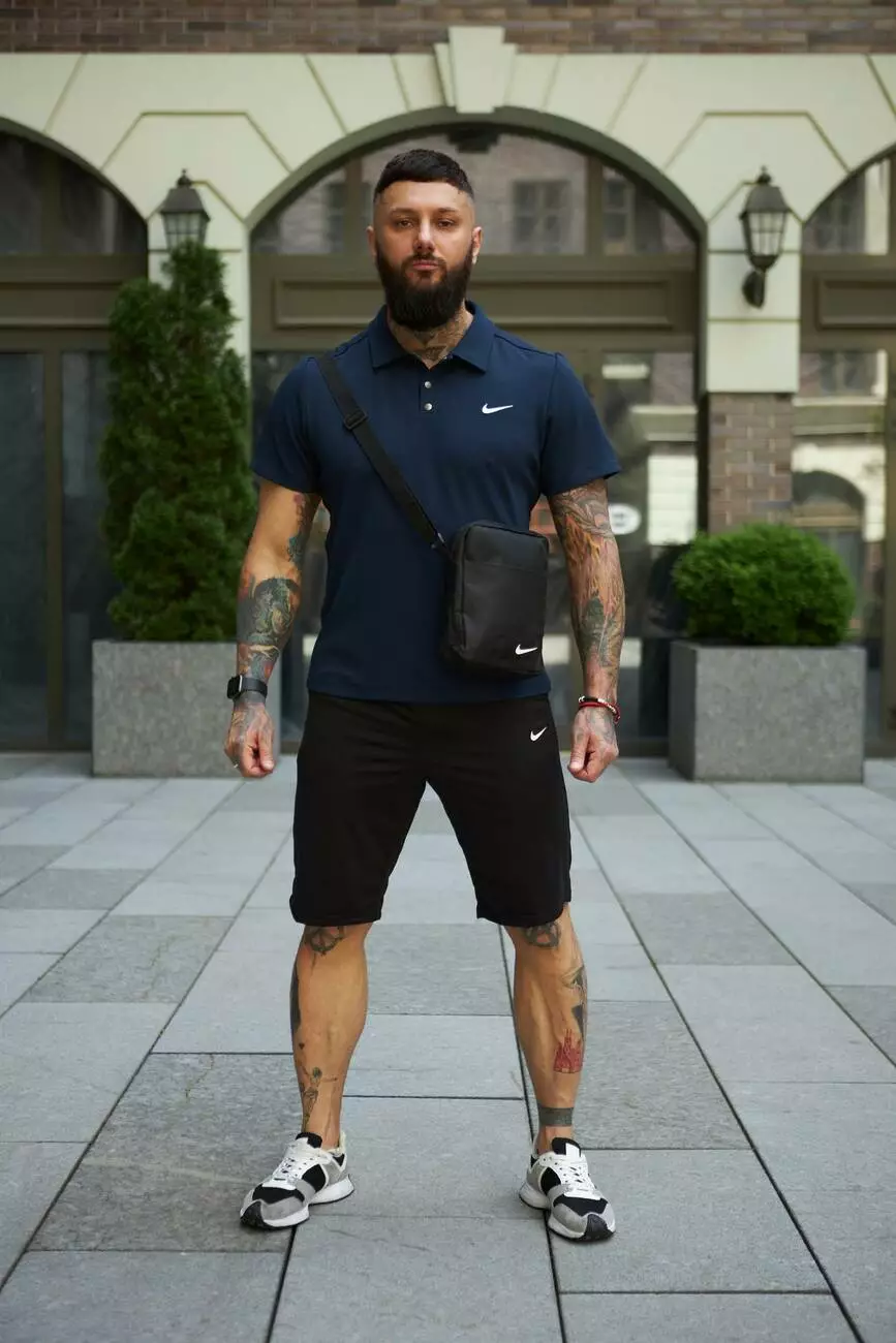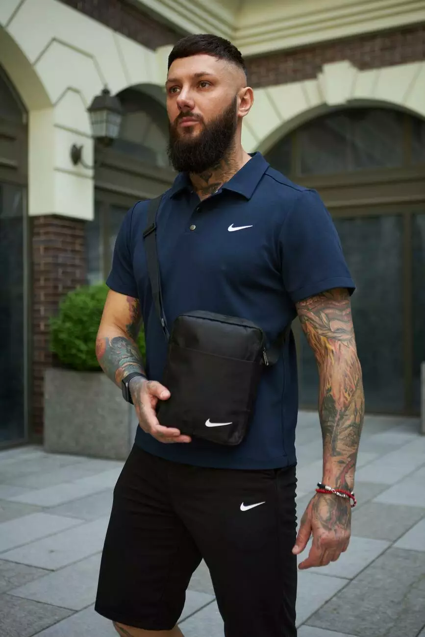 Комплект чоловічий Nike: поло синє + шорти чорні + барсетка чорна
