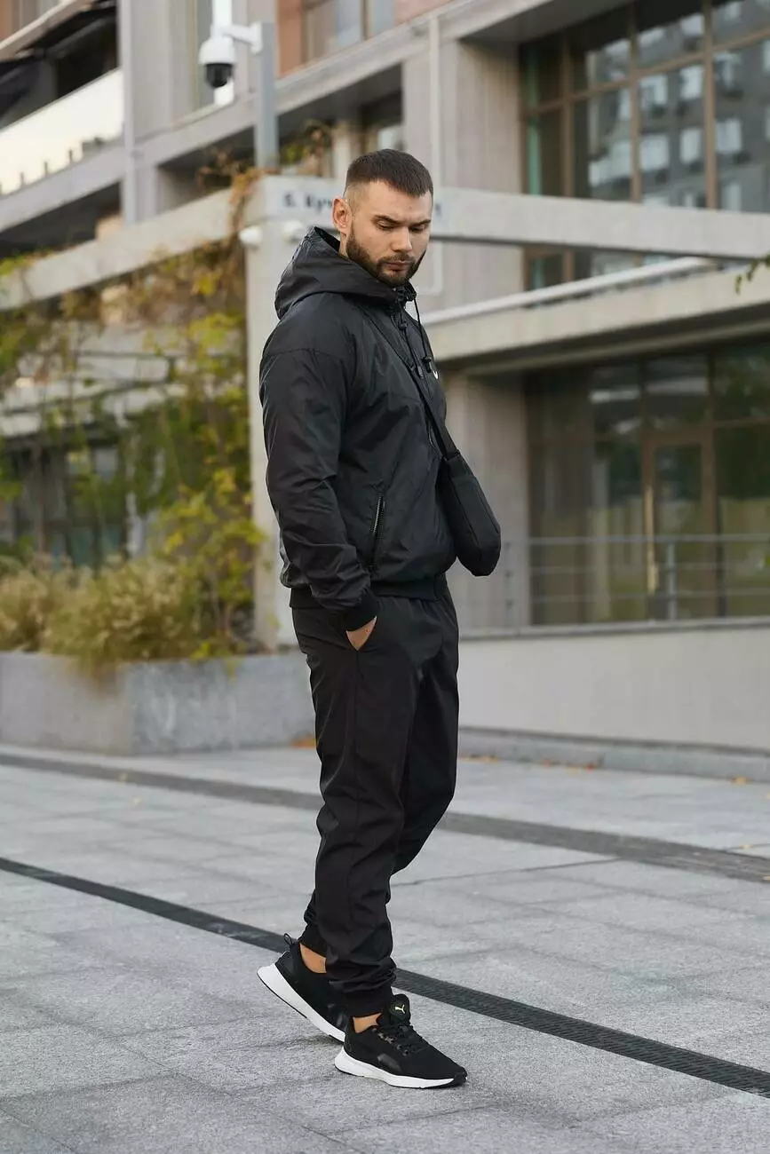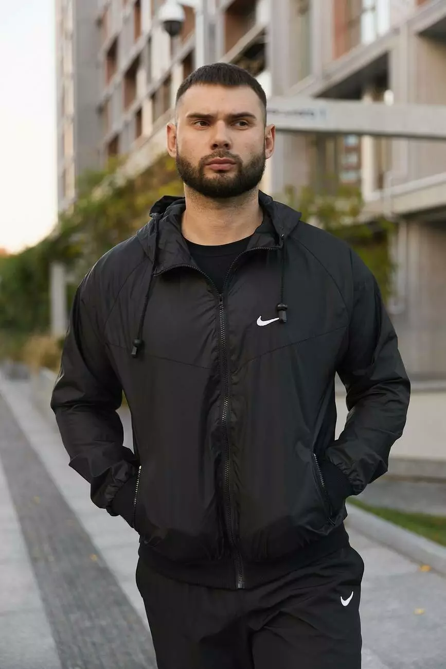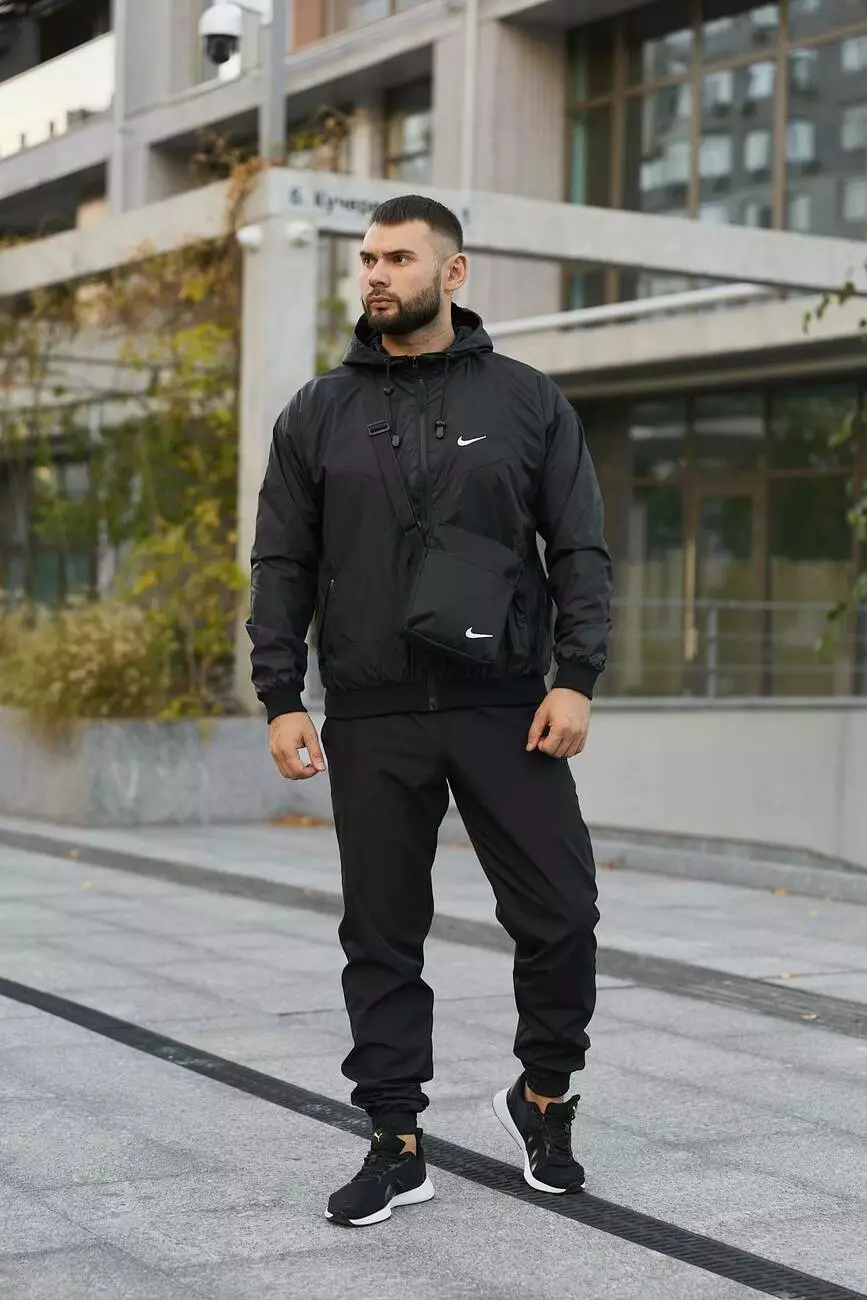 Комплект чоловічий Nike: вітровка "Windrunner Jacket" чорна + штани "President" чорні. БАРСЕТКА У ПОДАРУНОК!
