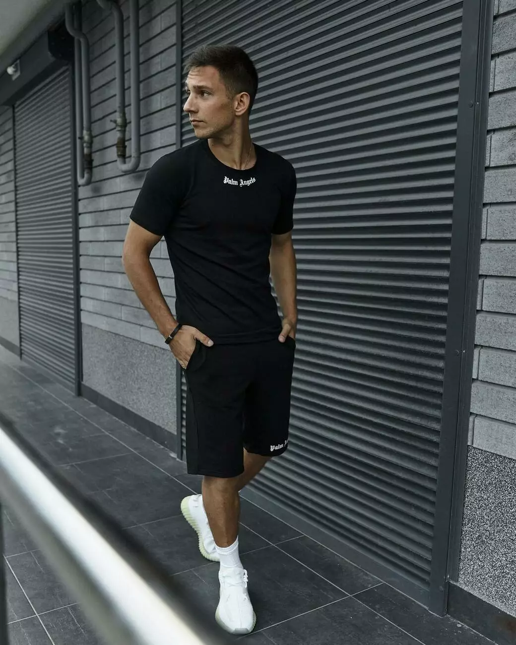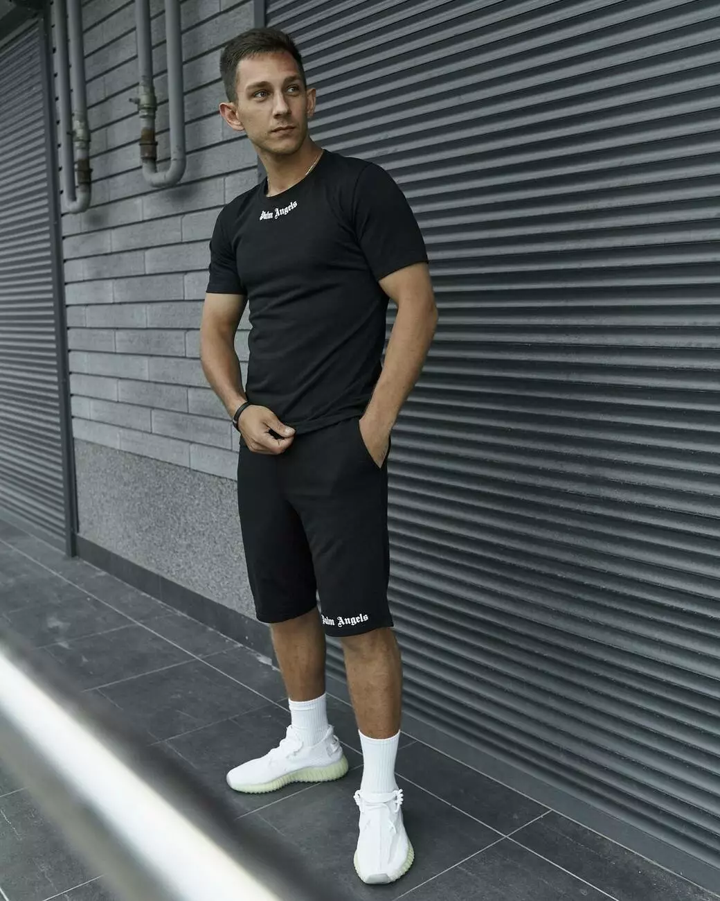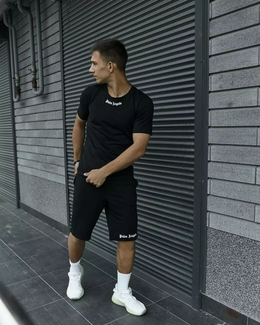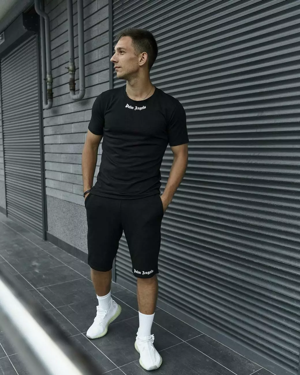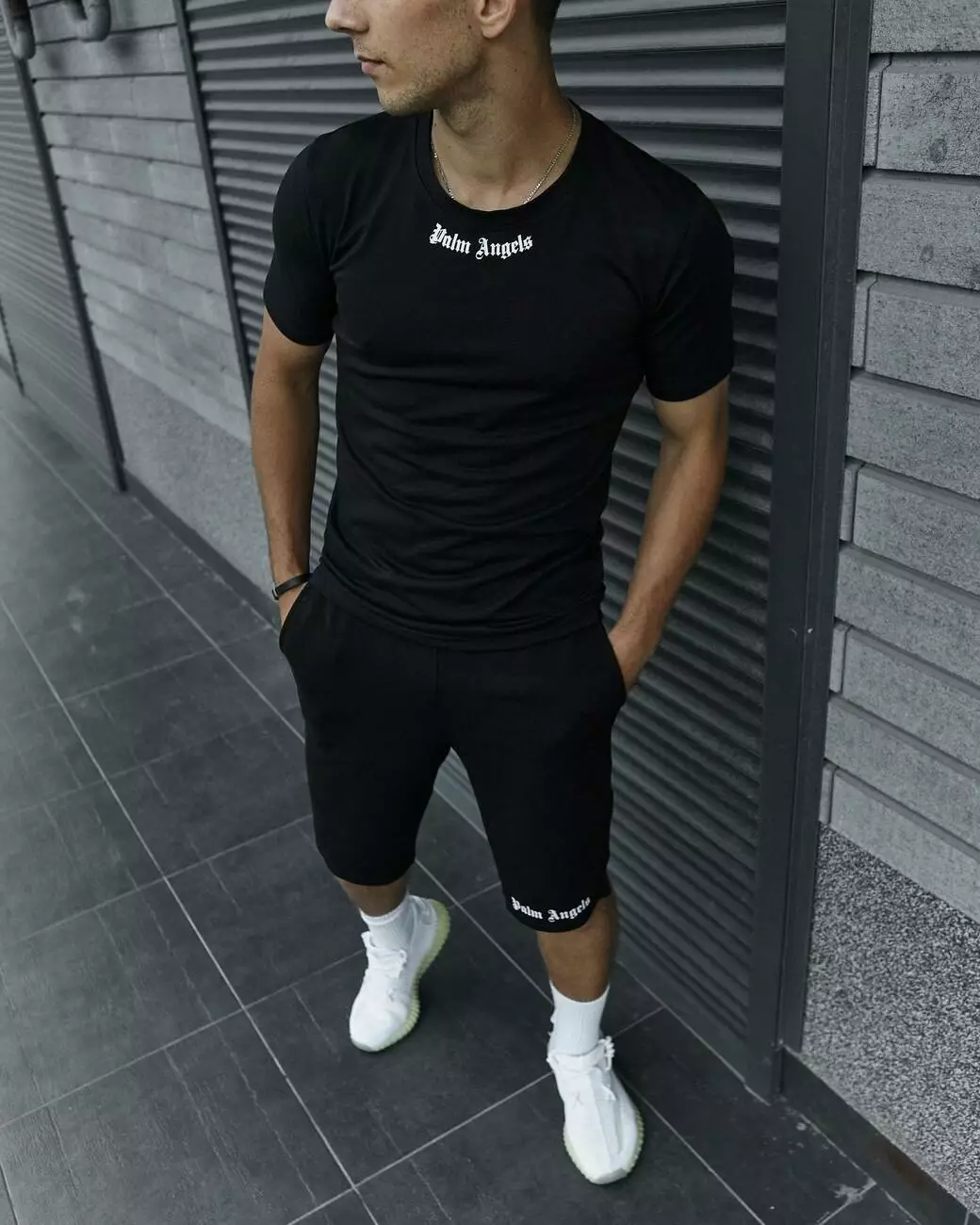 Комплект чоловічий Palm Angels: футболка чорна + шорти чорні