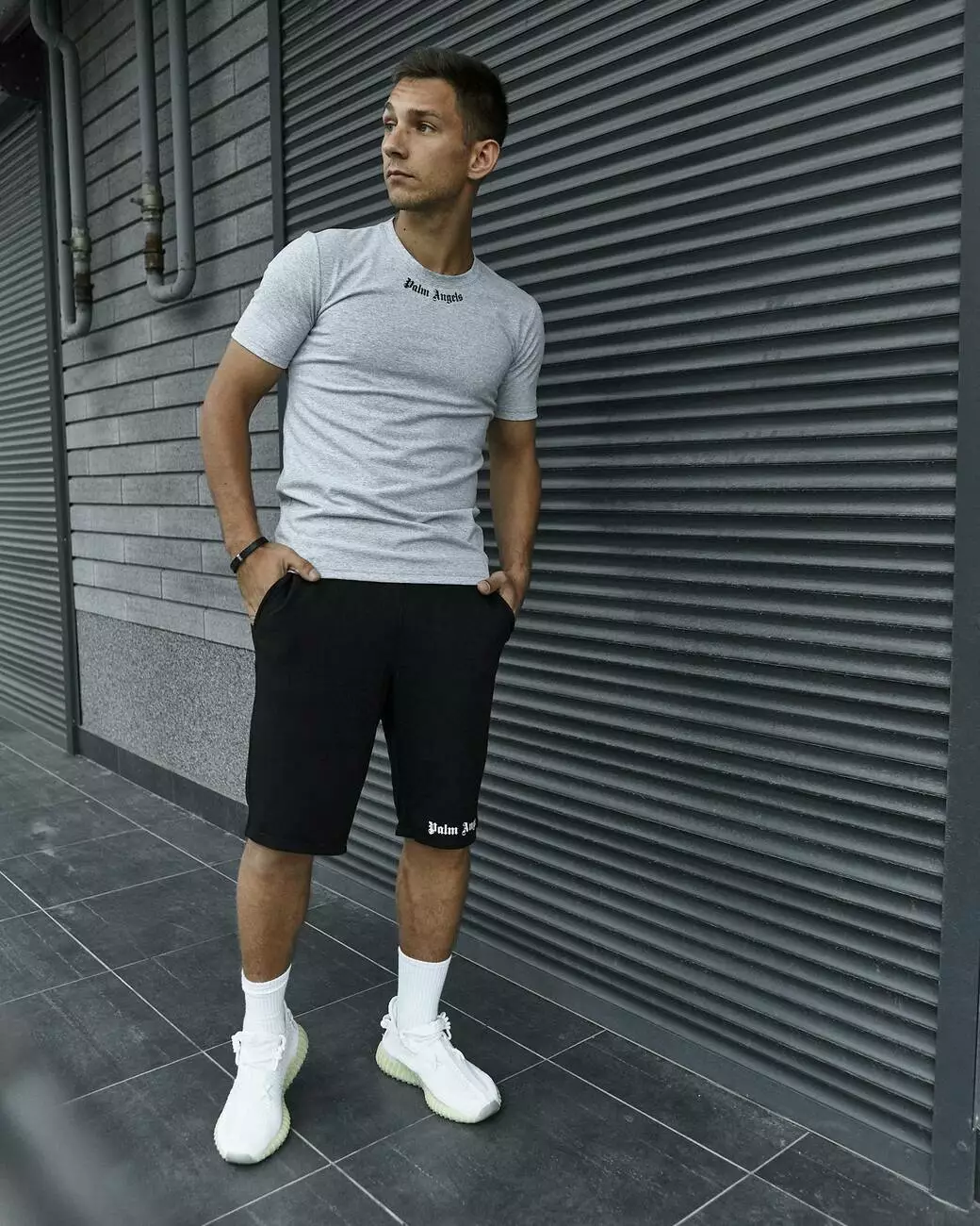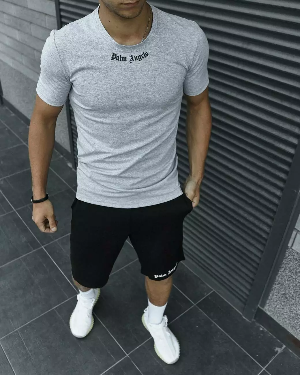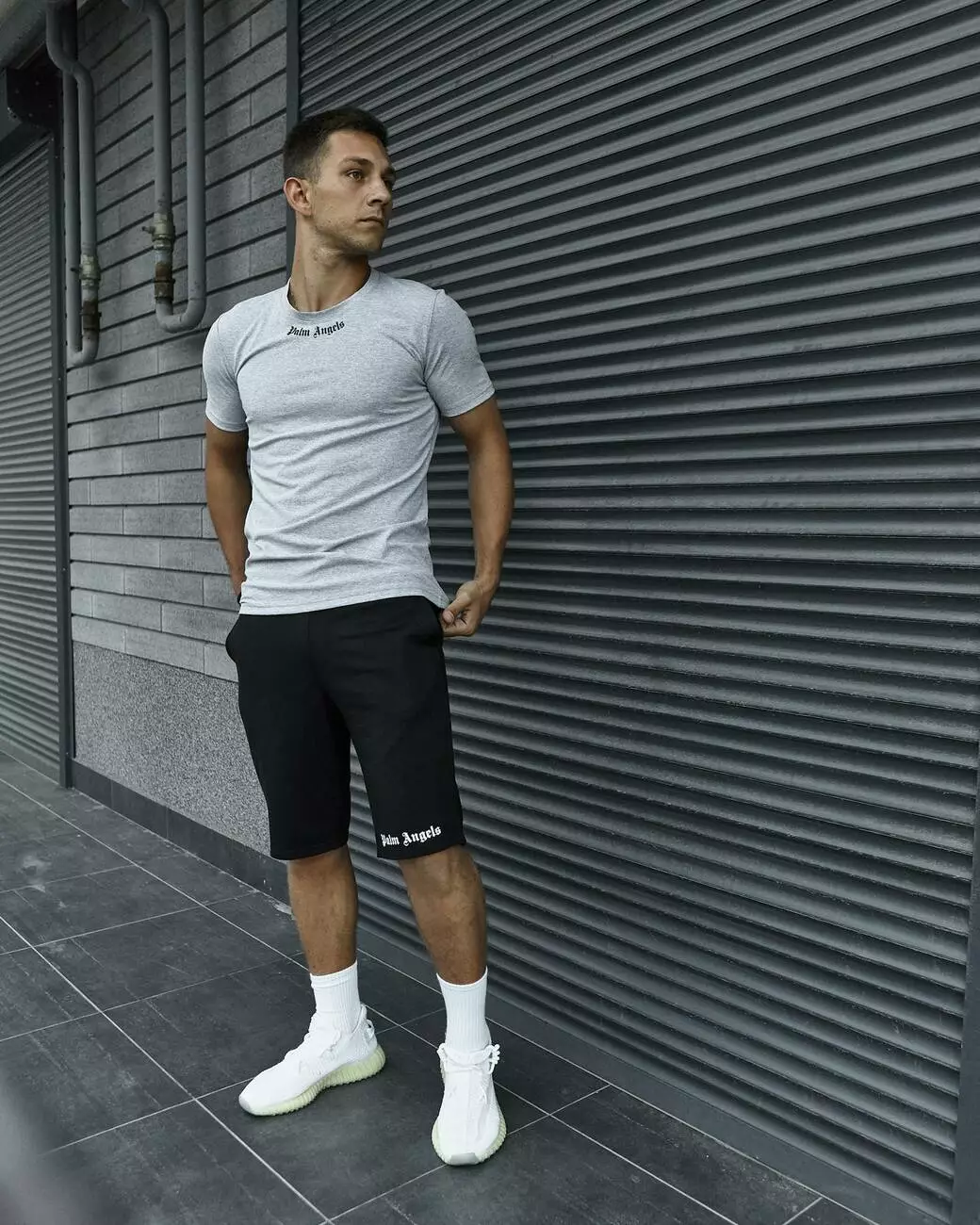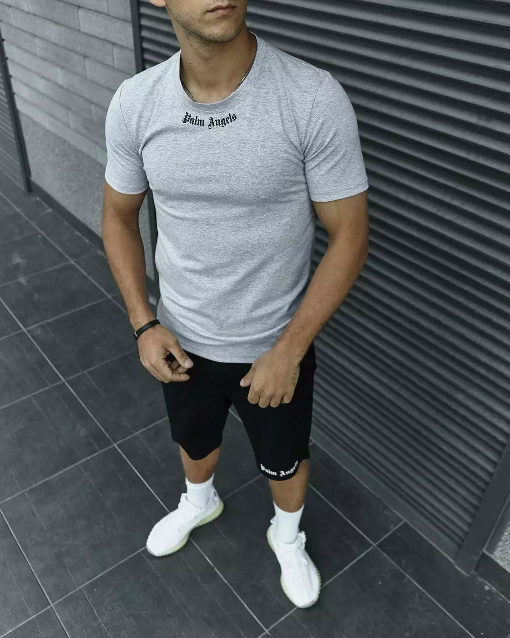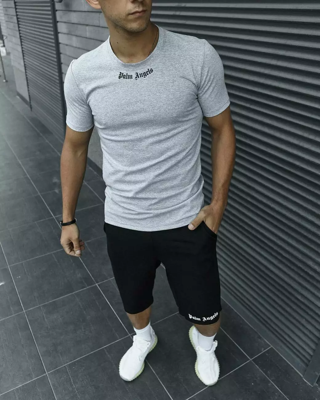 Комплект чоловічий Palm Angels: футболка сіра + шорти чорні