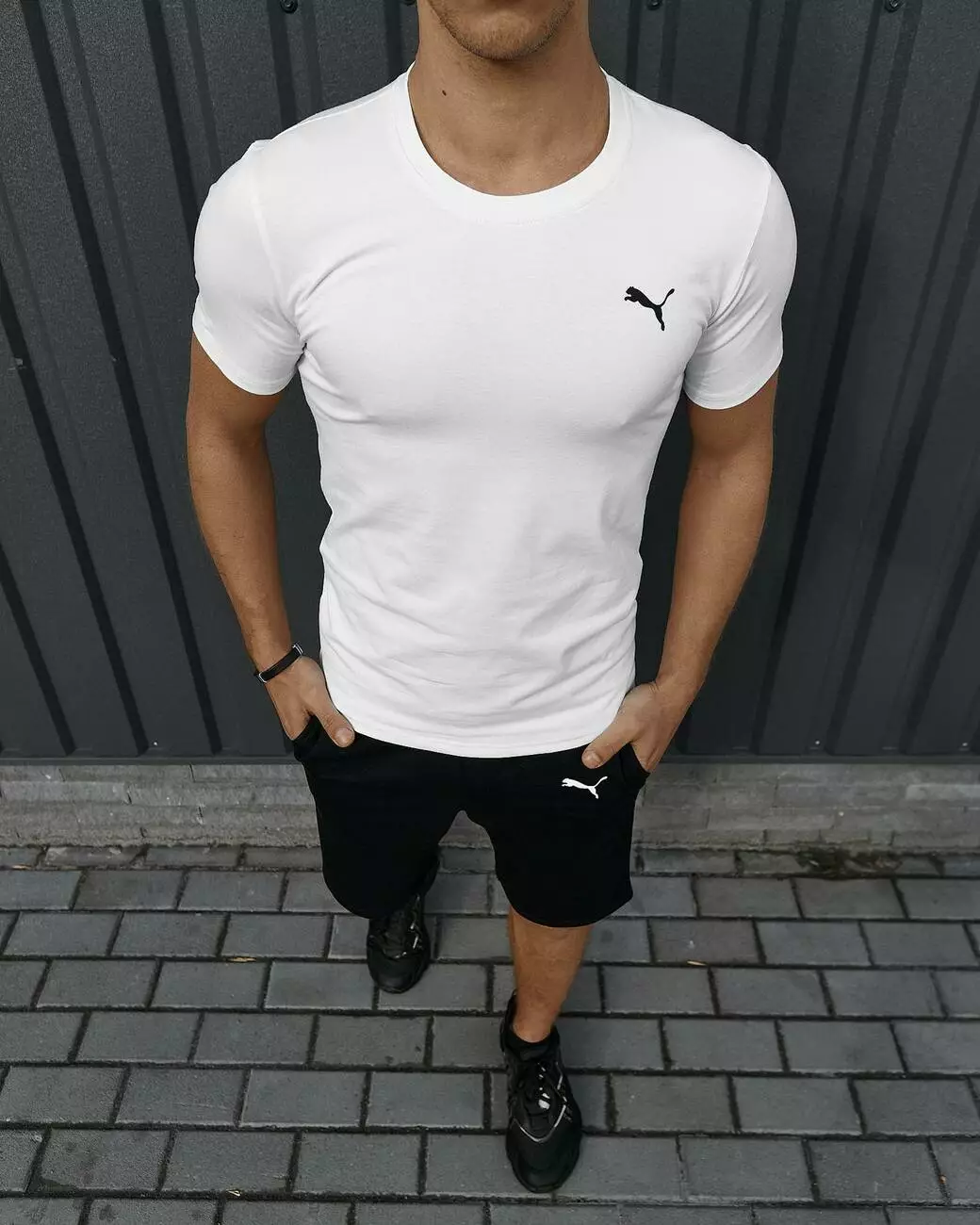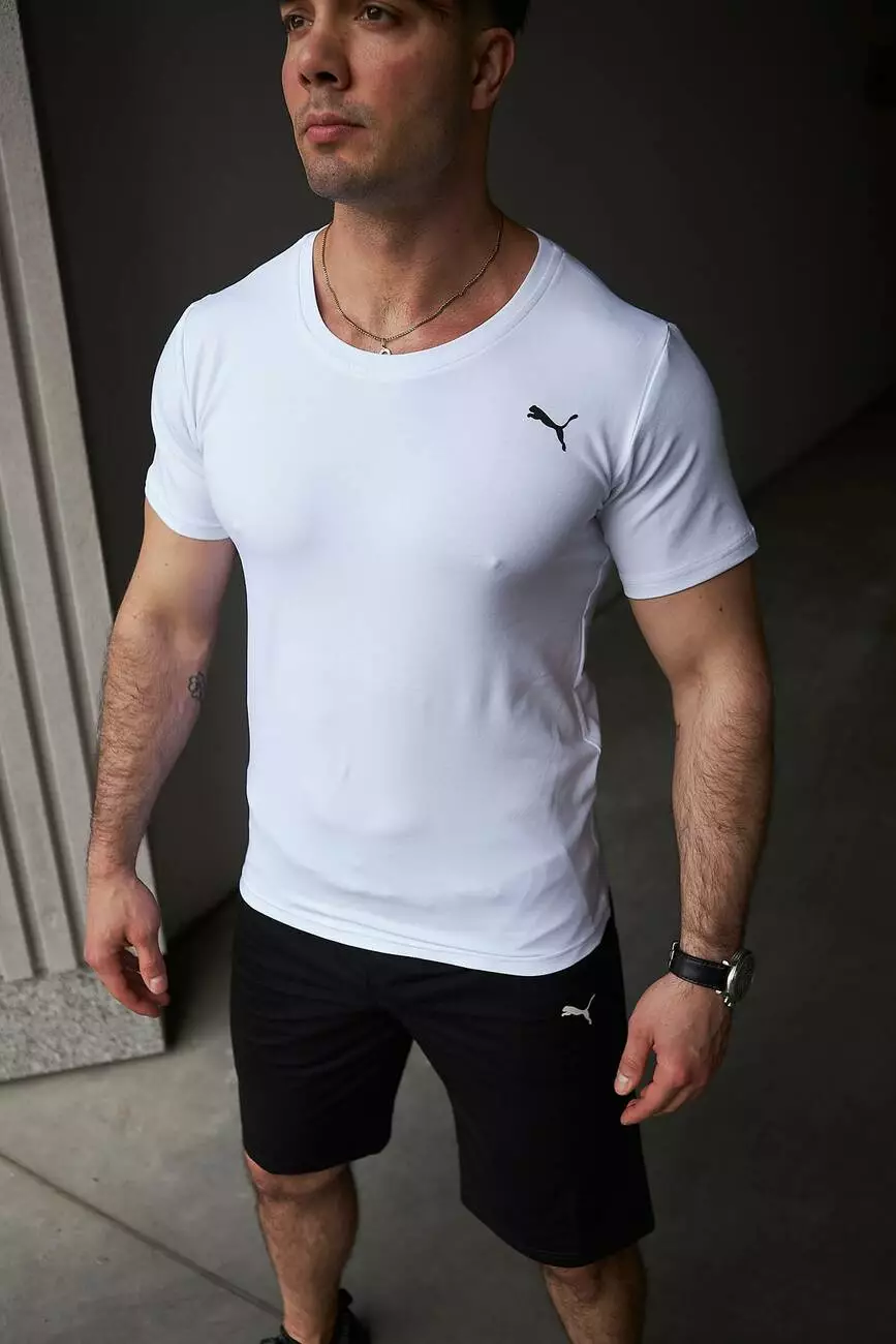 Комплект чоловічий Puma: футболка біла + шорти чорні