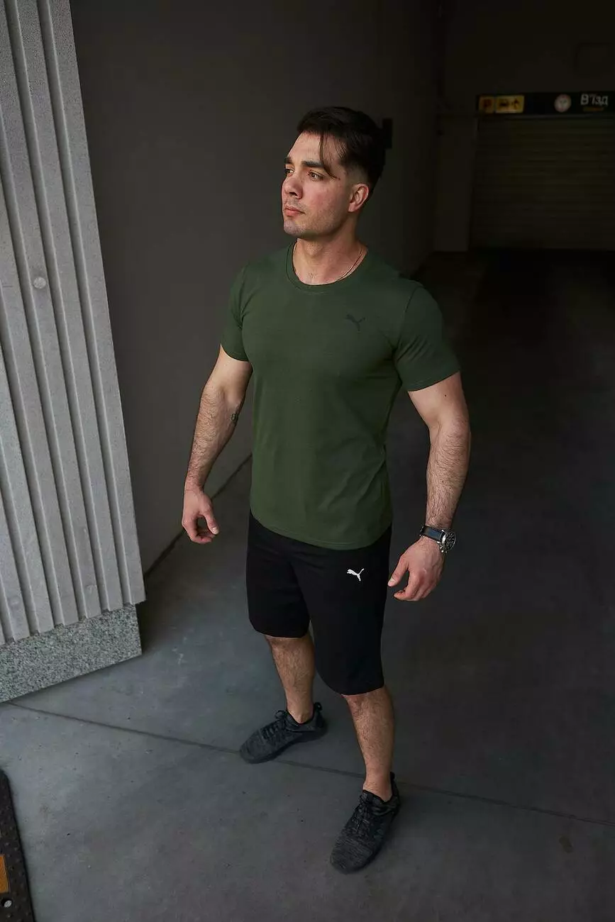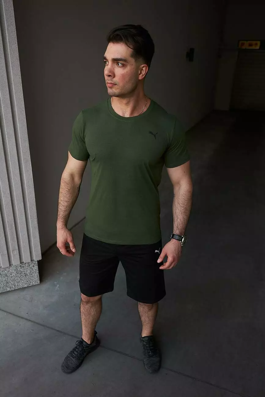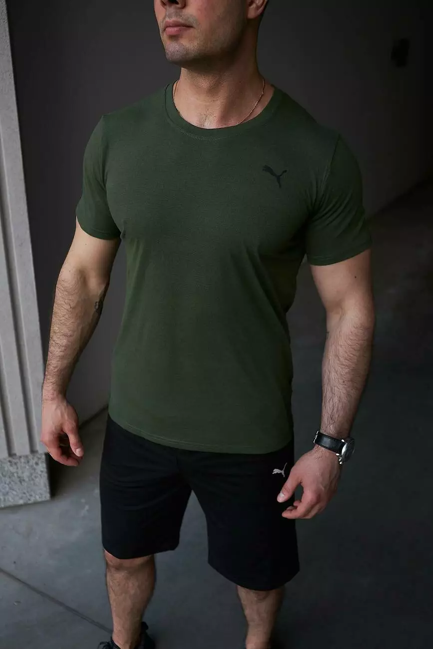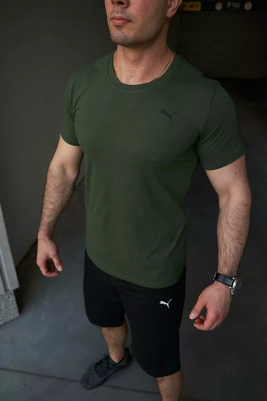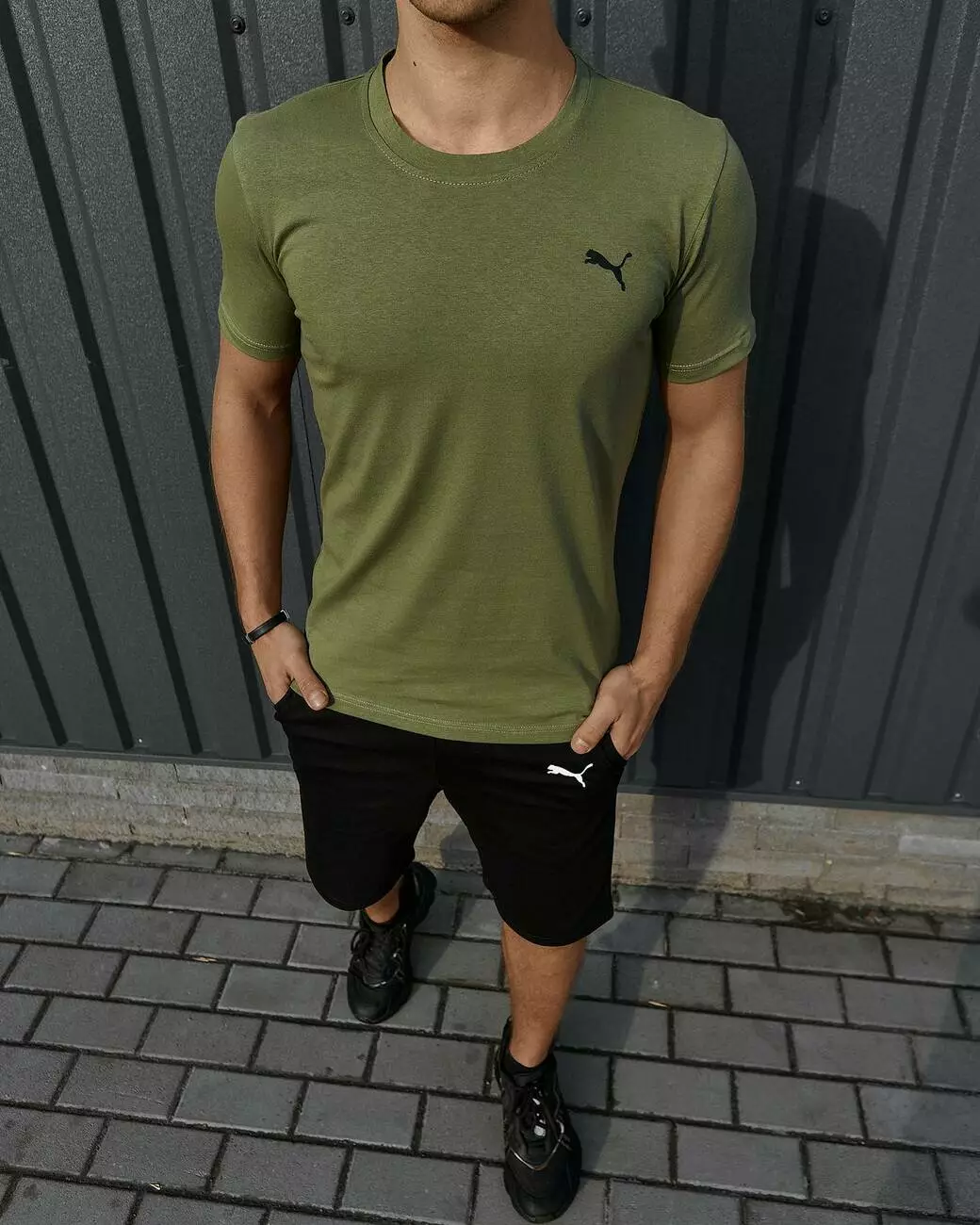 Комплект чоловічий Puma: футболка хакі + шорти чорні
