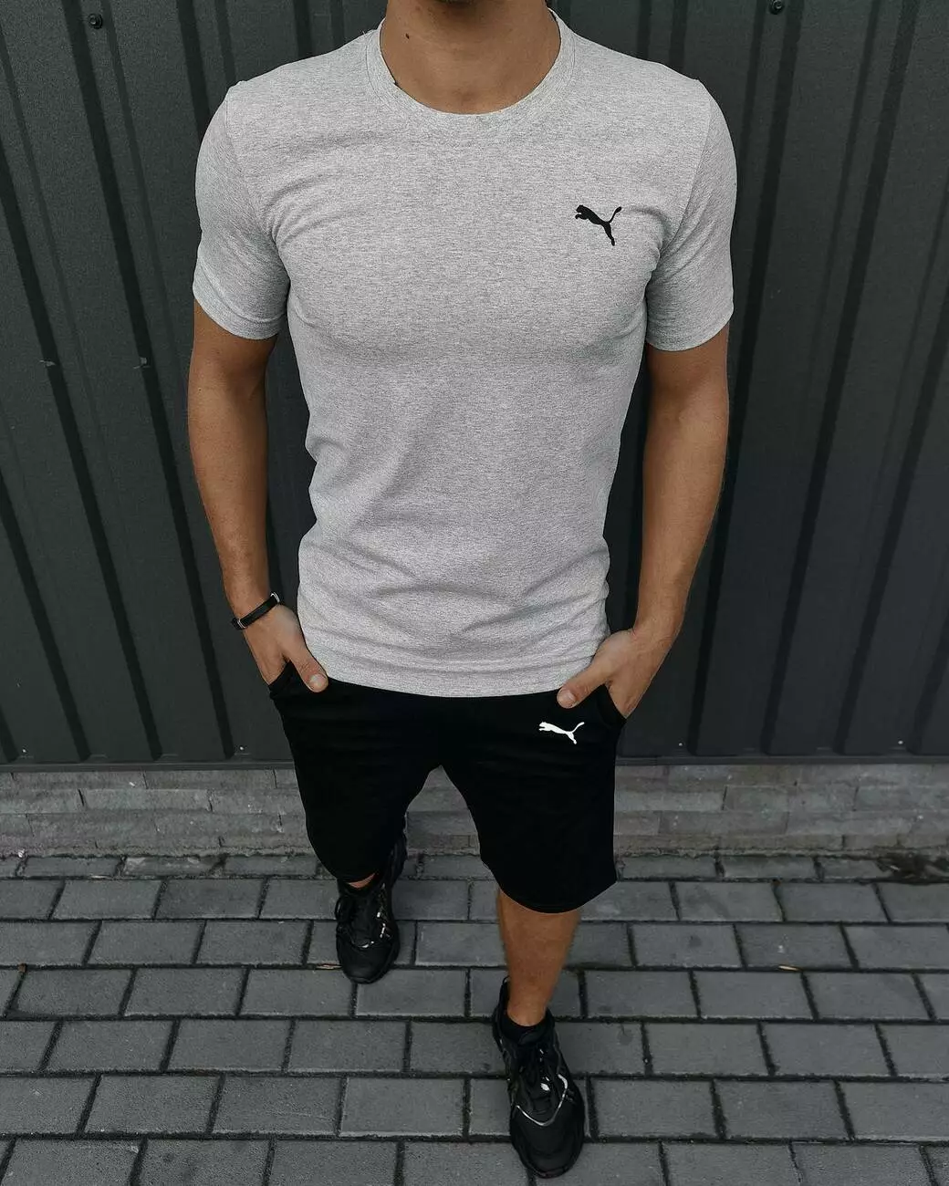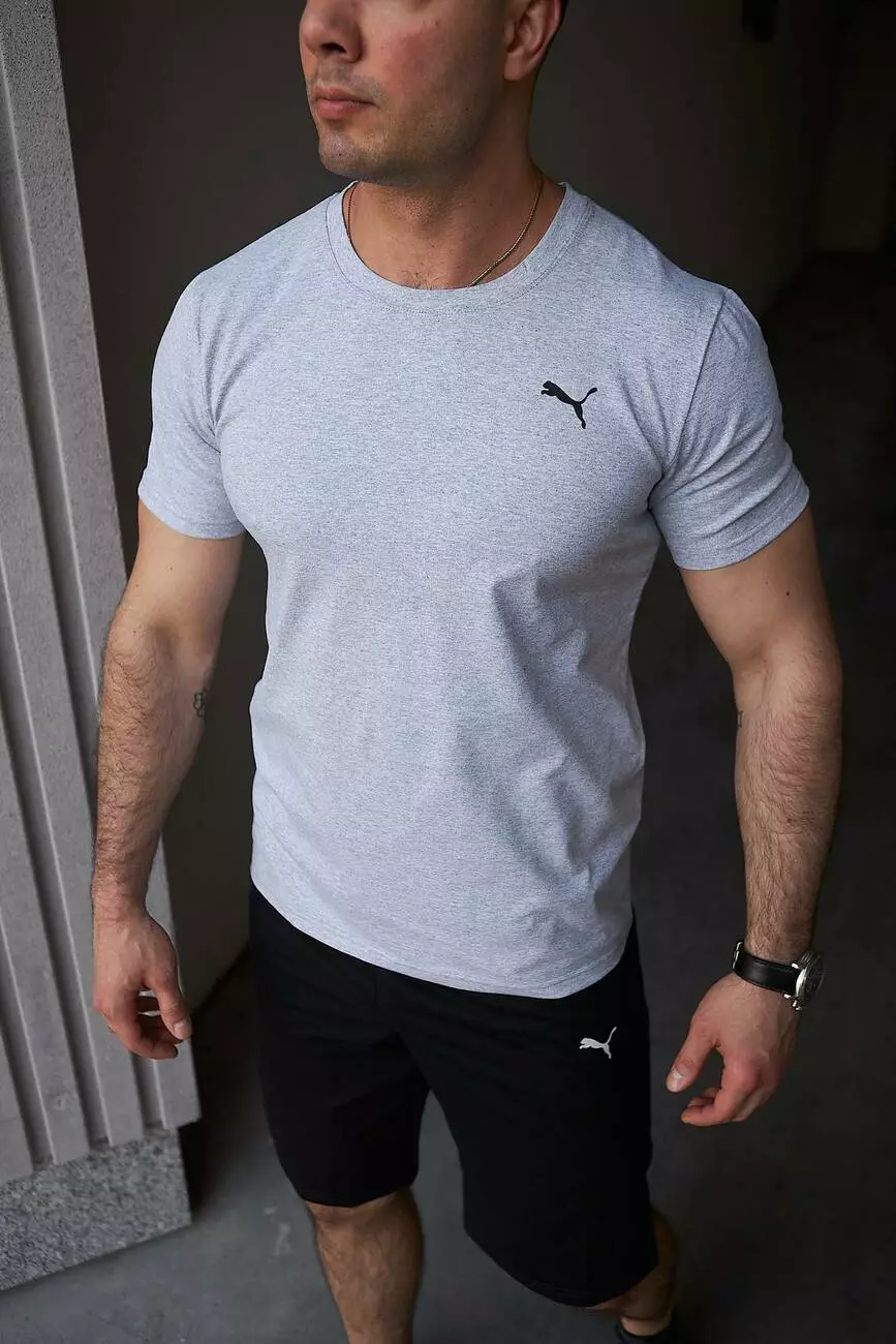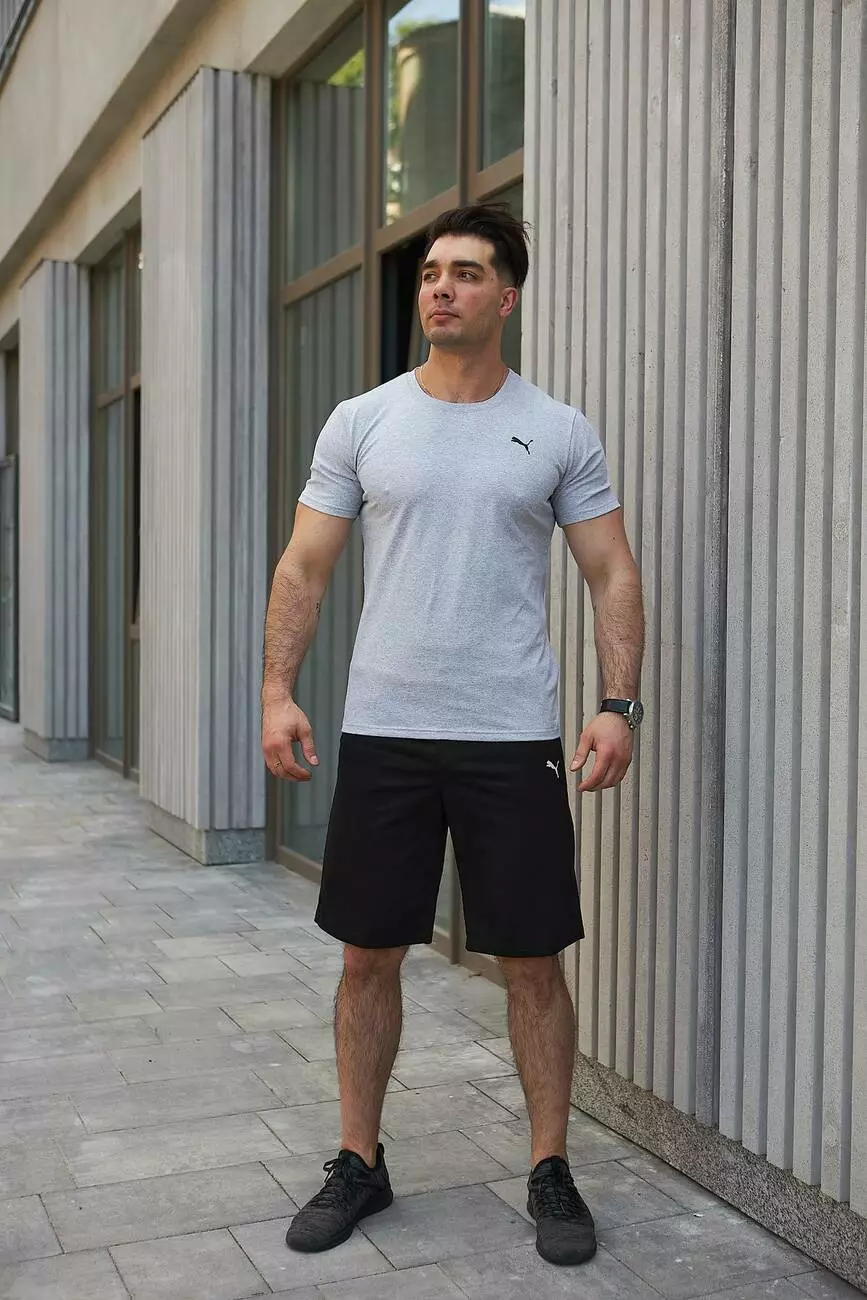 Комплект чоловічий Puma: футболка сіра + шорти чорні