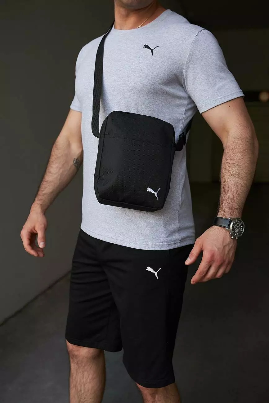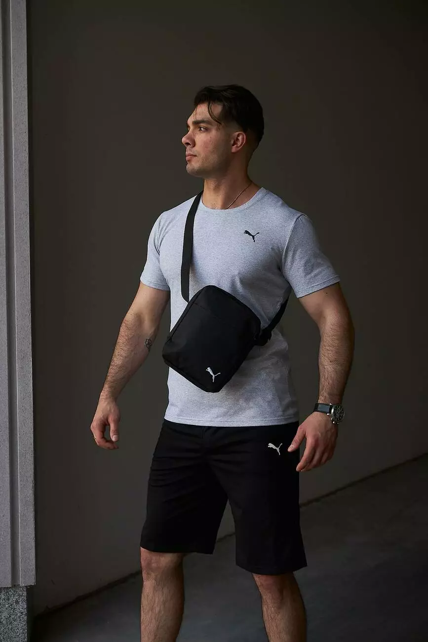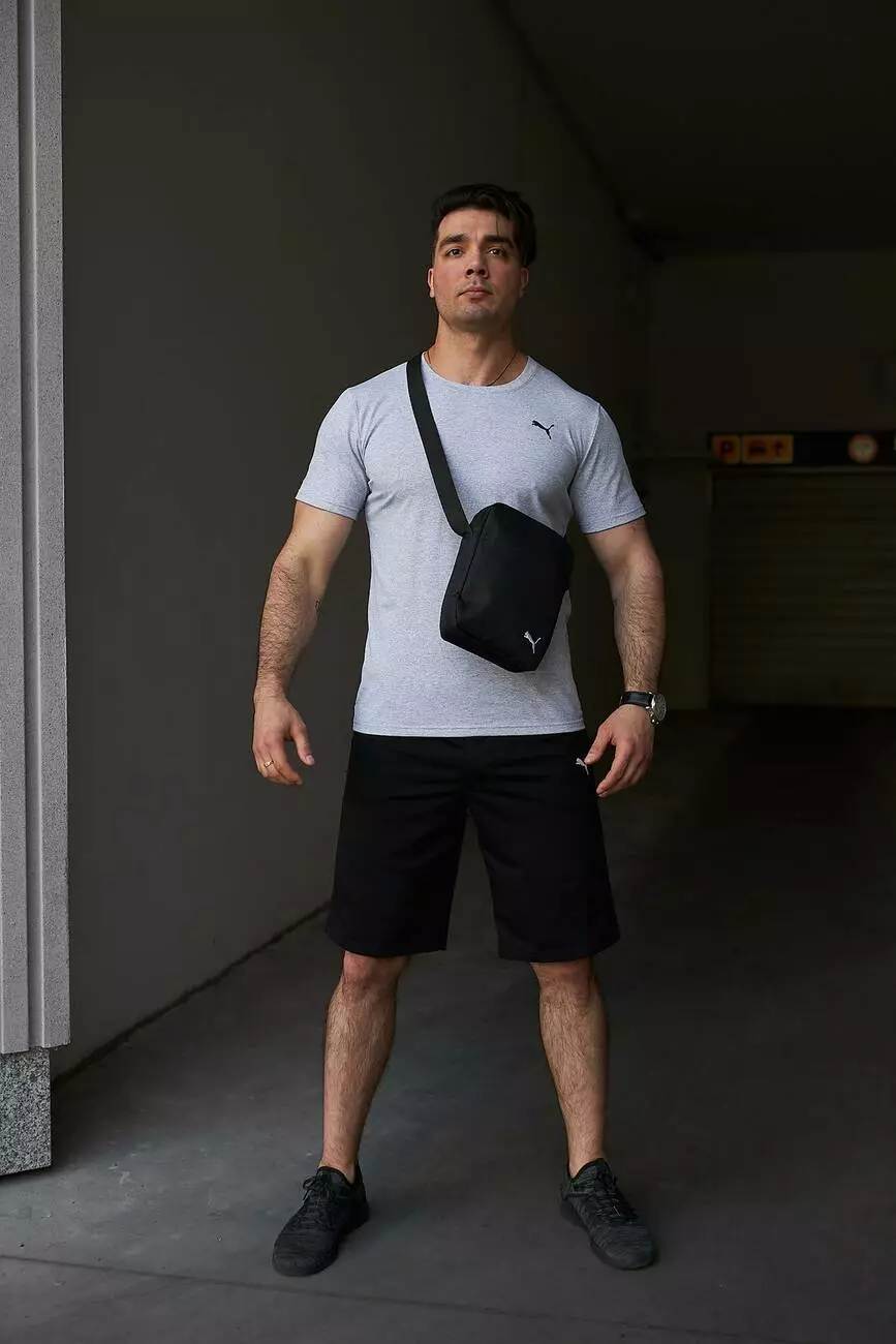 Комплект чоловічий Puma: футболка сіра + шорти чорні + барсетка чорна