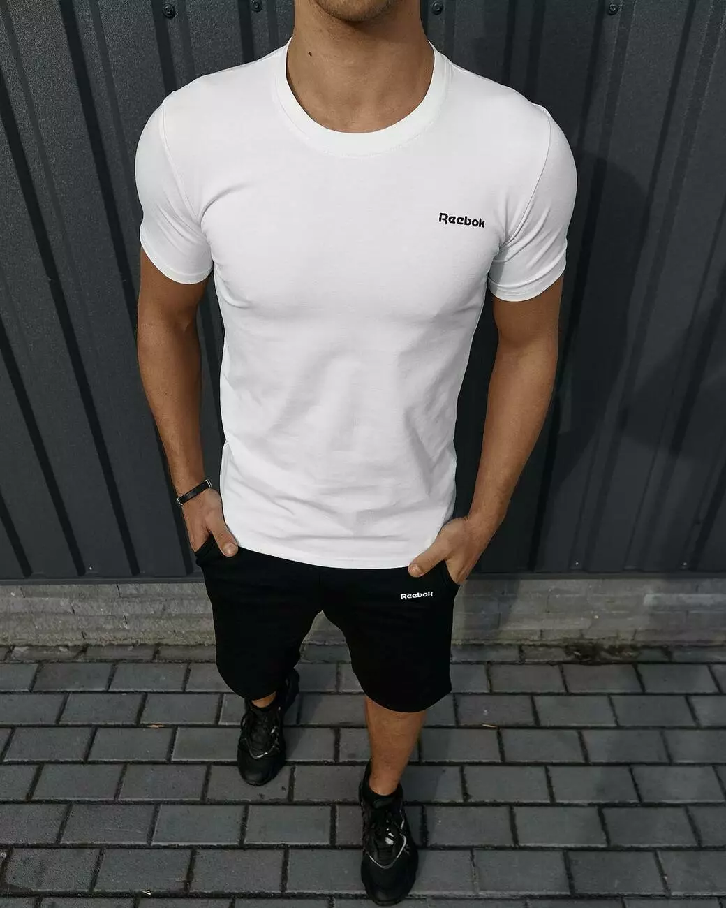 Комплект чоловічий Reebok: футболка біла + шорти чорні