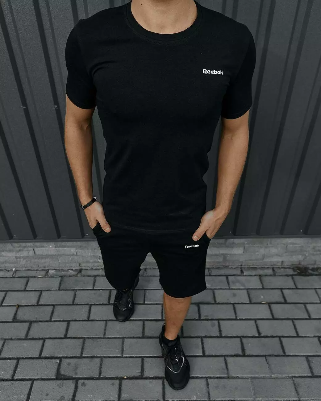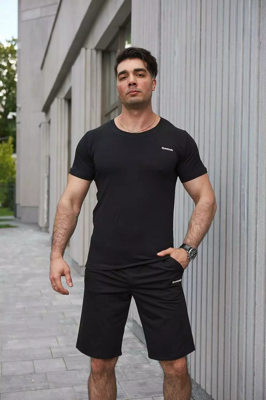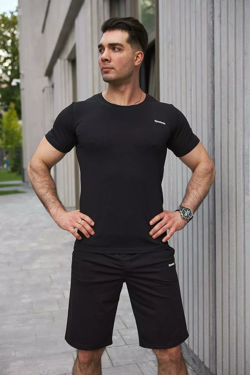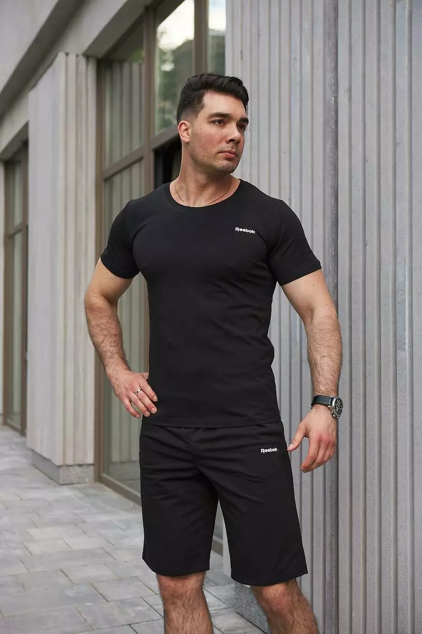 Комплект чоловічий Reebok: футболка чорна + шорти чорні