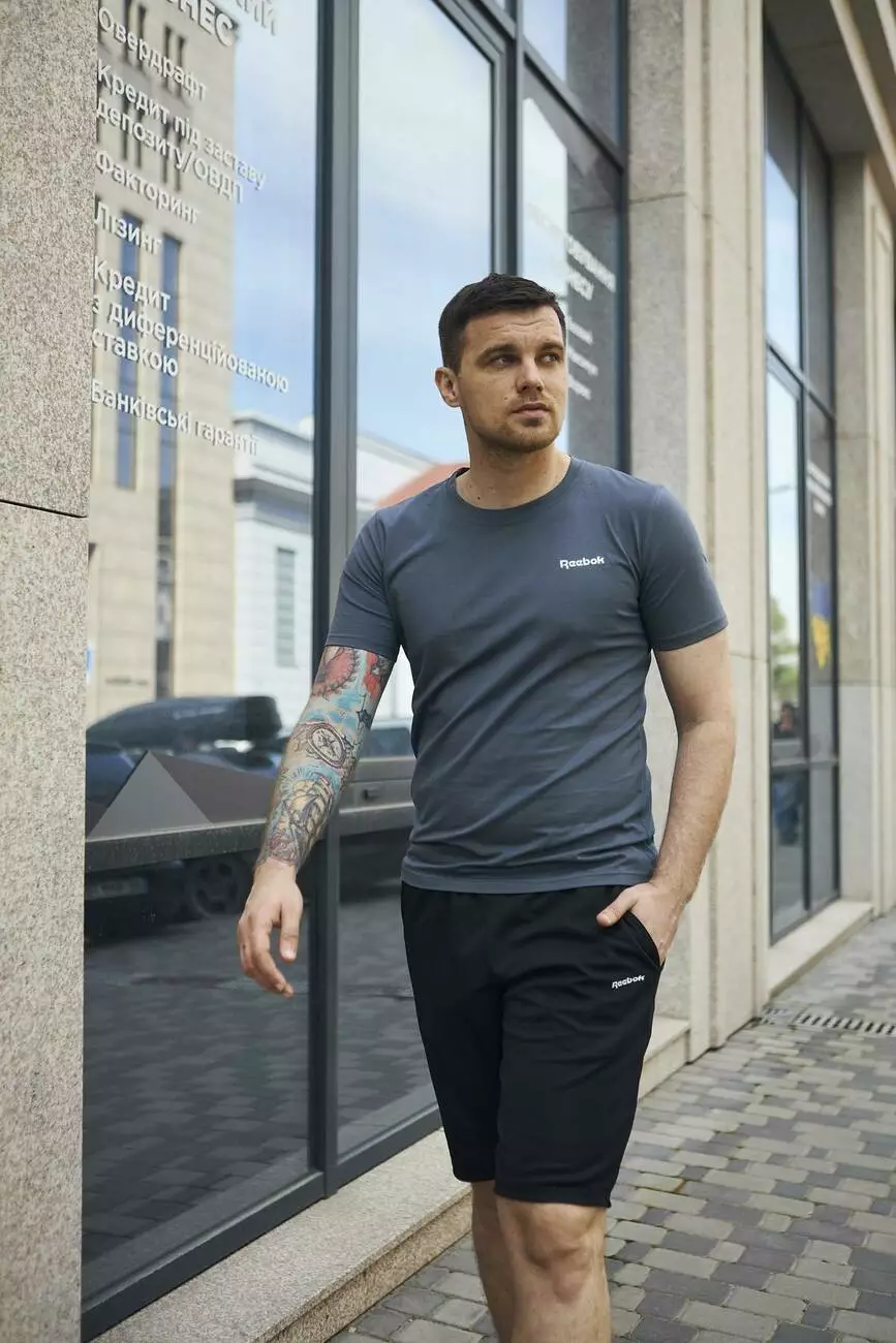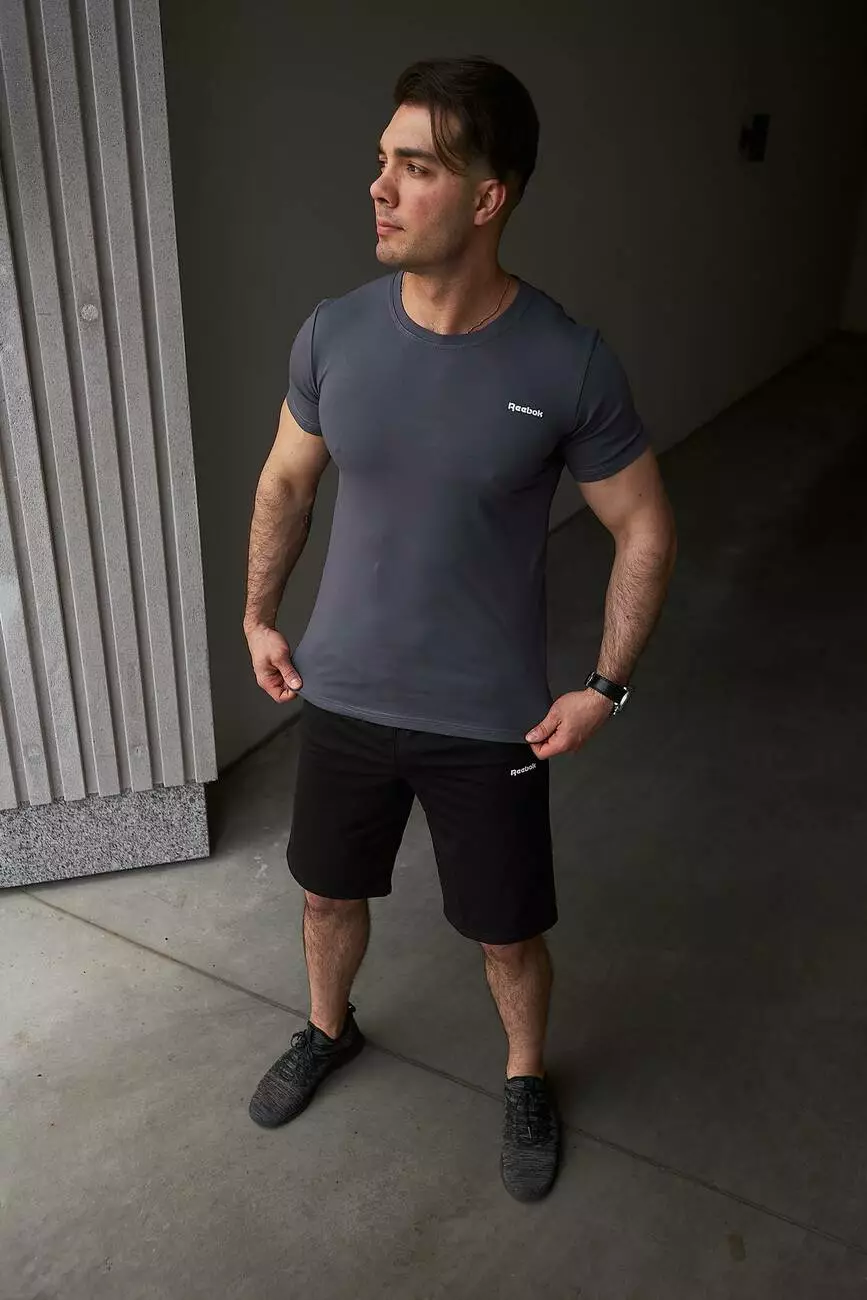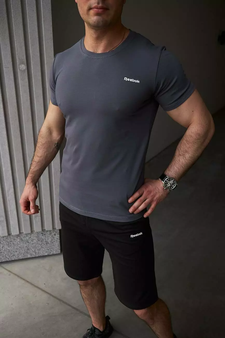Комплект чоловічий Reebok: футболка темно-сіра + шорти чорні