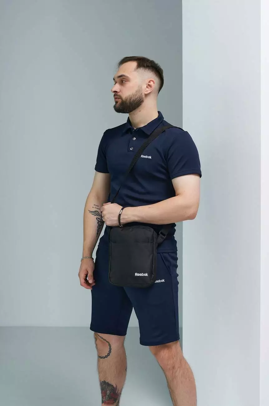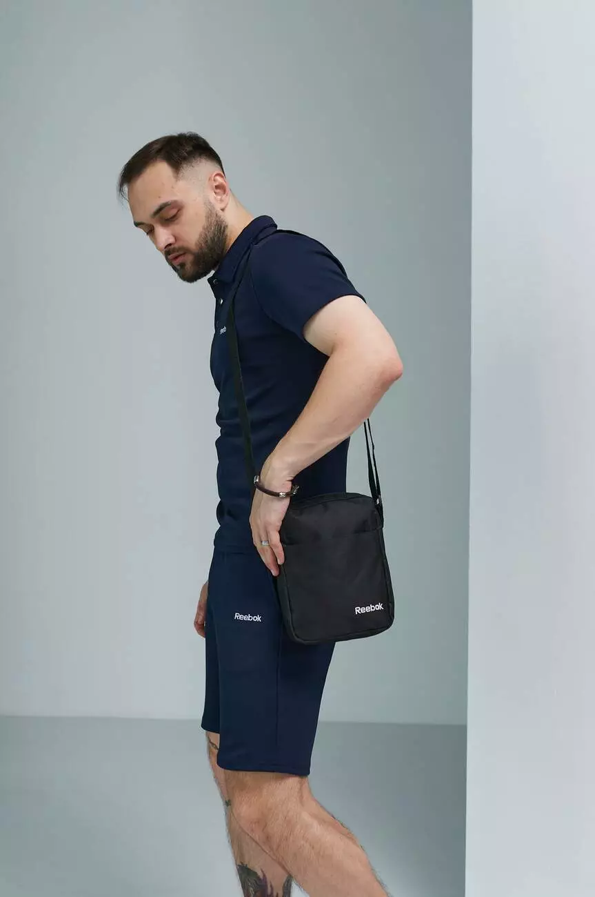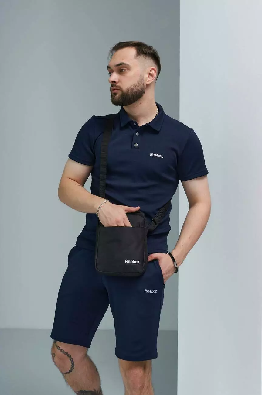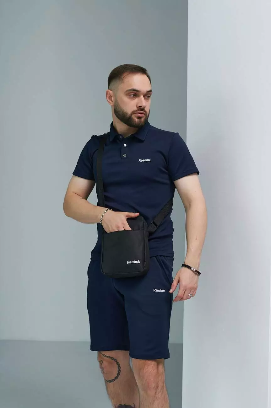Комплект чоловічий Reebok: поло синє + шорти сині + барсетка чорна