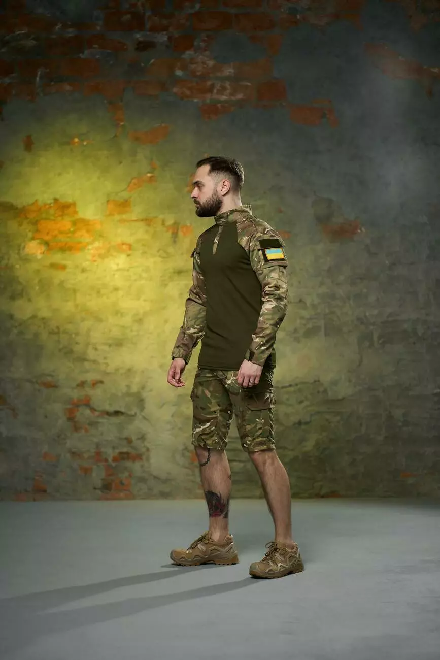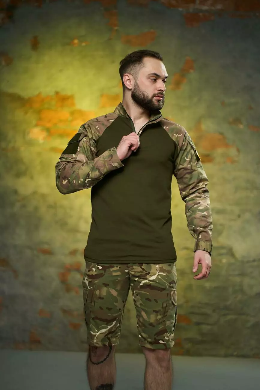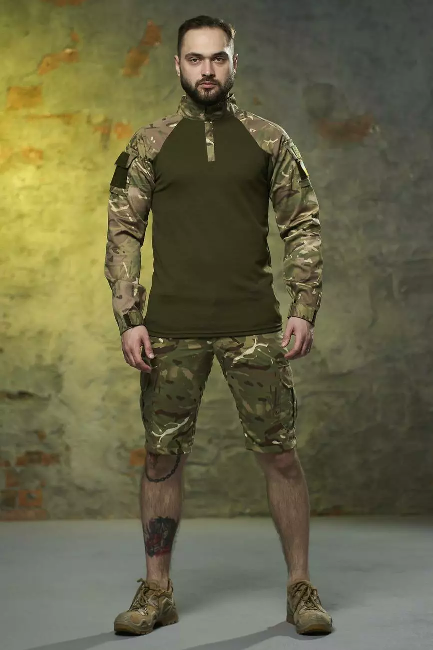 Комплект чоловічий: шорти "Aim" мультикам + кофта "Ghost" хакі-мультикам