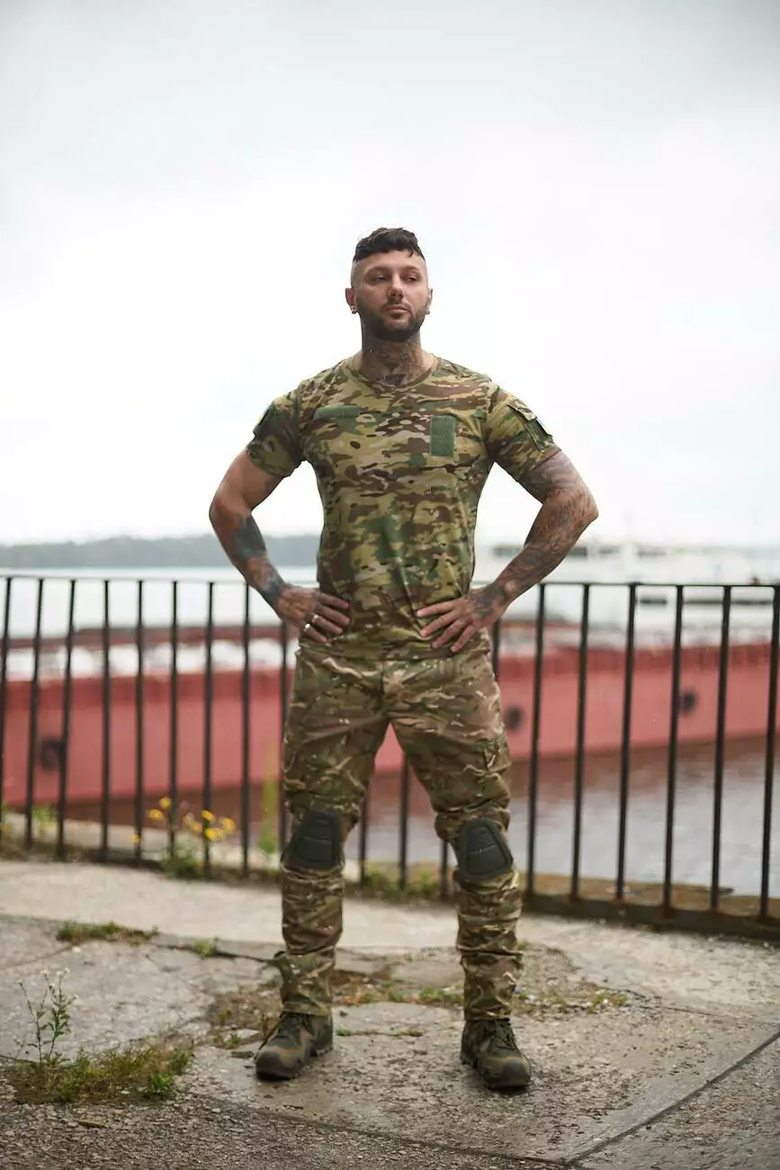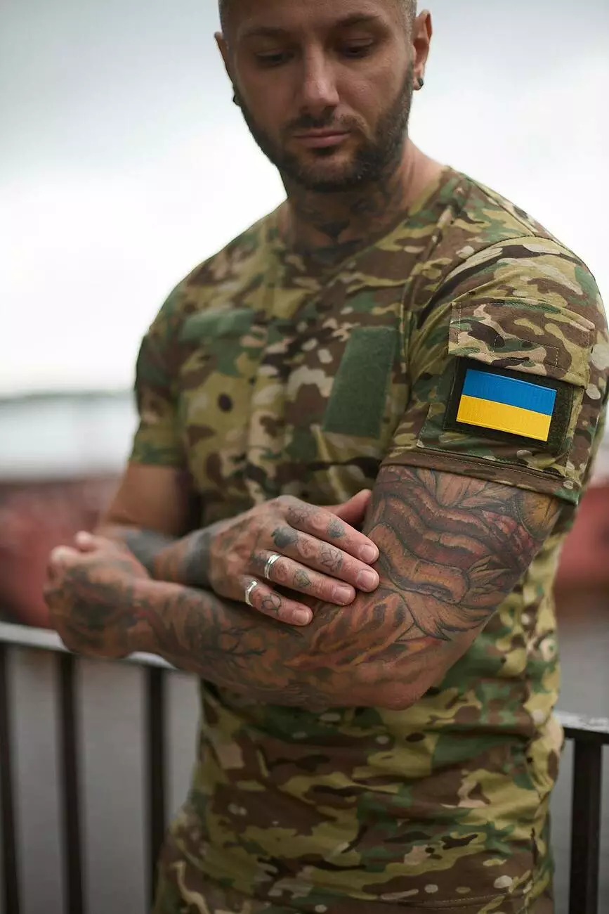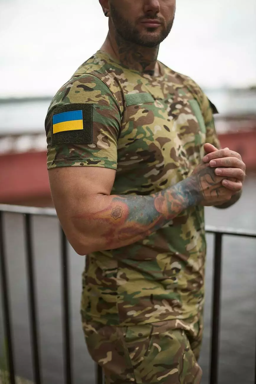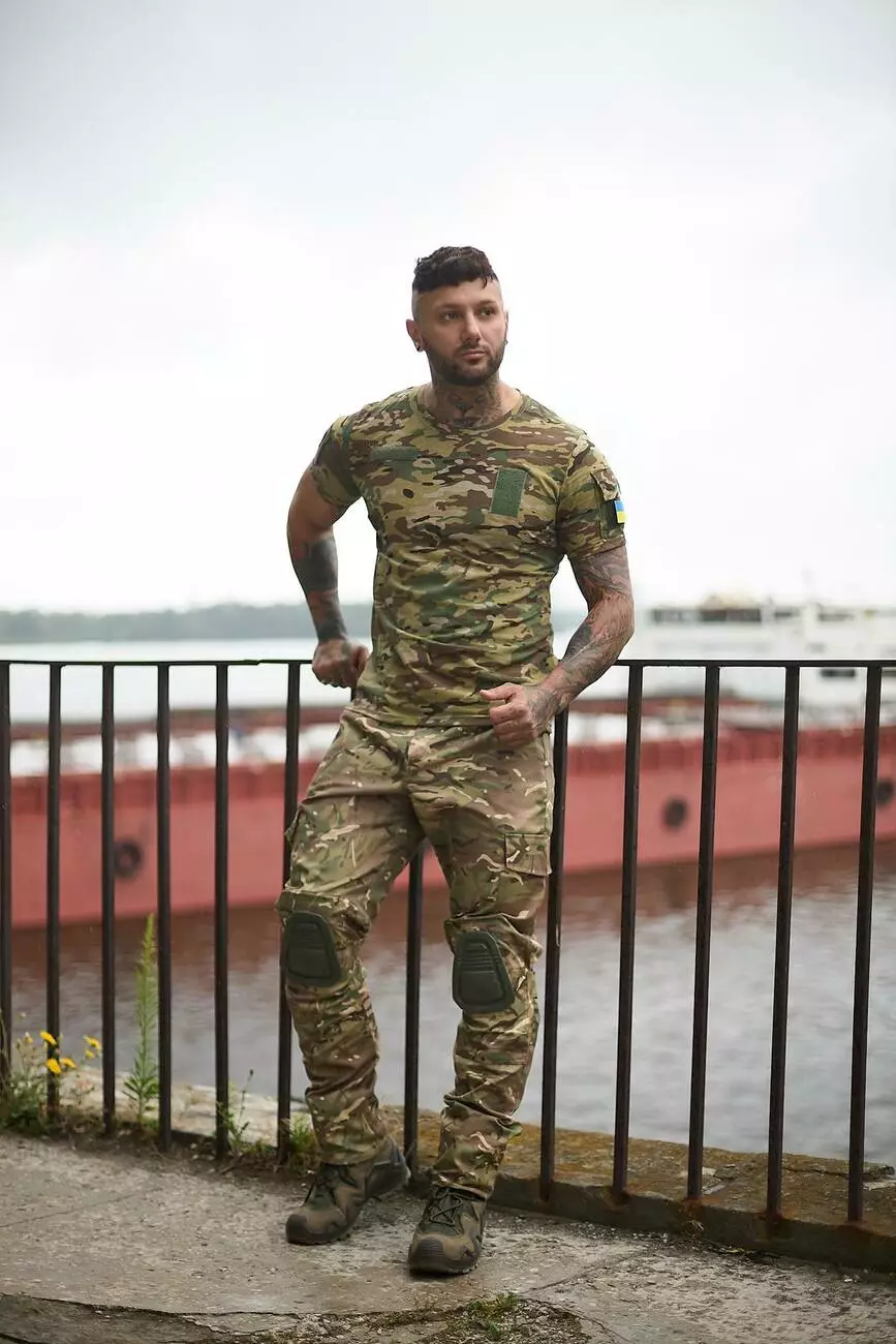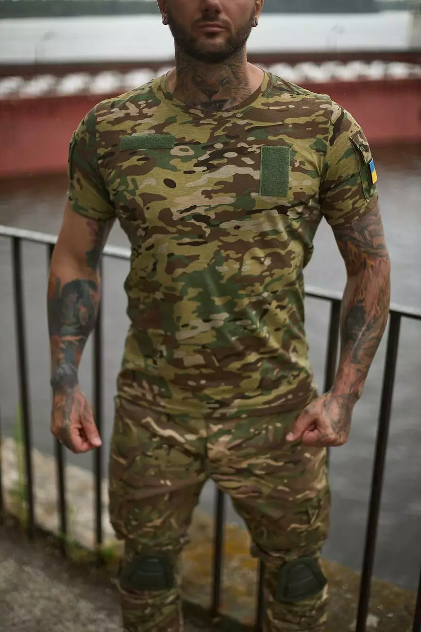 Комплект чоловічий: штани "Protect" мультикам + футболка з липучками на грудях та плечах