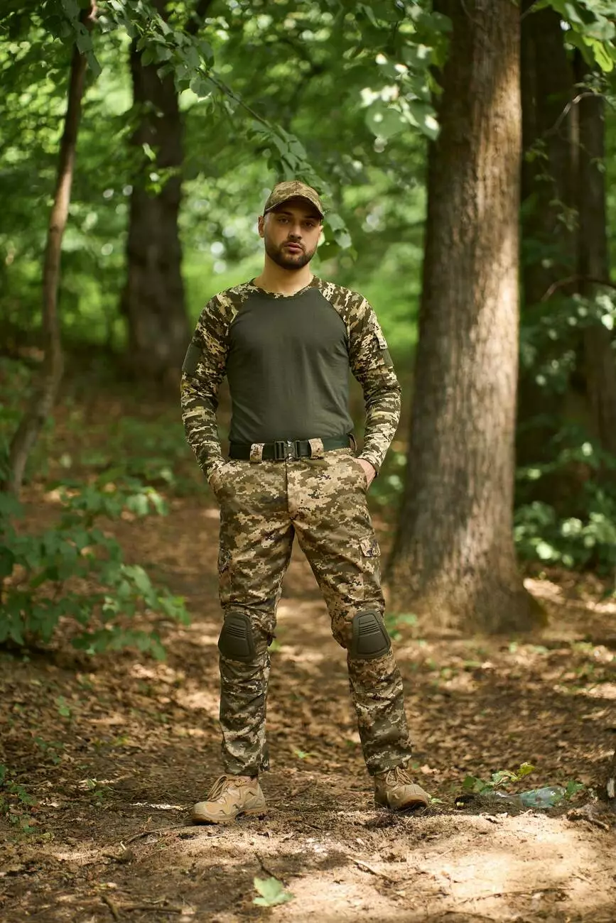Комплект чоловічий: штани "Protect" піксель + лонгслів "Velcro" хакі-піксель